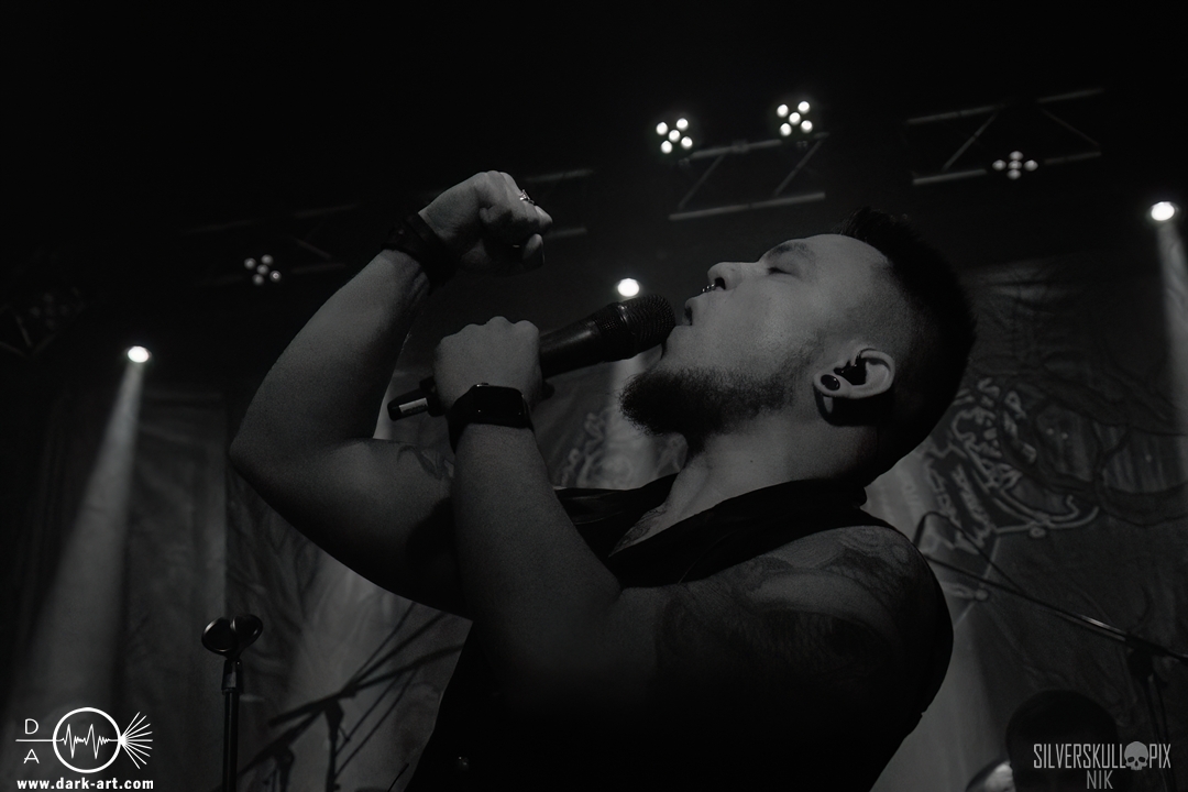 Als Local Support eröffneten Pentarium aus dem Darmstädter Raum. Die Band um Sänger Carsten nahm uns mit auf eine Reise in die Zwischenwelt und hatte uns modernen Melodic Death Metal mitgebracht. Die deutschsprachigen Songs blieben, wie die englischen auch, direkt im Ohr hängen und boten eine Menge Potenzial zum Mitmachen. Dies tat die Crowd jedoch nur sehr verhalten. So ganz passten Pentarium dann doch nicht zu den anderen Bands, doch das störte sie nicht großartig. Sie boten eine sehr ausdrucksstarke Show und hatten allgemein viel Freude auf der Bühne. Immer wieder interagierten die Musiker miteinander und machten insgesamt einen super Eindruck.