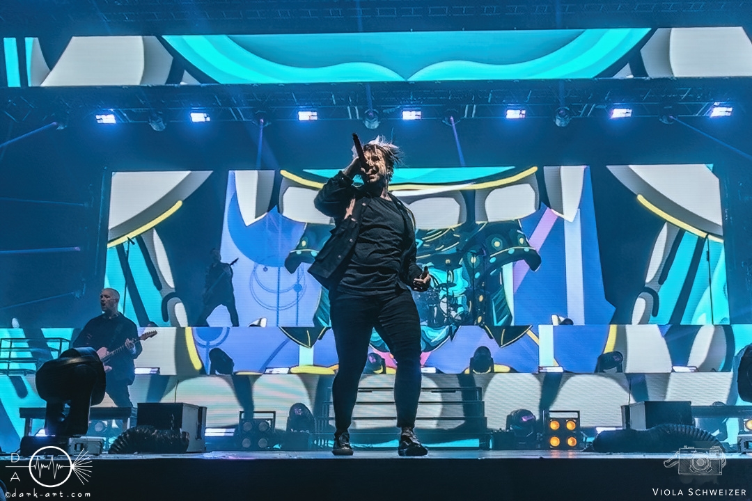 Es dauerte nicht lang und die einzelnen Bandmitglieder betraten die Bühne und wurden bejubelt und mit tosendem Applaus begrüßt. Das erste Lied Tekkno Train startete und die LED Panels zeigten ein atemberaubendes Live-Musikvideo, das die einzelnen Mitglieder der Band in Aktion zeigte und die Bühnenshow perfekt ergänzte. Das fanden wir sehr gut, denn so konnten auch die hinteren Ränge und die Zuschauer auf der Tribüne alles bestens mitbekommen. Es dauerte nicht lange, bis es einen gewaltigen Schlag tat und eine Konfetti Kanone zündete, die das ganze Publikum einhüllte.