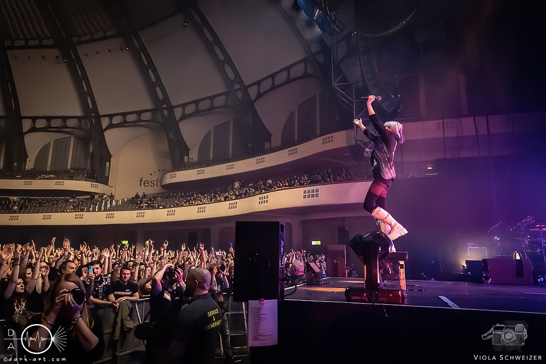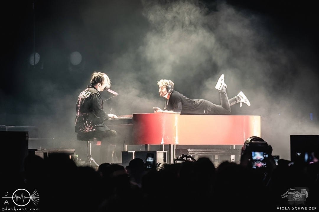 Kevin Ratajczak überzeugte mit seinen harten Shouts und Screams und ergänzte sich perfekt mit Sänger Nico Sallach. Schlagzeuger David Friedrich befand sich im zweiten Stock der Bühne im Hintergrund, stand mit seinem Können aber alles andere als im Hintergrund. Gegen Ende des Auftritts zeigten Electric Callboy auch eine gefühlvolle Seite. Ein Flügel wurde auf die Bühne geschoben und Nico Sallach legte sich auf das Piano. Das Publikum lachte, da diese Pianonummern wohl nicht ganz ernst gemeint waren. Nun präsentierte die Band akustische Lovesongs, angefangen von Careless Whisper bis hin zu Let it Go, die das Publikum berührten. Die meisten Fans schalteten die Taschenlampe an der Rückseite ihres Handys ein und schunkelten mit.