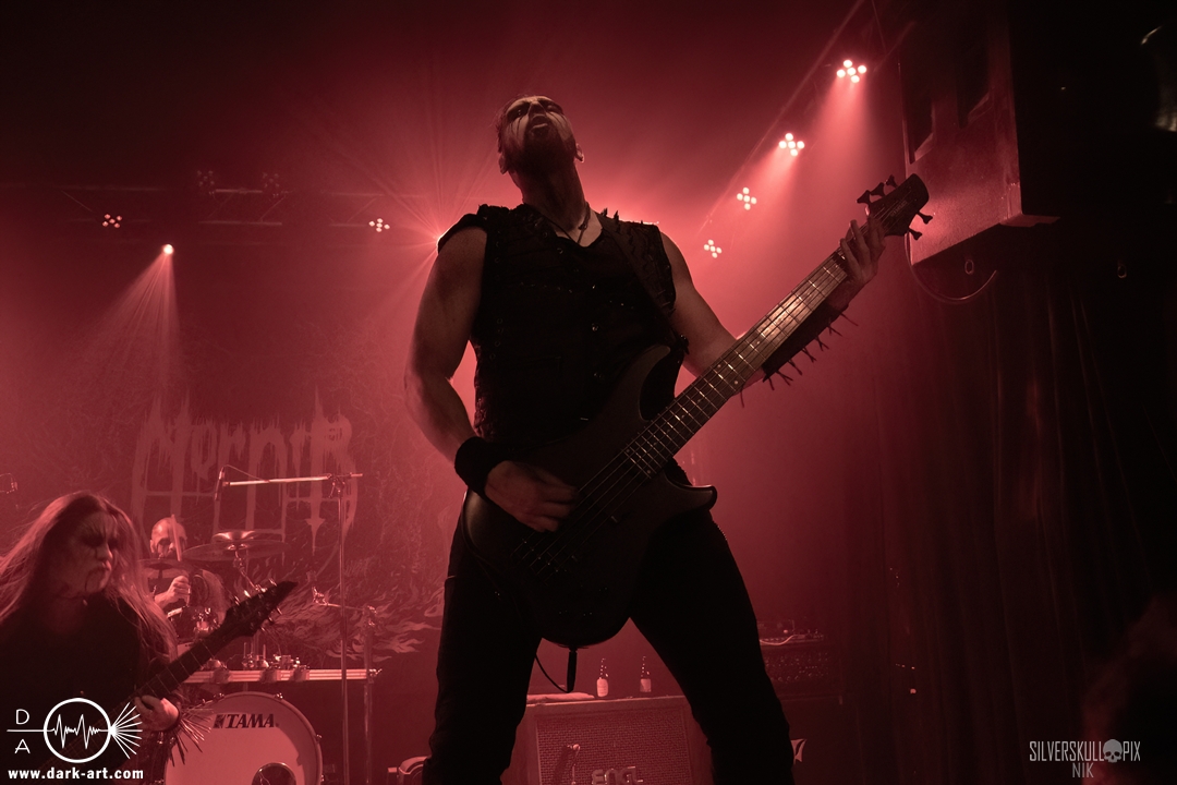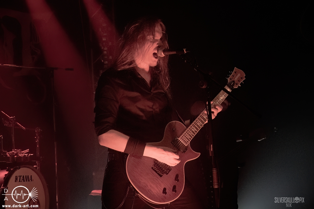 Nornir aus dem sächsischen Freiberg erhöhten die Schlagzahl um einiges. Die Band um Sängerin Lethian ist ursprünglich auch nur zu zweit unterwegs und bekommt auf der Tour Unterstützung von Tobias und Marcus aus dem Hause Gernotshagen. Hier bekamen wir nun kompromisslosen Black Metal kredenzt, der bei aller Härte auch immer wieder mit Melodien glänzen konnte. Mit Corpsepaint und jeder Menge Stacheln versehen, war hier nun auch optisch viel Black Metal geboten. Die insgesamt sieben Songs wurden wirklich Klasse präsentiert und so brachten Nornir manch Haupthaar in Bewegung. Insgesamt boten Nornir eine Reise durch ihre Diskografie und wirkten zu jeder Zeit absolut authentisch. Somit war auch der zweite Auftritt ein wirklich starker, der ebenfalls keinerlei Ansagen benötigte.