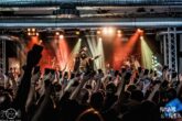 Kurz nach neun kam Halflives dann unter Applaus auf die Bühne und legte direkt los mit dem Opener von Inferno. Und jeder wusste gleich, was Sache sein würde, Charme, Energie, Spaß und ein Feuerwerk von Musik sollten den Abend prägen. Waren sie das letzte Mal noch als Opener von Halocene auf der Bühne des Bett, fiel ihnen der Umstieg auf die kleinere des Nachtlebens offensichtlich nicht schwer, sie wussten auf jeden Fall wie sie die Bühne bändigen mussten. Allerdings scheint Frankfurt kein gutes Pflaster für Halflives zu sein. Das letzte mal, an Lindas Geburtstag, ging nach der Show der Tourbus kaputt… nun, dieses mal war es vorher. Aber sie haben es trotzdem geschafft zur Show zu kommen, um dann direkt passenderweise EVERYTHING SUCKS! zu spielen. Für One Bad Day ging Linda mit ihrem Mikroständer in die Mitte der Fans, um es von dort zu singen und so eine spezielle Atmosphäre zu schaffen, was ihr sehr gut gelang. Zum Abschluss des normalen Sets bei Burn durften dann noch mal alle in die Knie gehen um dann mit „Halflives“- Rufen die Zugabe einzufordern, welche es dann für zwei Lieder gab. Dynamite als letztes Lied fasste dann noch mal gut das Konzert zusammen, denn die drei auf der Bühne schafften es, das Publikum wie Dynamit anzuzünden und zu begeistern.