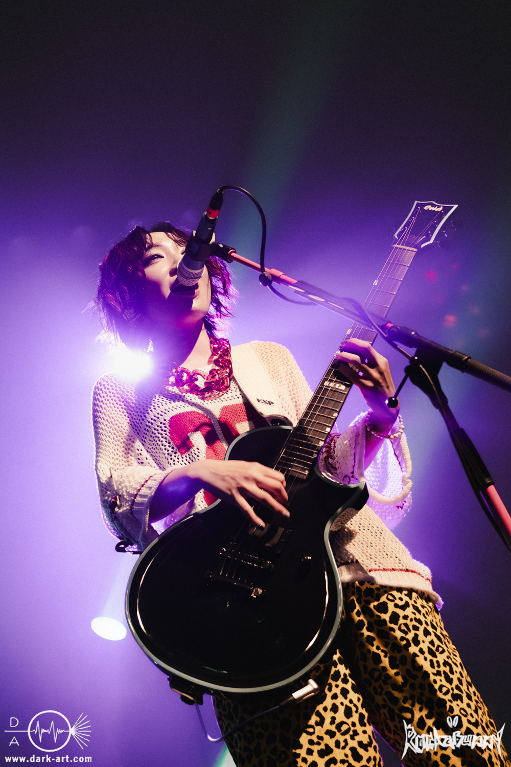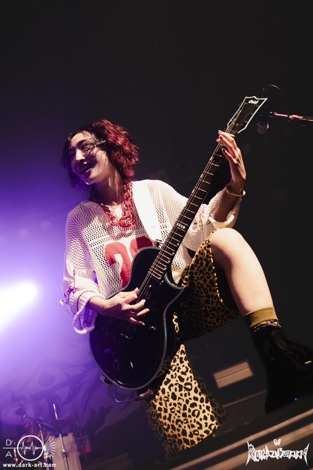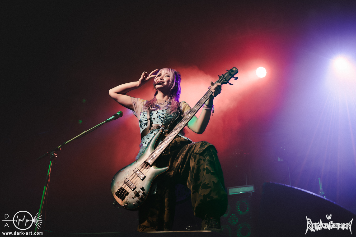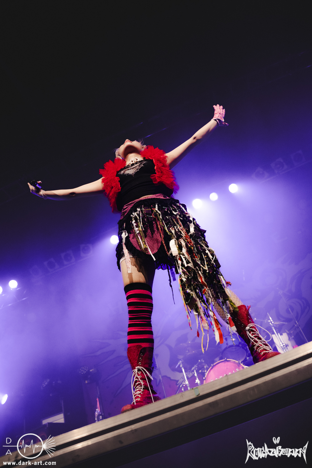 Das Quartett aus Japan eröffnete ihr Set mit dem Song O•TA•KU Lovely Densetsu und brachte von Sekunde Eins volle Energie auf die Bühne. Mit ihrem Misch aus heavy Gitarren, wilden Screams und farbenfroher, japanischer Ästhetik hatten sie die ausverkaufte Live Music Hall im Nu in der Hand.