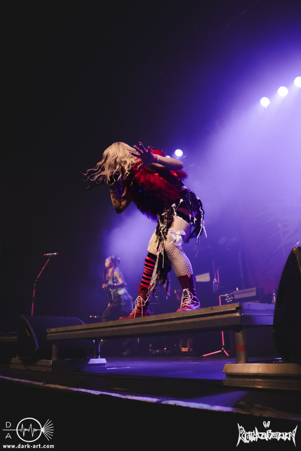 In blauem Prinzessinnenkleid und mit wehenden blonden Haaren verbindet SUN harte Gitarrenriffs und Breakdowns mit einem dreamy/poppigen Sound zu ihrem selbst kreierten Genre „Brutal Pop“.