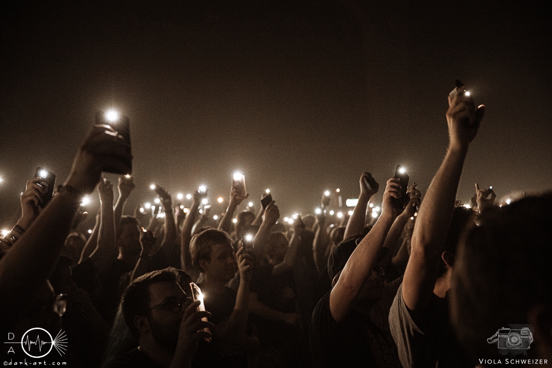 Kurz darauf begaben sich Sibbi und Panzer in die Crowd, um Pflastersteine, eine Ballade zu performen. Dafür setzte sich das Publikum auf den Boden, alle Scheinwerfer wurden ausgemacht und das Publikum griff zu seinen Feuerzeugen und Handytaschenlampen. Ein magischer Moment.