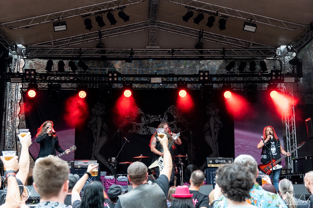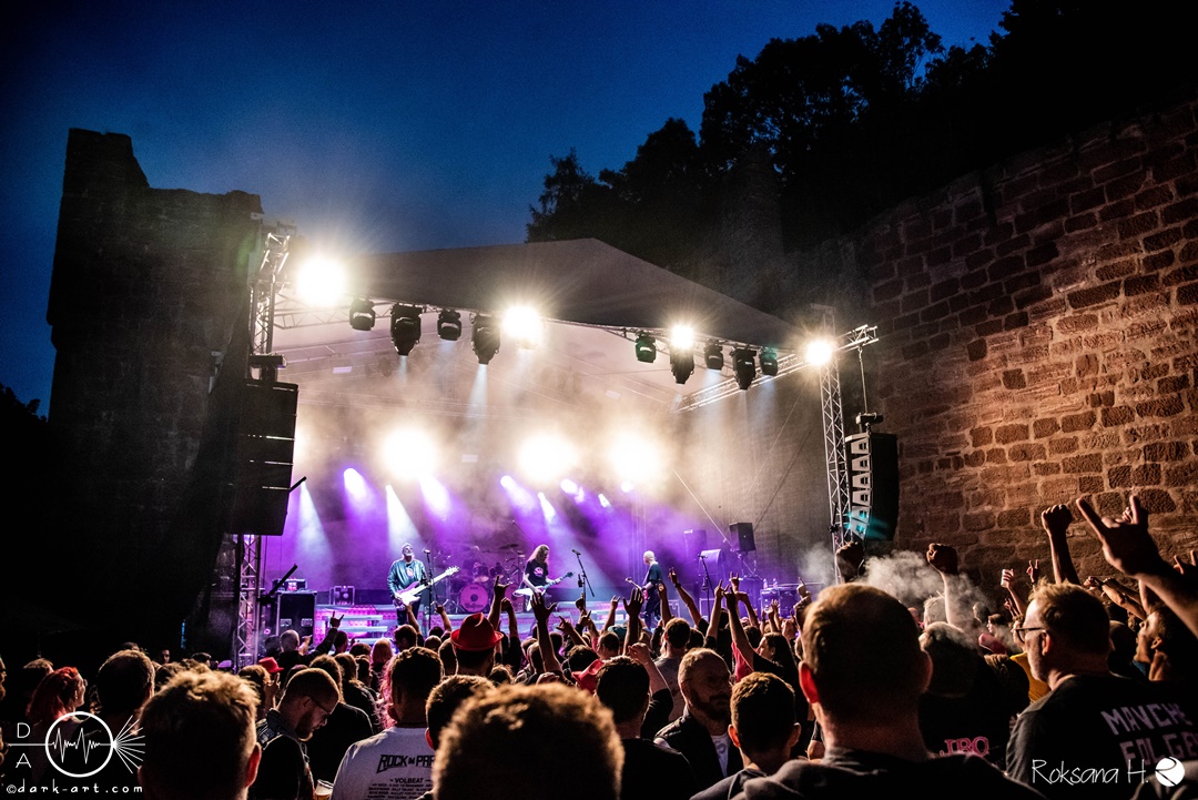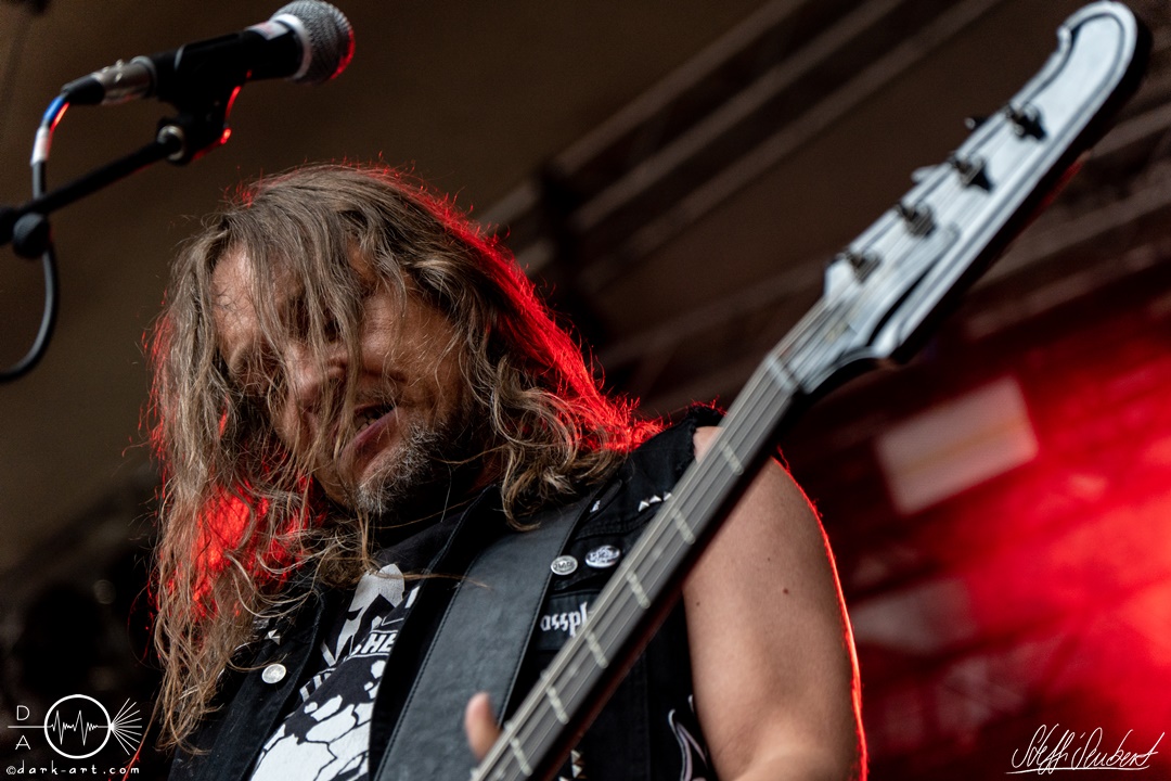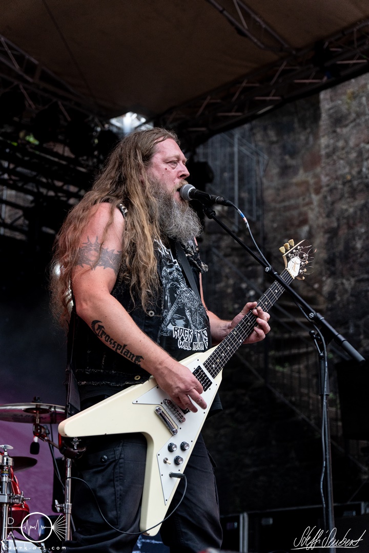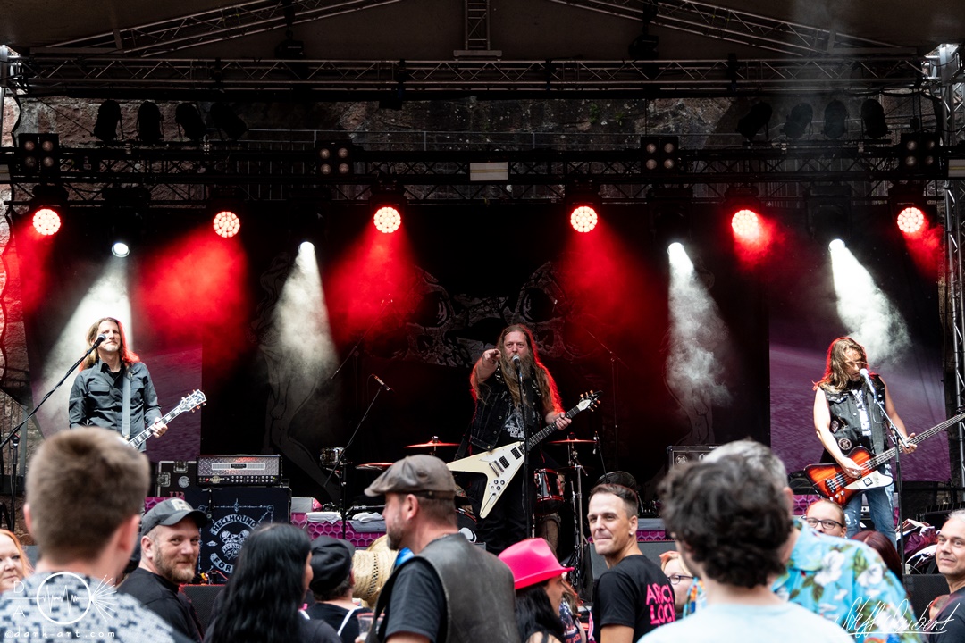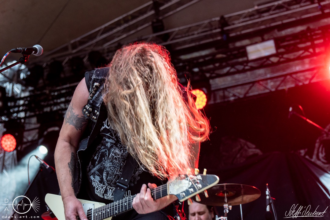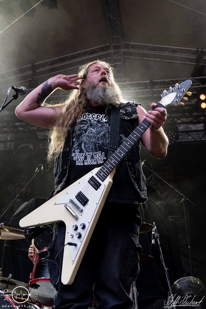 Dahinter verbirgt sich eine vierköpfige Band aus dem Ruhrpott. Die Jungs haben sich soliden, anständigen Rock’n’Roll auf die Fahne geschrieben, der klanglich ein bisschen an Motörhead erinnert. Von Beginn an war die Truppe voll da und hatte auch sichtlich Spaß an ihrem Auftritt. Auch schafften sie es, dank dreimaliger Ansage von Sänger und Gitarristen Marcel ‘Celli’ Mönnig, die Menschenmasse direkt bis vor die Bühne zu ziehen. Da entstand dann auch der erste von vielen Moshpits des Abends. Für einen Lacher allerseits sorgte die Ansage, dass jetzt bitte mal alle Ladies laut sein sollen, aber doch bitte nicht die bärtigen Mädels, da einige männliche Besucher lauthals mit geschrien hatten. So konnten Crossplane nicht nur mit ihrer Musik, sondern auch mit ihrer sympathischen Art beim Publikum punkten, welches die Band unter wohlgemeinten Applaus verabschiedete.