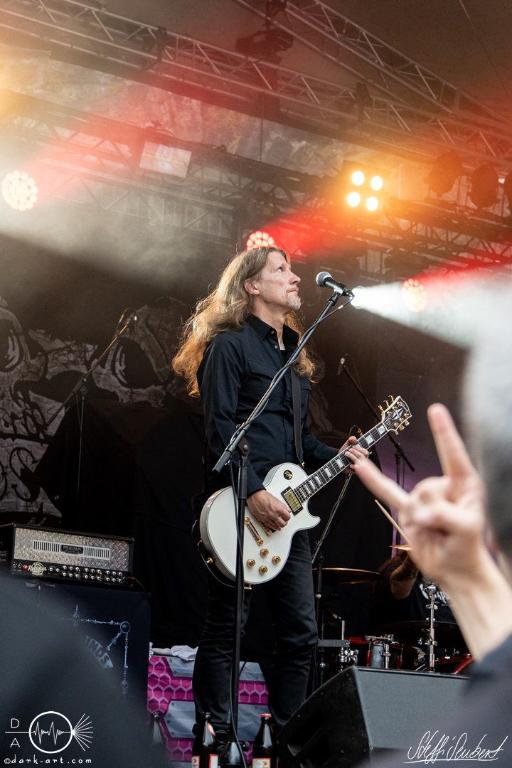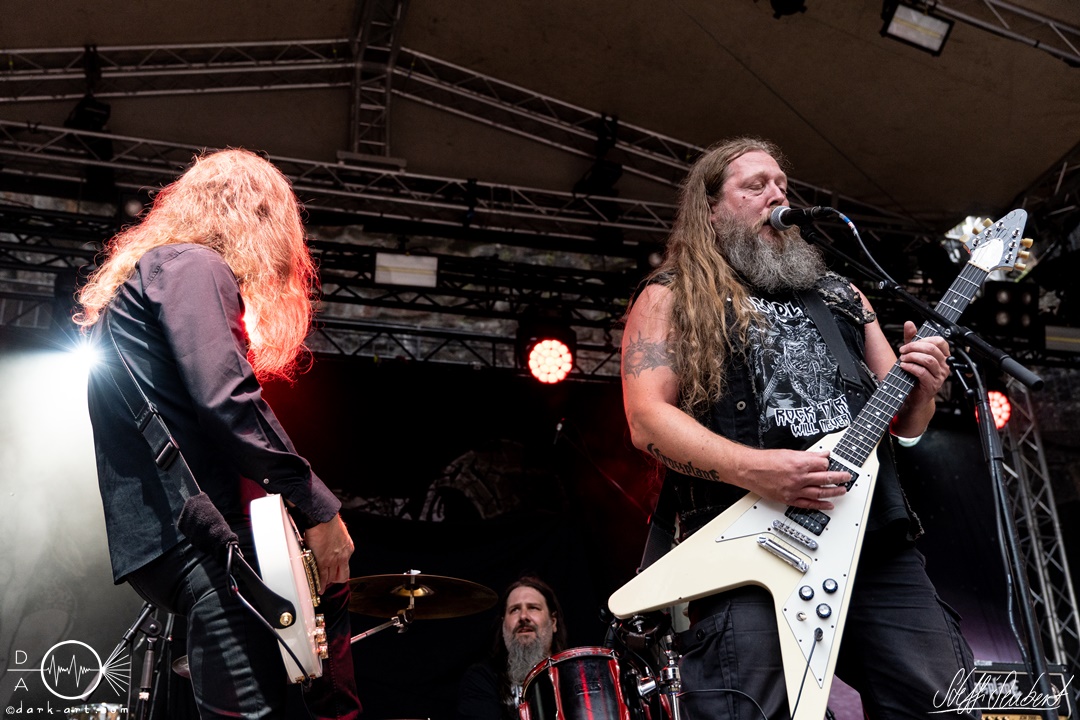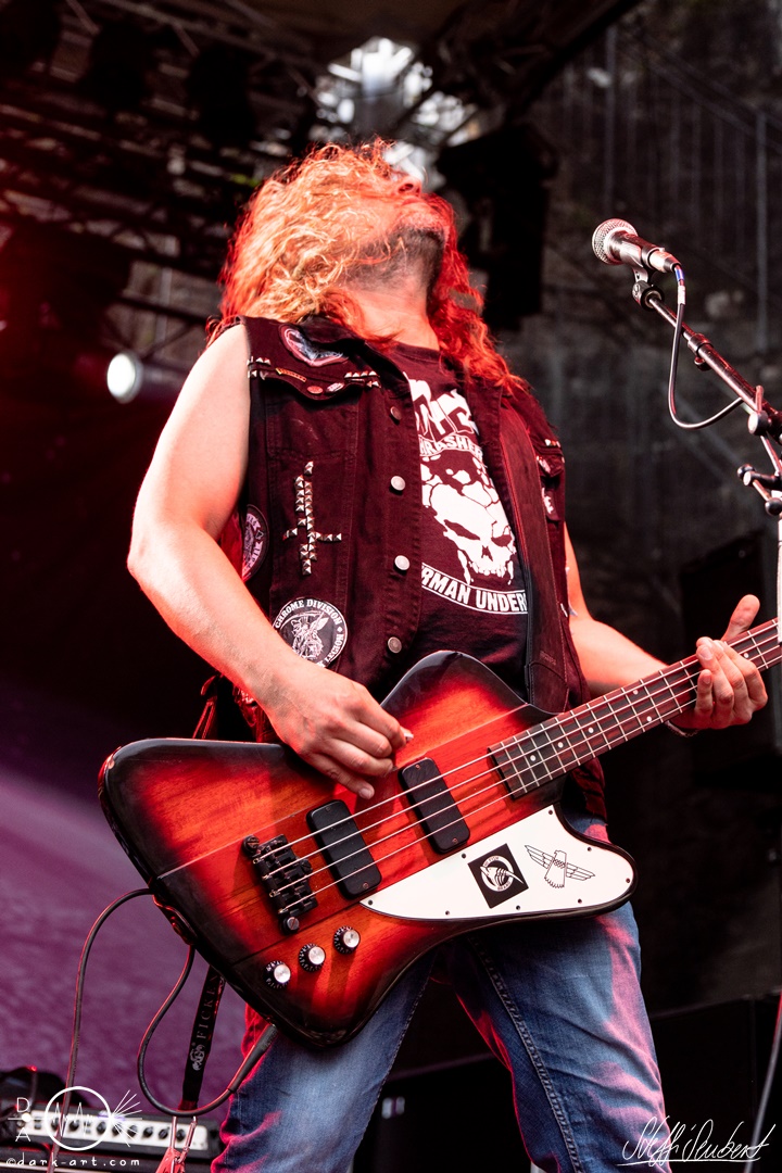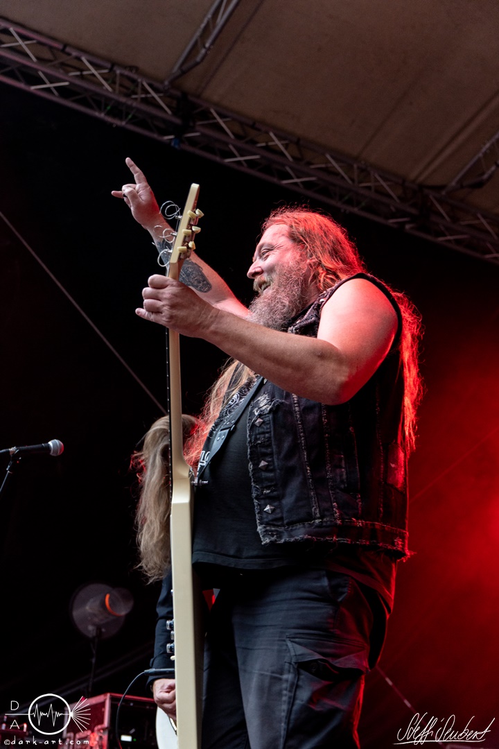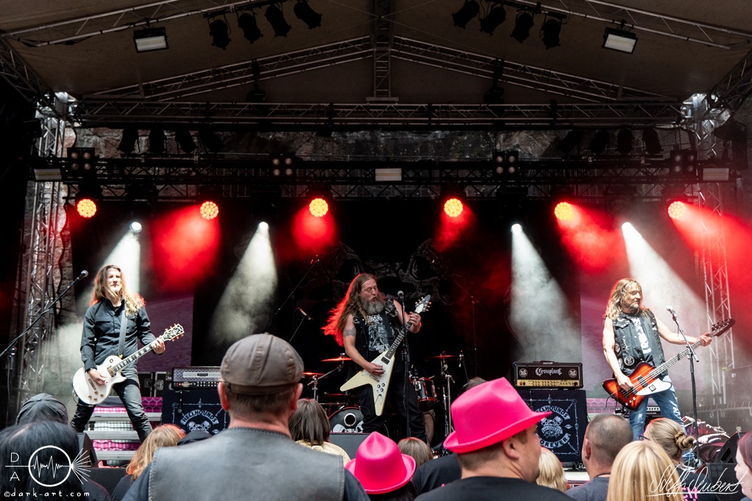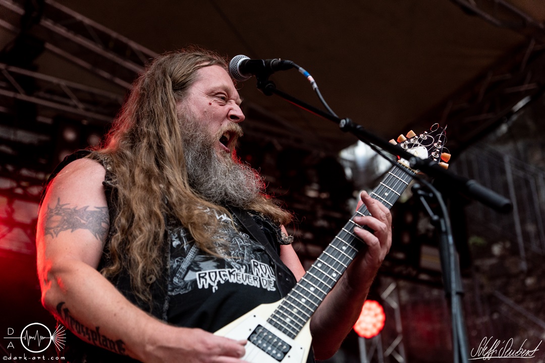 Dahinter verbirgt sich eine vierköpfige Band aus dem Ruhrpott. Die Jungs haben sich soliden, anständigen Rock’n’Roll auf die Fahne geschrieben, der klanglich ein bisschen an Motörhead erinnert. Von Beginn an war die Truppe voll da und hatte auch sichtlich Spaß an ihrem Auftritt. Auch schafften sie es, dank dreimaliger Ansage von Sänger und Gitarristen Marcel ‘Celli’ Mönnig, die Menschenmasse direkt bis vor die Bühne zu ziehen. Da entstand dann auch der erste von vielen Moshpits des Abends. Für einen Lacher allerseits sorgte die Ansage, dass jetzt bitte mal alle Ladies laut sein sollen, aber doch bitte nicht die bärtigen Mädels, da einige männliche Besucher lauthals mit geschrien hatten. So konnten Crossplane nicht nur mit ihrer Musik, sondern auch mit ihrer sympathischen Art beim Publikum punkten, welches die Band unter wohlgemeinten Applaus verabschiedete.