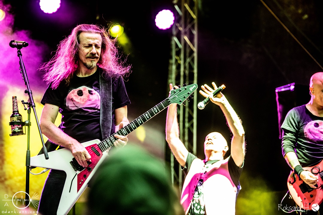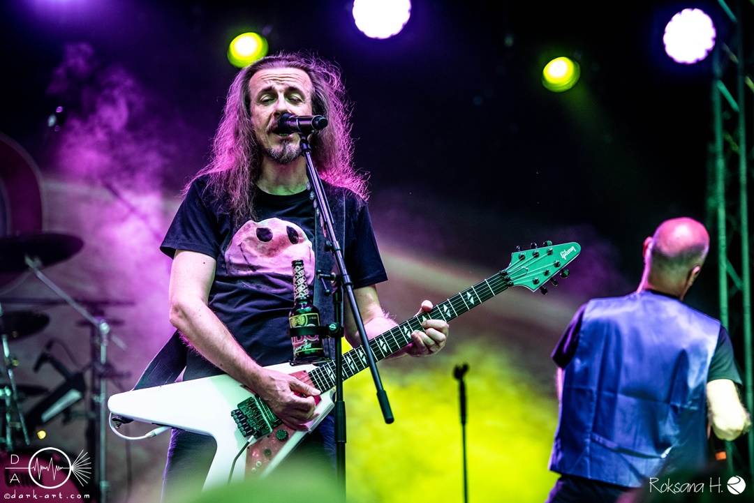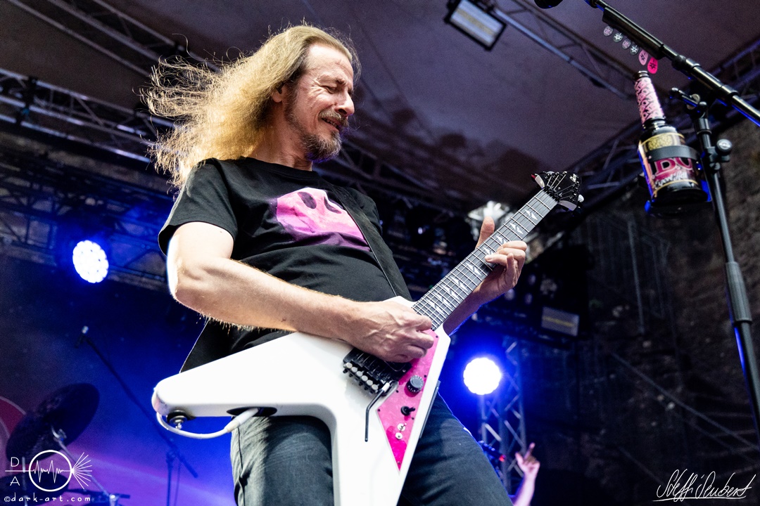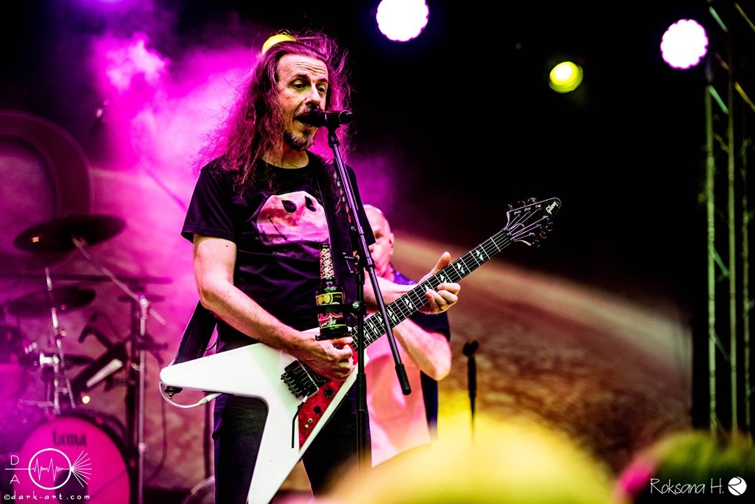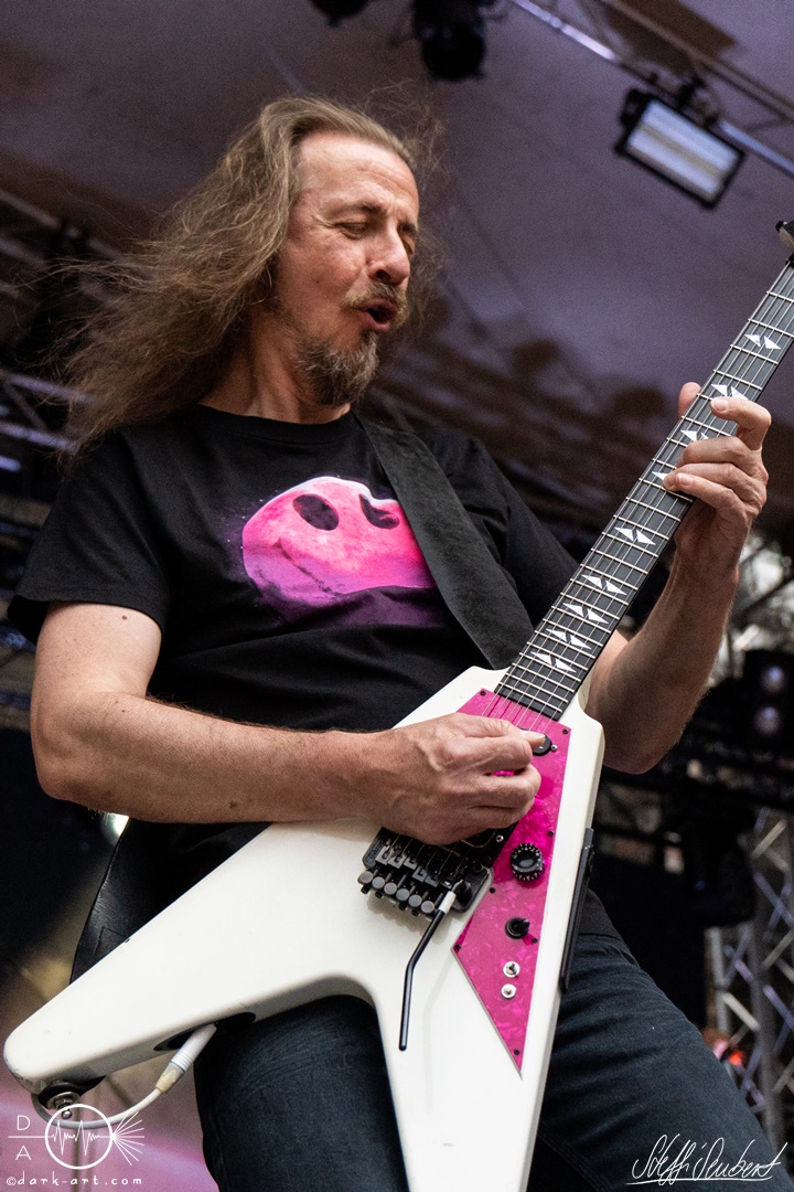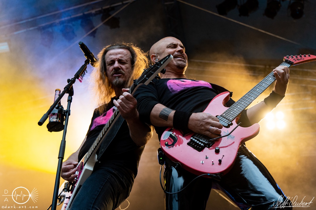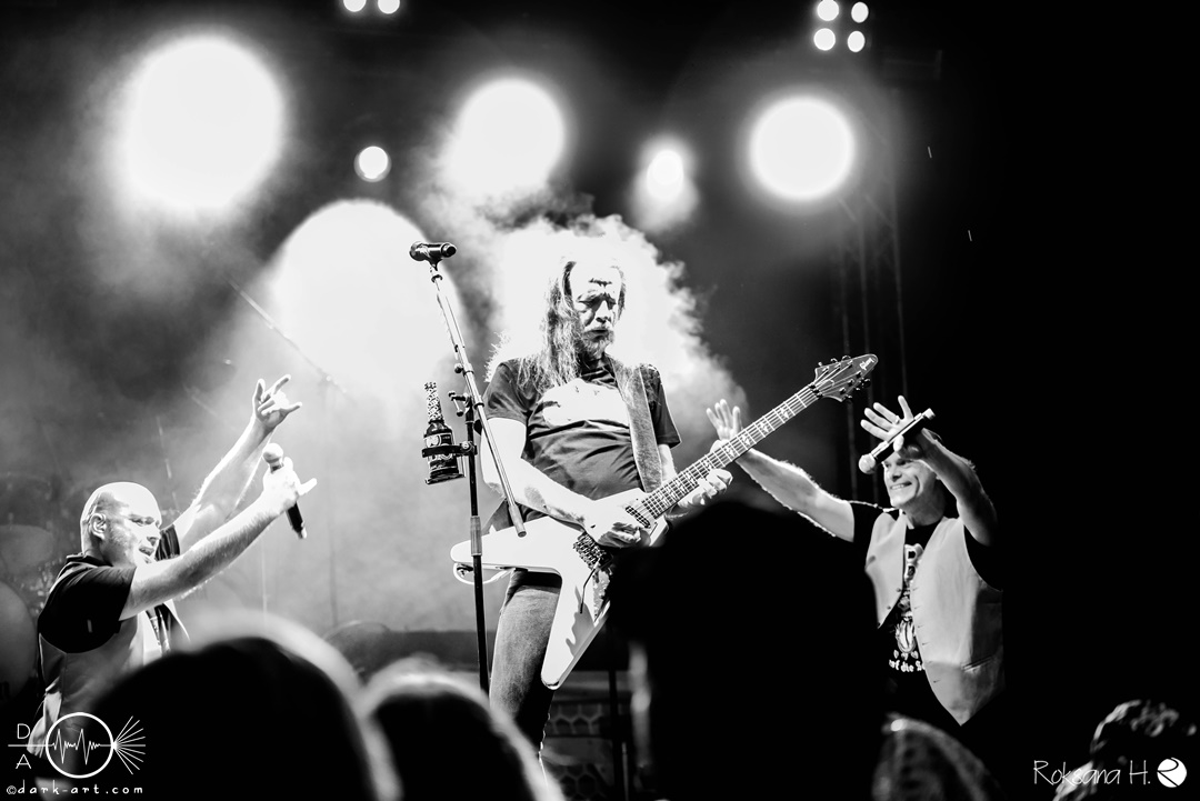 Dahinter verbirgt sich eine vierköpfige Band aus dem Ruhrpott. Die Jungs haben sich soliden, anständigen Rock’n’Roll auf die Fahne geschrieben, der klanglich ein bisschen an Motörhead erinnert. Von Beginn an war die Truppe voll da und hatte auch sichtlich Spaß an ihrem Auftritt. Auch schafften sie es, dank dreimaliger Ansage von Sänger und Gitarristen Marcel ‘Celli’ Mönnig, die Menschenmasse direkt bis vor die Bühne zu ziehen. Da entstand dann auch der erste von vielen Moshpits des Abends. Für einen Lacher allerseits sorgte die Ansage, dass jetzt bitte mal alle Ladies laut sein sollen, aber doch bitte nicht die bärtigen Mädels, da einige männliche Besucher lauthals mit geschrien hatten. So konnten Crossplane nicht nur mit ihrer Musik, sondern auch mit ihrer sympathischen Art beim Publikum punkten, welches die Band unter wohlgemeinten Applaus verabschiedete.