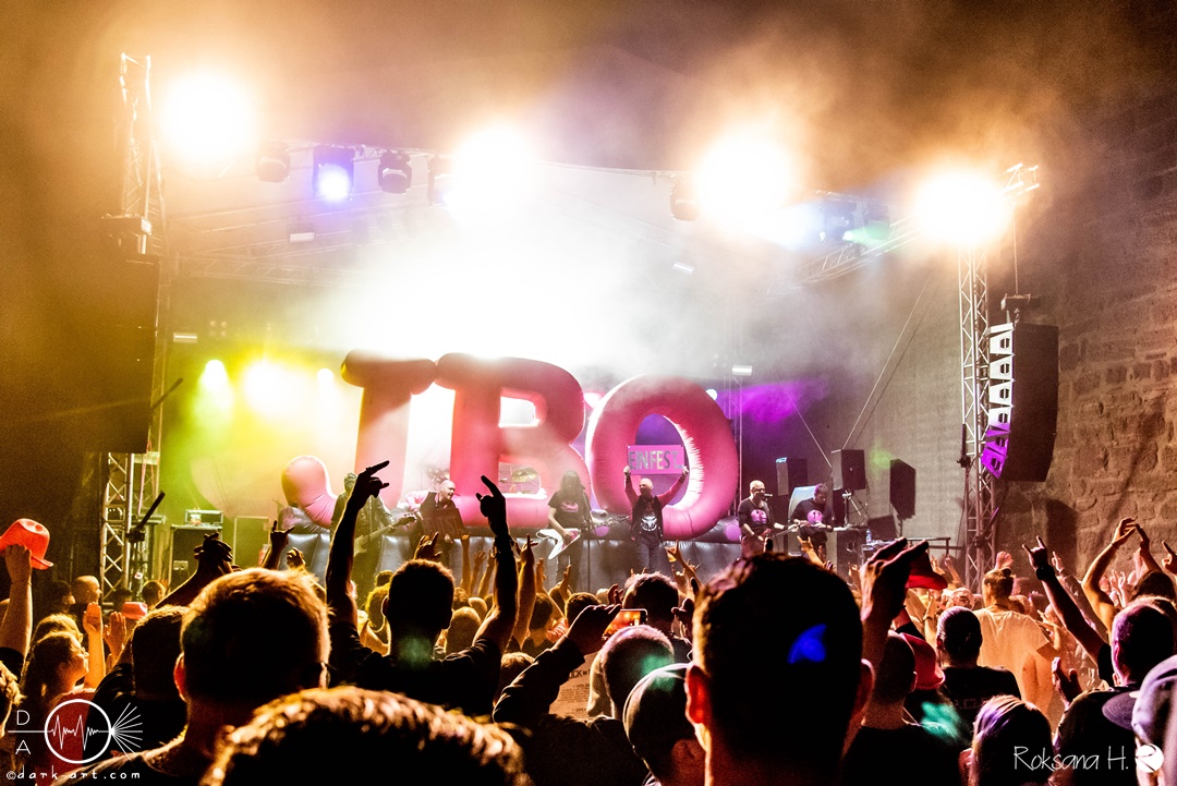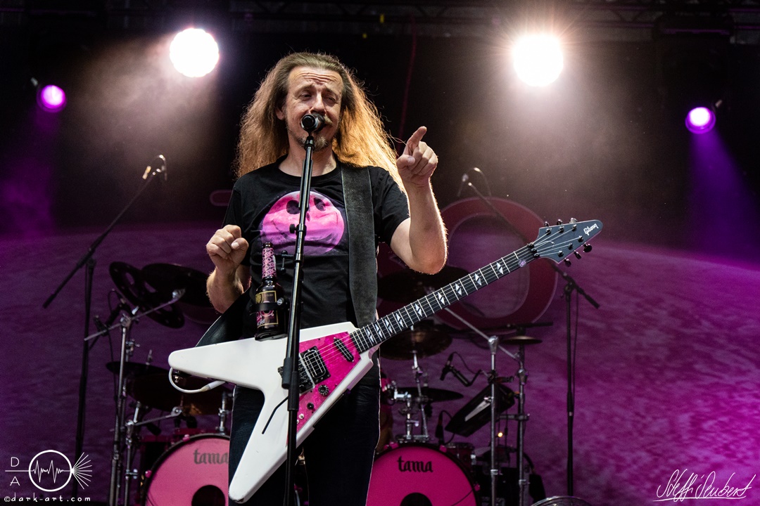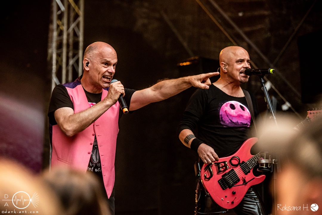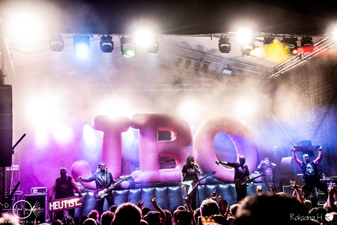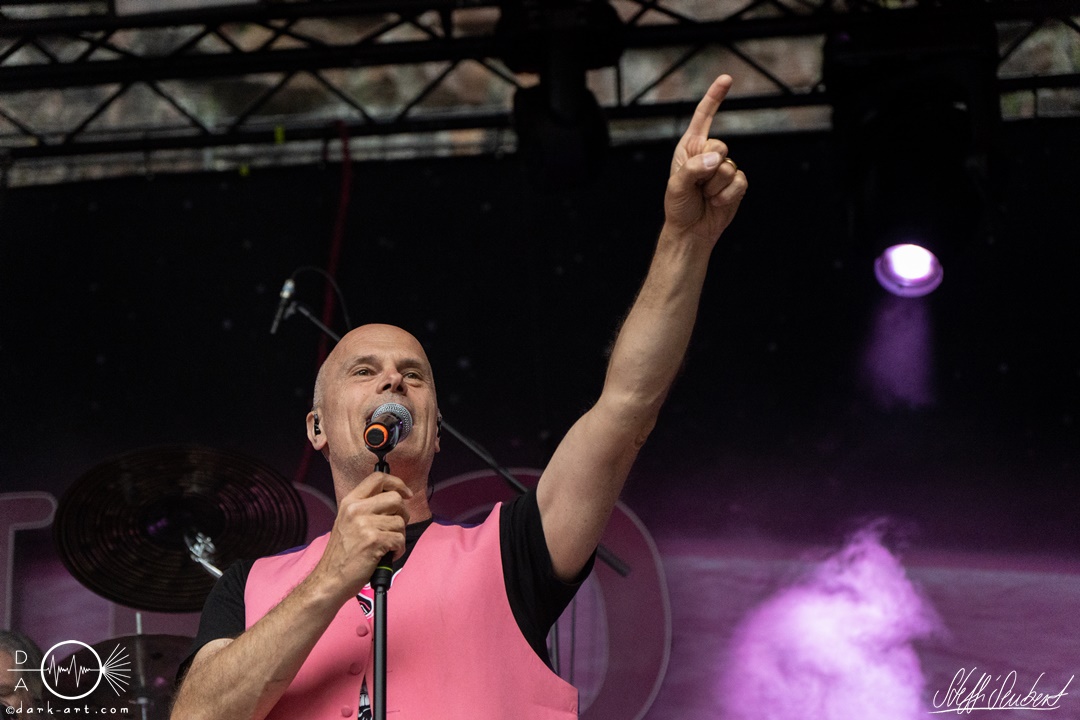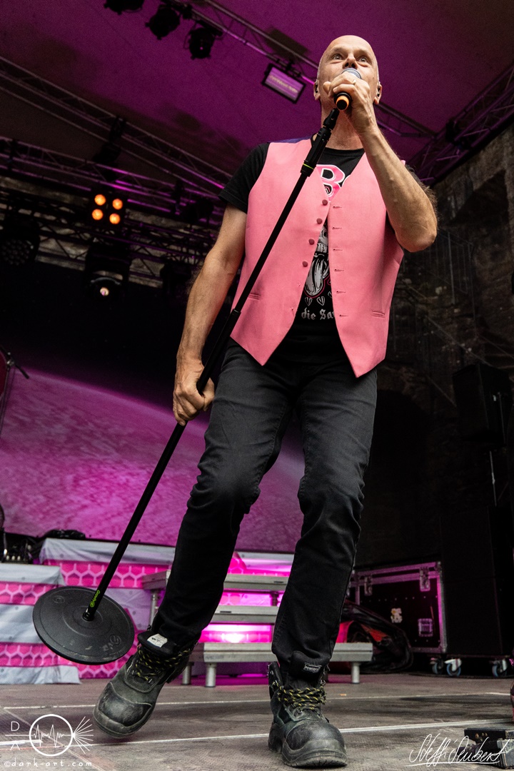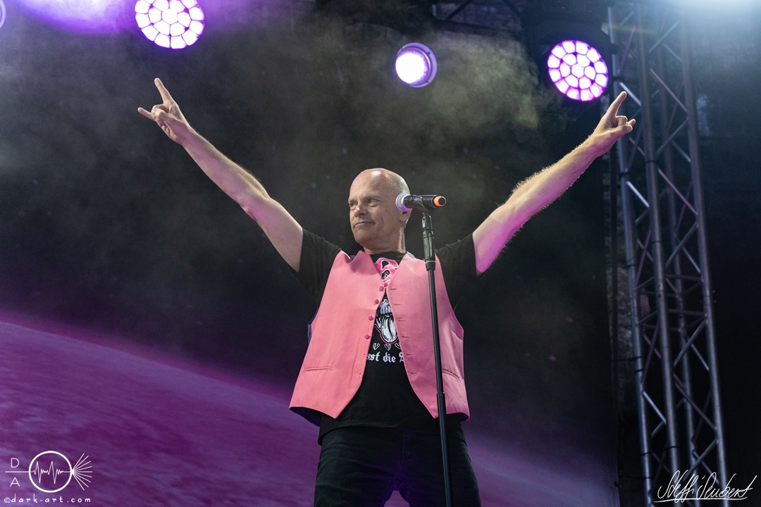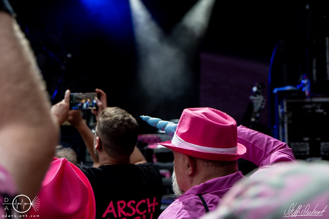 Sie legten auch direkt mit dem ersten Song und Titeltrack ihres aktuellen Albums Planet Pink los. Direkt von Anfang an war das Publikum voll dabei und sang lauthals mit. Es folgten Hoffen und Bangen und Mach noch eins auf, bevor es mit Wer lässt die Sau raus?! weiterging. Hier animierten Vito und Hannes mit viel Spaß das Publikum zum Stellen der Frage und dem Rufen der Antwort. Was auch sehr gut funktionierte und gut ankam. Hier entstanden dann auch die ersten Moshpits des Auftritts.