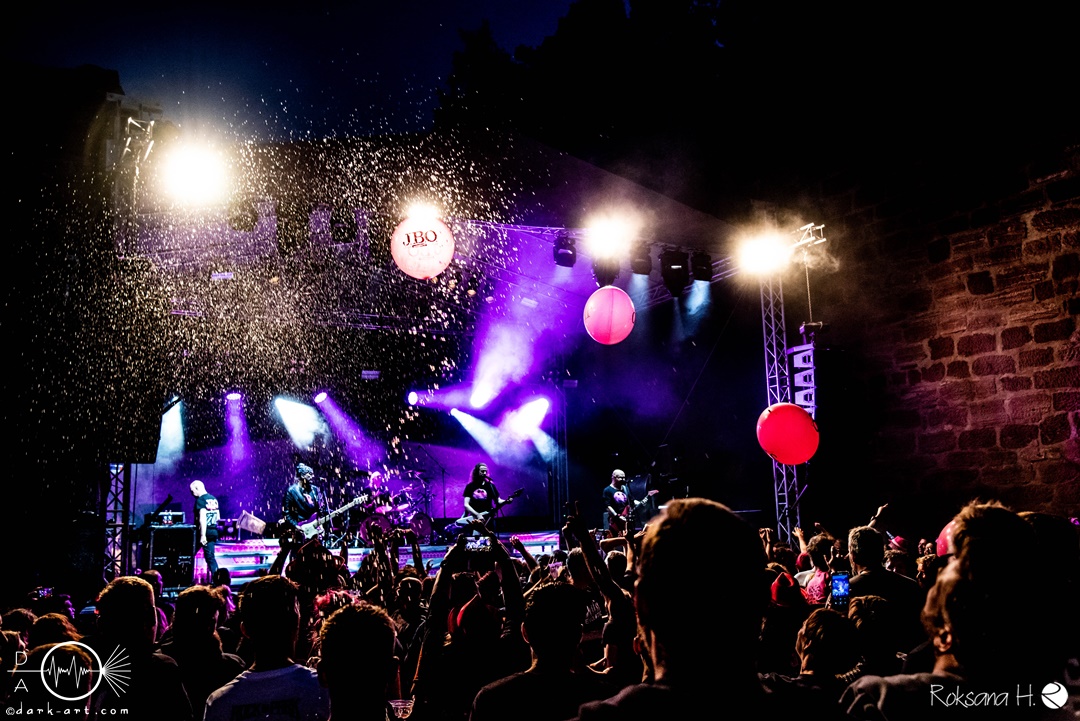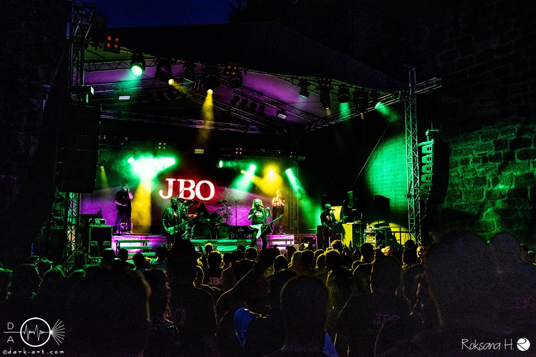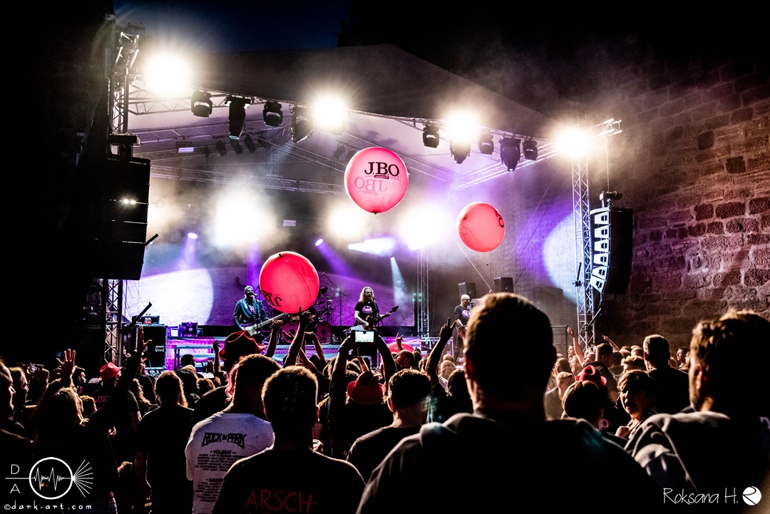 Wenn man auf ein Konzert geht und einem als erstes vier bärtige Männer mit pinken Shirts und Bier in der Hand begrüßen, dann ist wieder die fränkische Kultpartyfun- und Blödelmusikkapelle J.B.O. am Start. So auch am 09.07.2022, als die Posthalle Würzburg ihre Burgensaison auf der Burg Wertheim mit der Spaßtruppe und ihrer Planet Pink/ Sau Sommer Tour begann. Zugegeben ist der Aufstieg nicht ganz ohne, aber oben angekommen, erwartet einen eine wahnsinnig tolle Location im langgezogenen Innenhof der Burg. Als Support waren Crossplane am Start.
