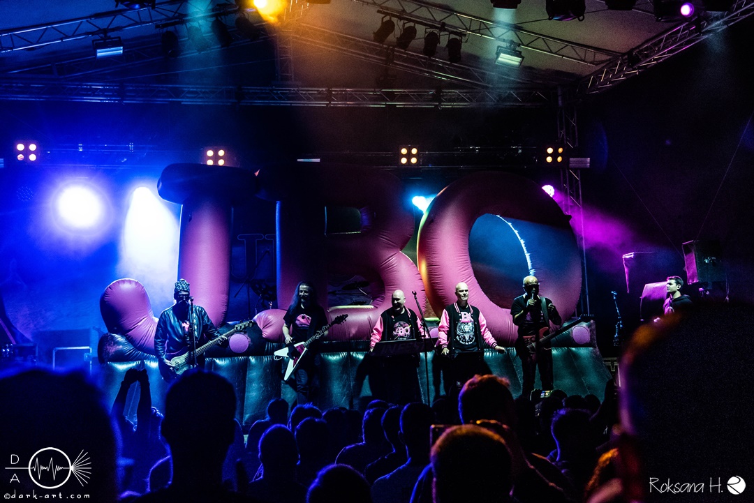 Kurz nach 20.00 Uhr war es dann soweit. Die fränkische Kulttruppe, inklusive ihrer zwei „Showfuzzies“, betraten nach kurzem Intro die Bühne und wurden mit großen Applaus der überwiegend pink gekleideten oder mit dementsprechenden Accessoires gespickten Menschen, willkommen geheißen.
