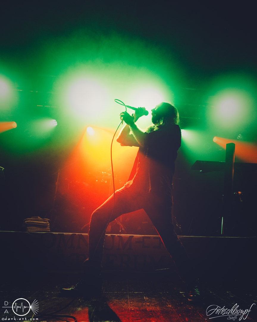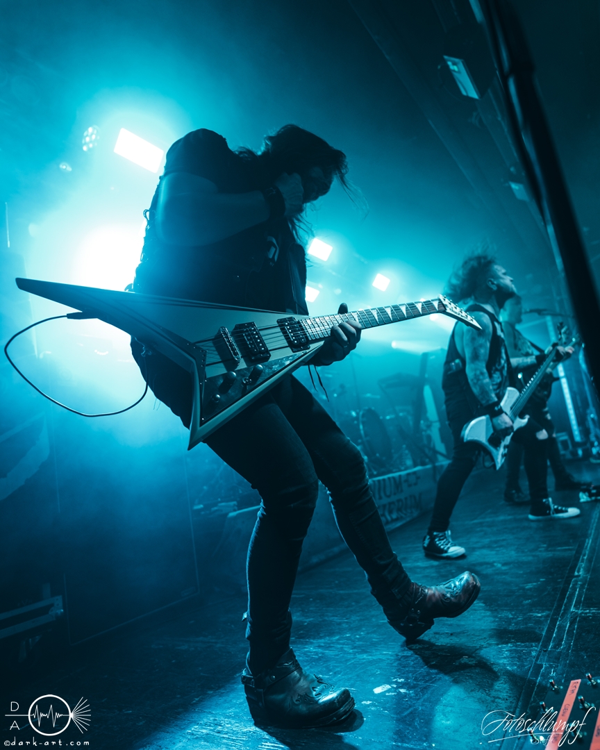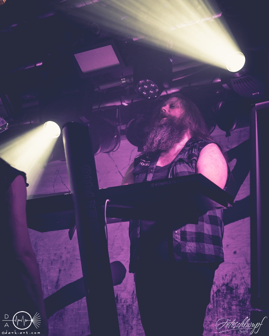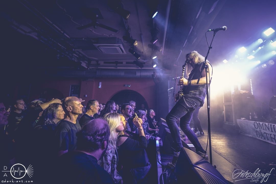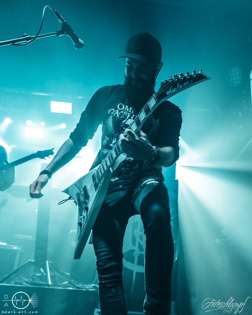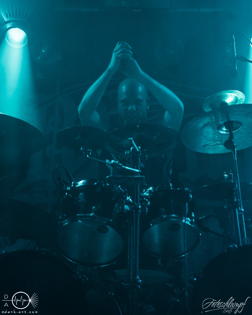 Leider konnte Frontmann Jukka nicht an der Tour teilnehmen, da vor Kurzem Lymphdrüsenkrebs bei ihm diagnostiziert wurde. Alles Gute und eine hoffentlich schnelle Genesung an dieser Stelle! Vertreten wurde er von Henry Hämäläinen (Shade Empire und Halysis), welcher seine Sache auch wirklich sehr gut machte und auch die offizielle Weste mit der Nummerierung 7 erhielt, wie Markus erzählte.