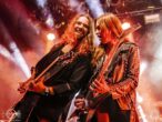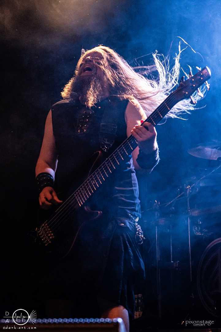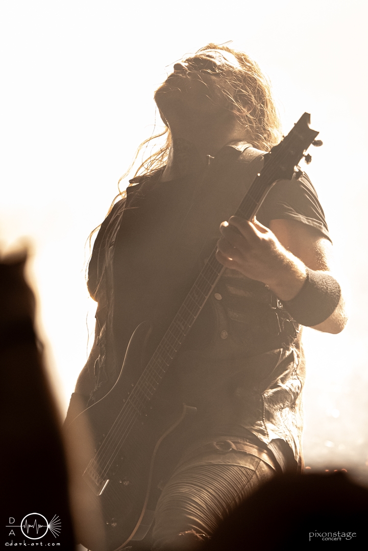 Auf in die nächste Runde mit Ensiferum! Was soll ich sagen, es war dieses Jahr der dritte Auftritt der Truppe für mich und sie liefern halt wirklich immer ab. Direkt zu Anfang flogen die Haare und die Grimassen wurden geschnitten, denn Andromeda von ihrem aktuellen Album Thalassic ist halt auch ein klasse Track, um direkt Schwung in die Bude zu bringen. Sami legte sich wieder richtig ins Zeug, während Petri, wie gewohnt, etwas statischer unterwegs war. Bei Twilight Tavern wurde ordentlich mitgesungen und es wurden immer wieder Becher in die Höhe gestreckt. Zu One Man Army kam dann auch die Aufforderung zu einem schönen Moshpit, das Publikum hatte die eindeutigen Handzeichen vorher einfach immer komplett ignoriert. So ging das natürlich nicht. Aber auch hier dauerte es etwas, bevor sich, auf der mir abgewandten Seite, die Menschen in Bewegung setzten. Aber immerhin, es wurde gemosht! Den wohl bekanntesten Gesangspart gibt es aber bei Lai Lai Hei, welches vorher noch kurz geübt wurde, damit es den Leuten im Stockwerk darüber hoffentlich die Hosen auszieht. Zum Track selber flitze Sami in den Graben, um die Leute abzuklatschen, bevor es auf die Stage zurückging. Ein bisschen Rock ’n’ Roll Feeling kam dann noch mit Two of Spades auf, bei dessen Mittelteil irgendwie jeder albern am Tanzen war. Wie immer ein spaßiger Auftritt mit gut aufgelegten Finnen. Bei Ensiferum weiß man halt, was man bekommt! Und apropos tanzen… als Outro gab es natürlich wieder Vanha suomalaisten poikain vitutuslaulu auf die Lauscher!