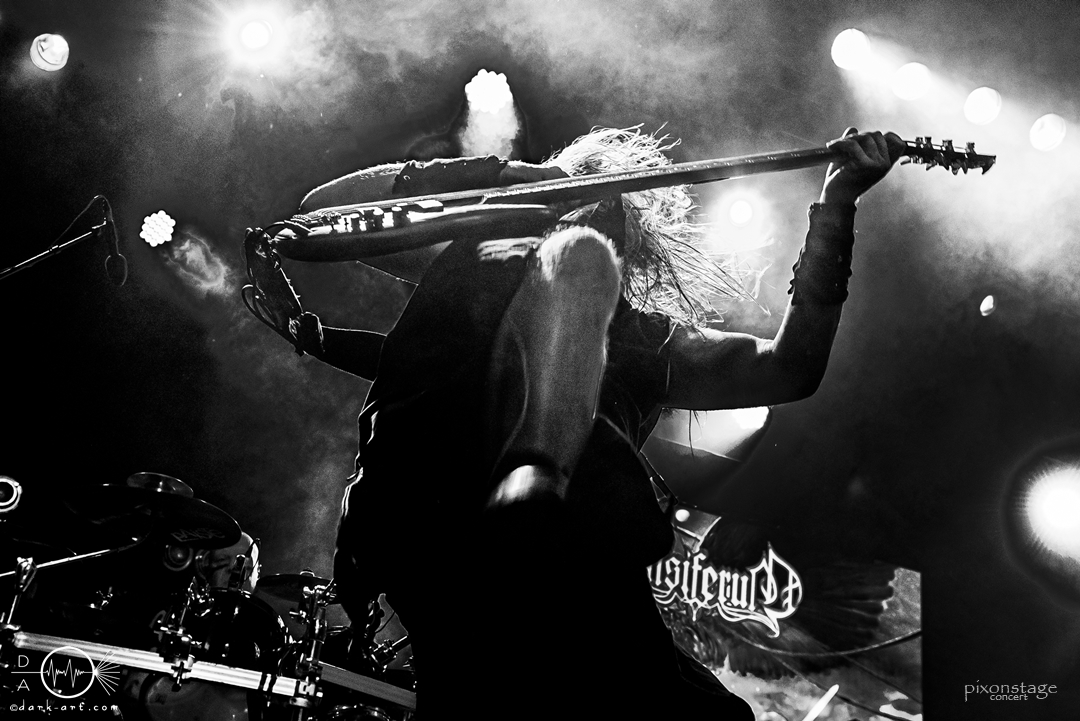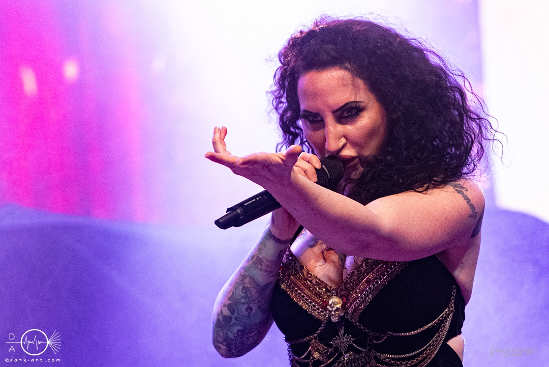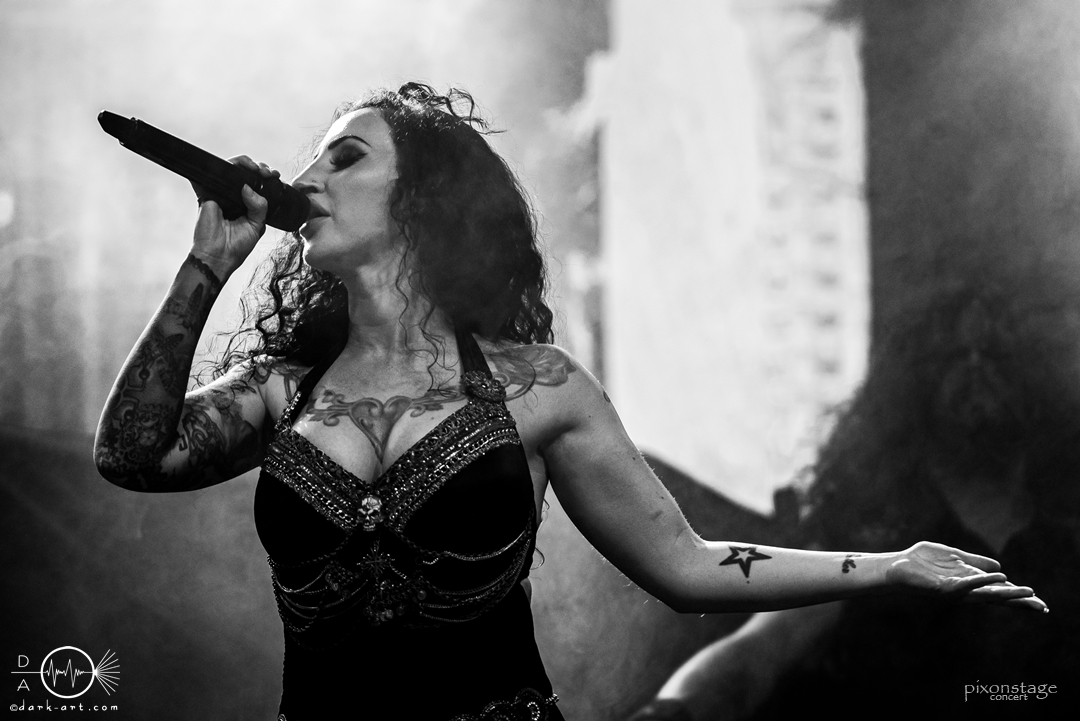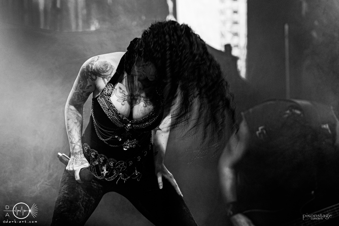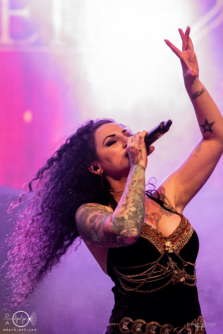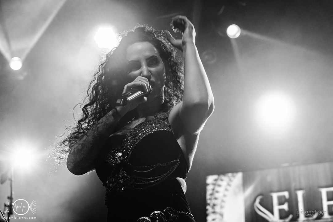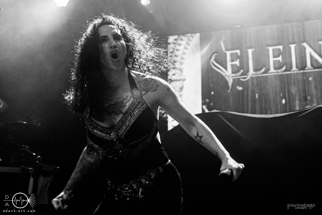Mit der schwedischen Kombo Eleine stand dann erstmal Frauenpower auf dem Programm. Die Symphonic-Dark-Metal-Truppe legte auch gleich los. Was mir fast sofort auffiel, war die anscheinend durchchoreografierte Bühnenperformance. Die Gitarren wurden im Powermetal-Style gleichzeitig geschwenkt und die Haare schwangen auch absolut synchron, fast immer! Selbst Madeleines Bewegungen sahen teilweise geplant aus, wie das grazile Tanzen oder die Armbewegungen. Was aber nicht unbedingt negativ ist, denn gerade das Schwingen der Haarpracht im Gleichklang machte optisch schon was her. Sie und Gitarrist Rikard waren auch immer dabei, das Publikum zu animieren, was recht gut funktionierte. Auch spielte sie gelegentlich mit den Fotografen und posierte für sie. Selbstverständlich gab es auch den Titeltrack des neuen Albums auf die Ohren, We Shall Remain. Die Kombination aus dem femininen Klargesang und den Growls harmonierte durchgehend sehr gut miteinander und so kamen auch die auf ihre Kosten, welche dem Symphonischen normalerweise nicht so angetan sind. Ich fand den Auftritt gut, das Zuschauer-Competition Spiel hätte man meiner Meinung nach aber weglassen oder verkürzen können und etwas weniger Choreo wäre schön. Aber ich würde sie mir wieder ansehen, hat Spaß gemacht, und nur das zählt doch am Ende!