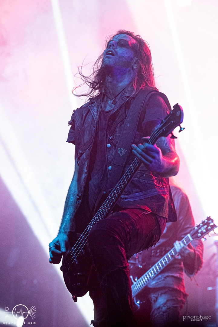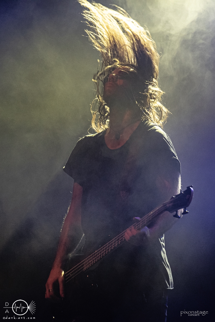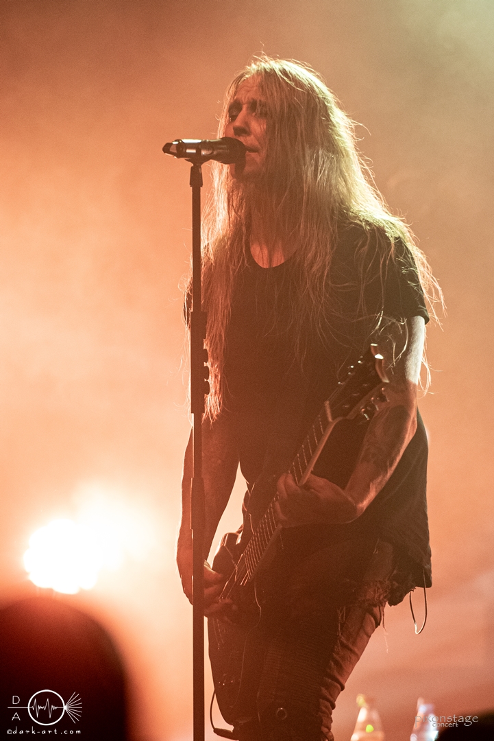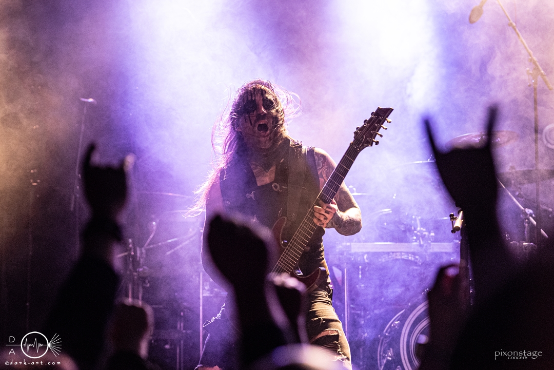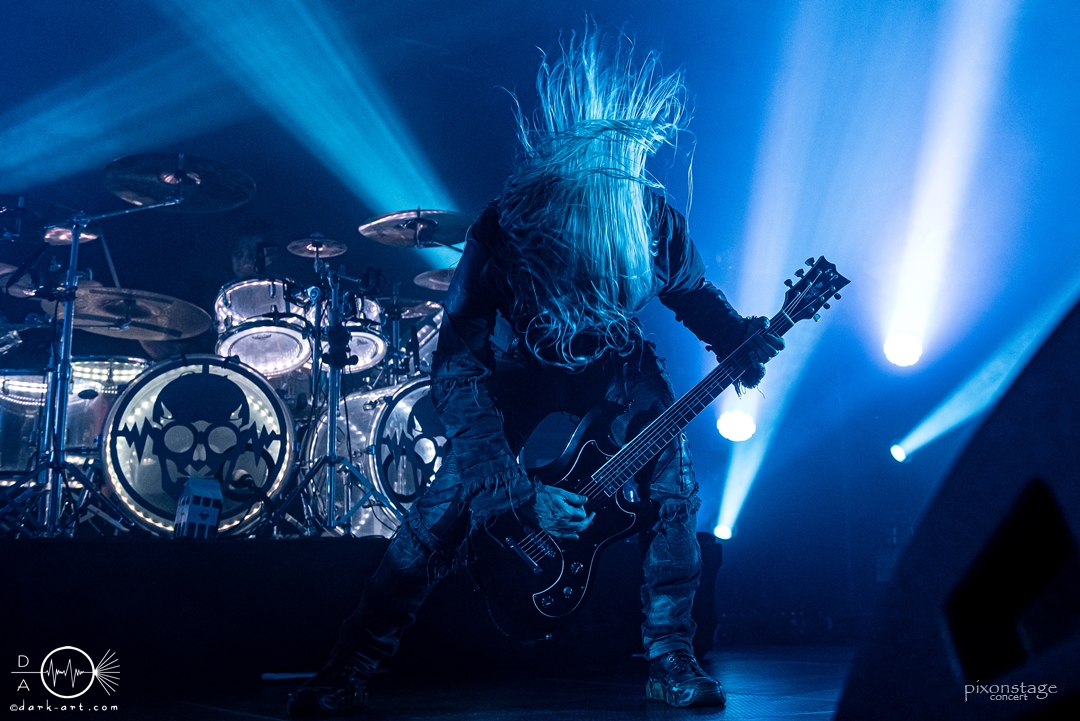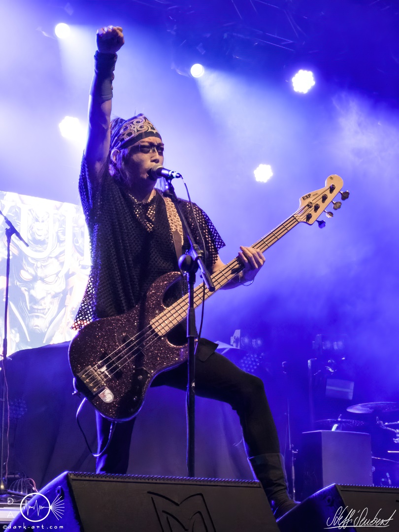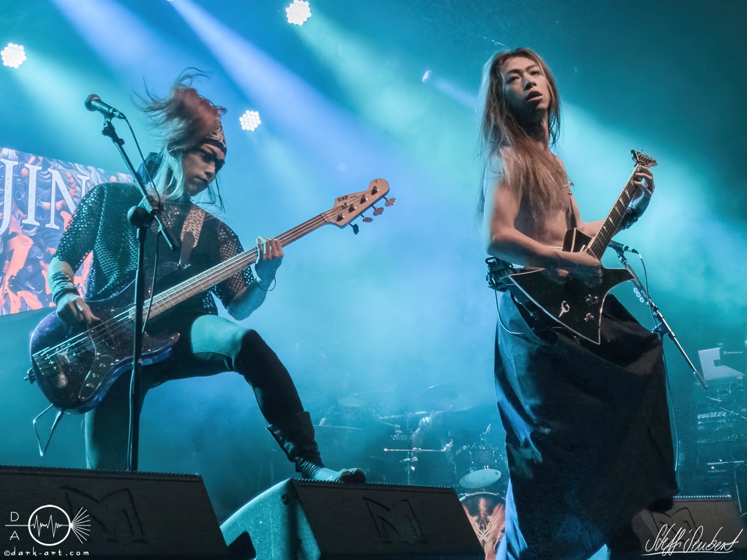 Den Anfang machten die Japaner Ryujin, ehemals Gyze. Aber halt, irgendwie starteten die Jungs eine halbe Stunde zu bald! Auf der Homepage und der Facebook Seite der Batschkapp war 19.00 als Beginn angegeben, es ging aber schon um 18.30 los, 30 Minuten eher als angegeben. Das hatte zur Folge, dass etliche Zuschauer und auch Fotografen noch überhaupt nicht Vorort waren, denn kommuniziert wurde dies nicht. Wirklich schade, denn die waren richtig interessant. Schöner Metal, teilweise mit ordentlich Vortrieb, und dabei immer im Background begleitet von japanischen Melodien. Die vier Jungs hatten wahnsinnig viel Spaß auf der Bühne, das merkte man ihnen an. Teilweise hatten sie traditionelle Gewandungen oder Beinkleider an. Ein bisschen Glamour kam mit dem Glitzerbass ins Spiel. Irgendwie hatten sie etwas von Ensiferum auf Japanisch. Sie spielten technisch einwandfrei und mit Finesse, interagierten aber trotzdem laufend mit dem Publikum und rissen die Instrumente in die Höhe. Man merkt dem Sound an, dass Matthew Heafy da seine Finger im Spiel hat, gerade bei dem neuen Track Raijin & Fujin von ihrem selbst betitelten Album, wo er ja auch einen Gesangspart übernimmt. Zudem war es ein besonderer Tag, denn Sänger Ryoji hatte Geburtstag! Ich fand die Show durchaus gelungen und die Truppe machte ziemlich Spaß!