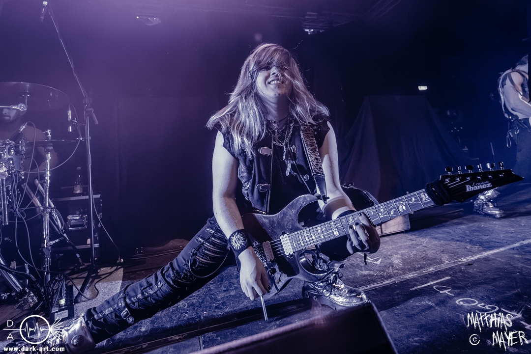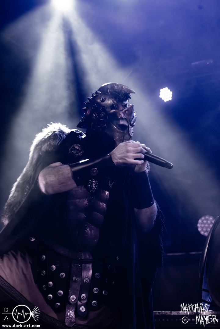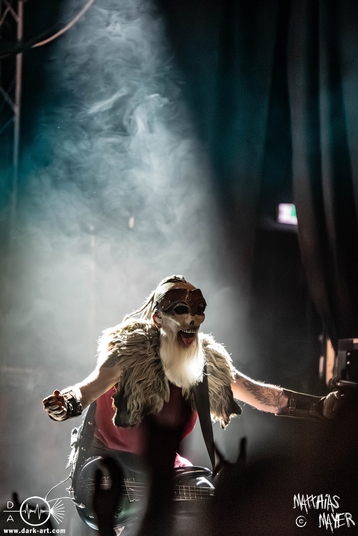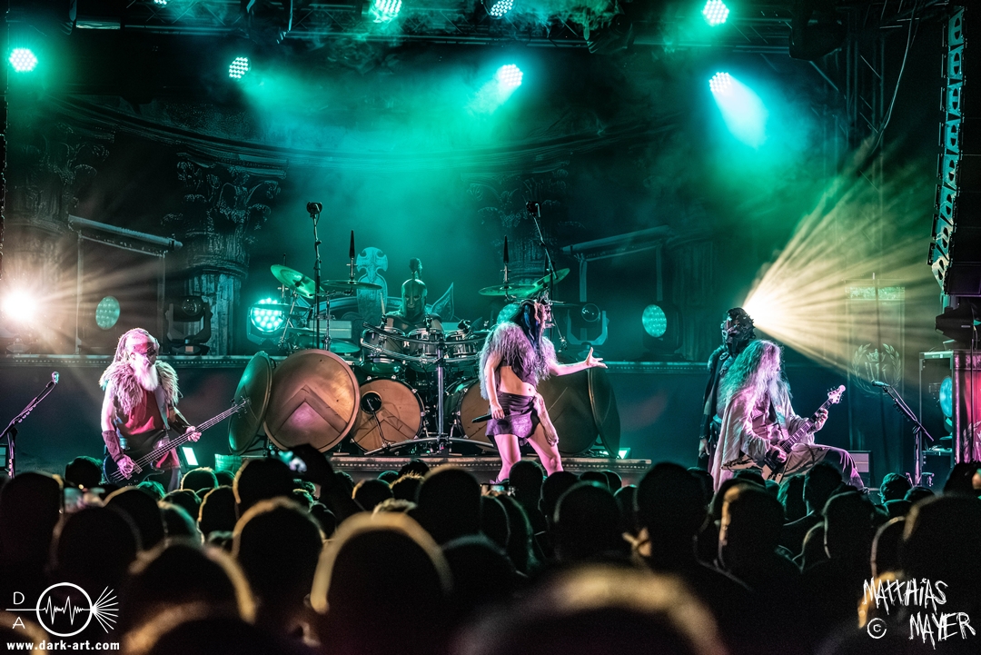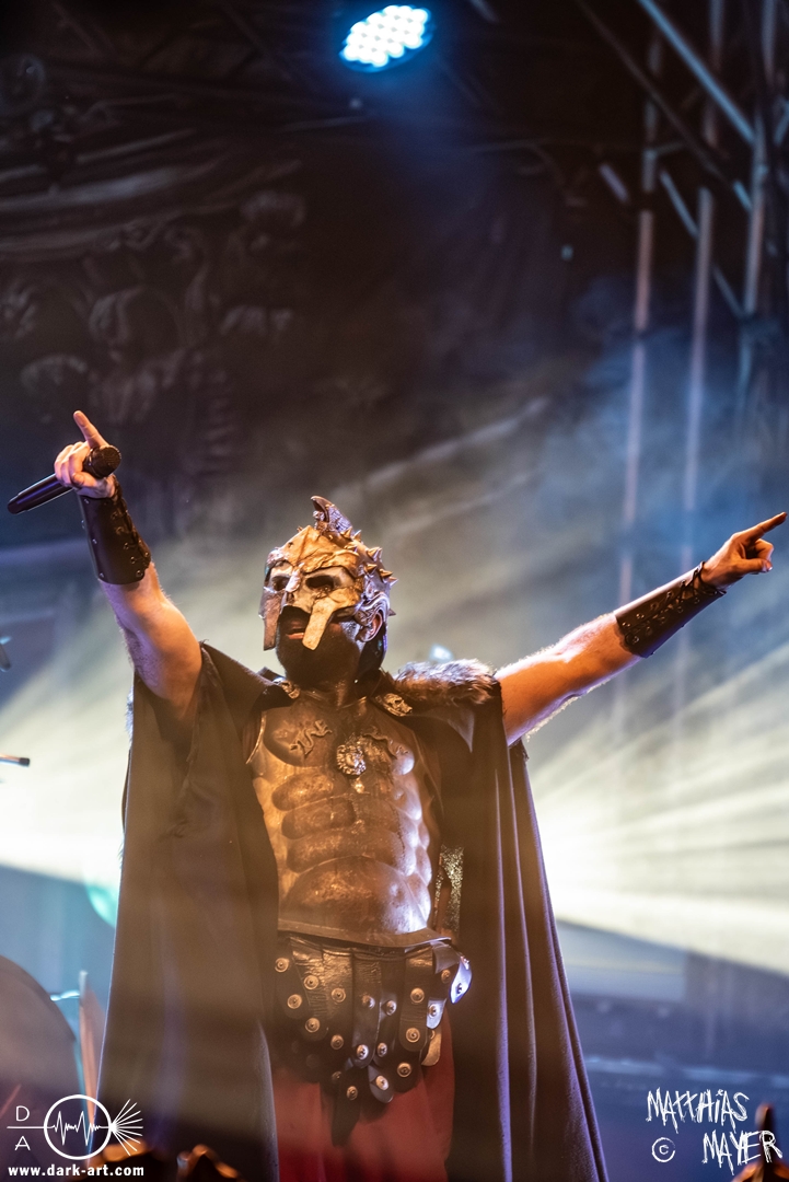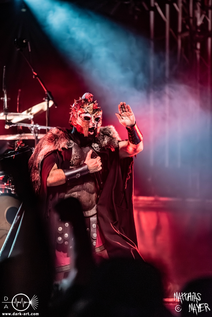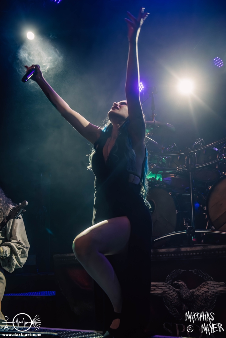 Das Publikum war von Anfang an dabei und feuerte die Band lautstark mit kämpferischen Ahu-Rufen an. Für die Hexe Morgana war es nun an der Zeit, ihre vier königlichen Krieger gesanglich auf der Bühne zu unterstützen und mit Tribune ein spannungsvolles Duett zu bilden. So hatte sie bei Odin’s Sons ihren ersten Einsatz, um danach beim kraftvollen Armageddon die Fäuste in die Luft zu recken und das Publikum weiter anzuheizen. Dabei verstand sie es, wie immer, ihre phantastische Gesangsstimme mit tiefen Growls abzuwechseln. So ist es eine logische Entwicklung, dass im Repertoire der Warkings mit Circle of Witches nun auch ein Lied als Live-Performance ihr ganz allein gewidmet ist.