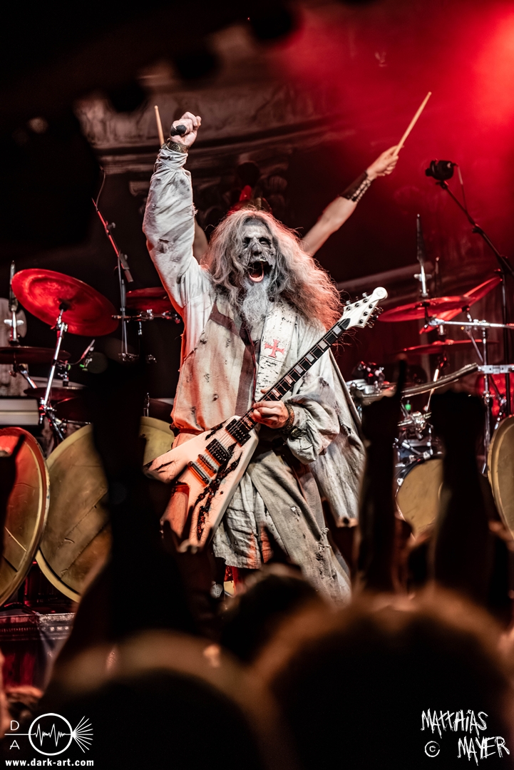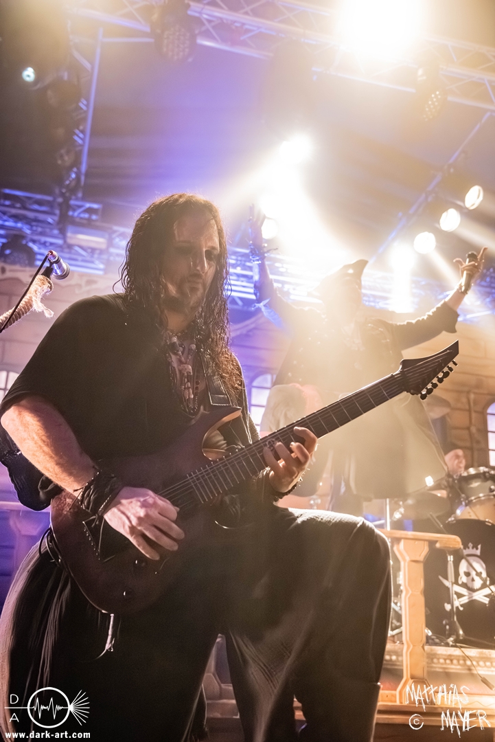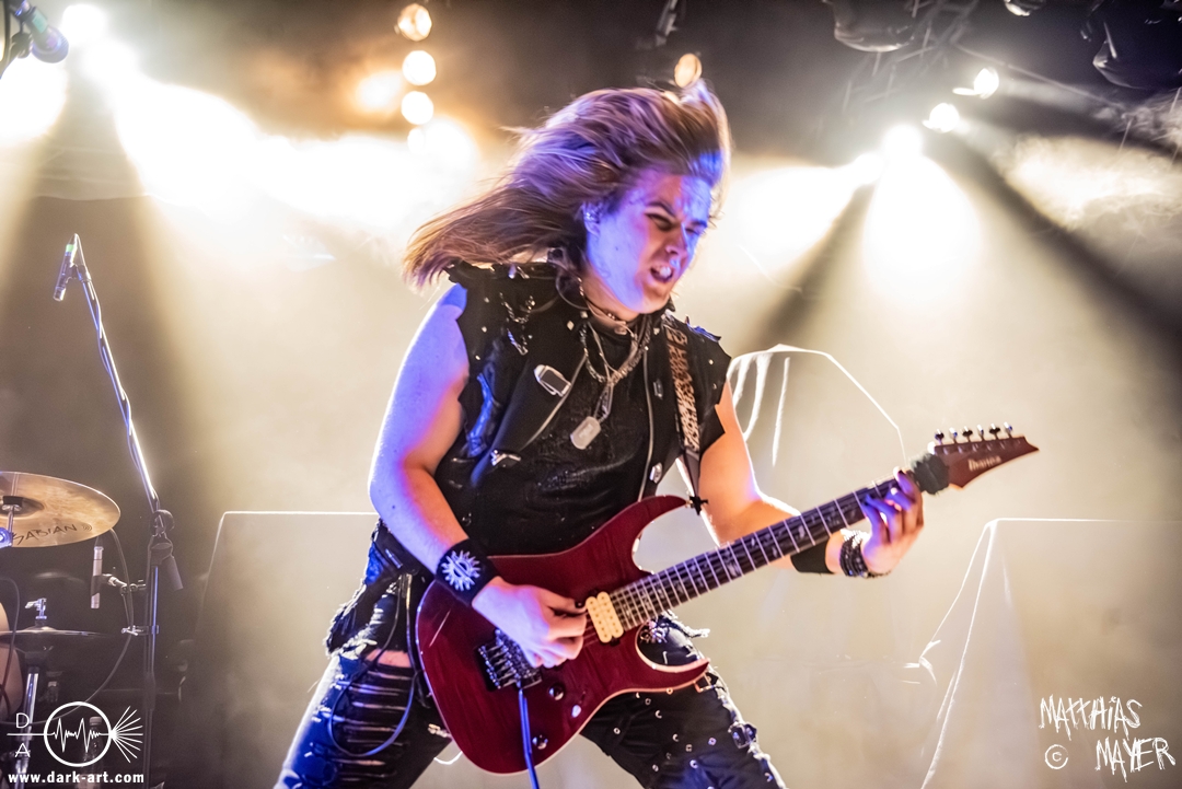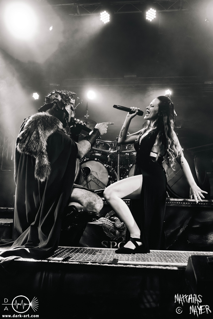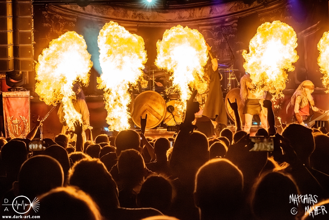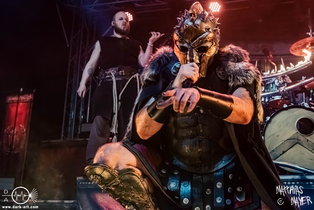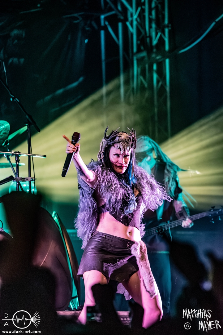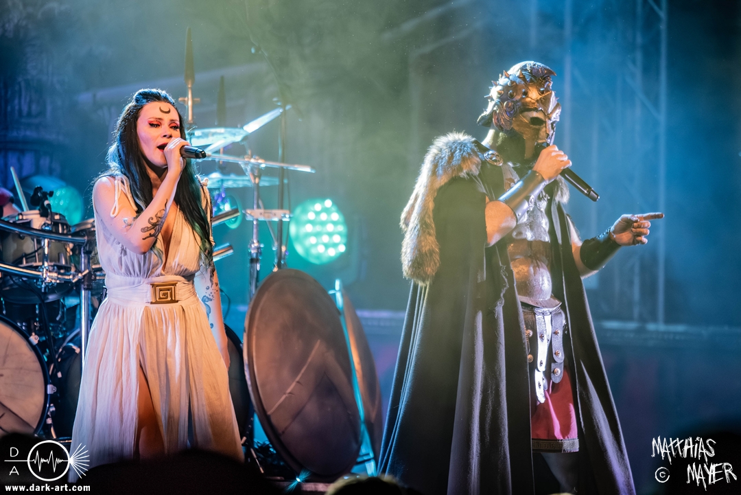Das Publikum war von Anfang an dabei und feuerte die Band lautstark mit kämpferischen Ahu-Rufen an. Für die Hexe Morgana war es nun an der Zeit, ihre vier königlichen Krieger gesanglich auf der Bühne zu unterstützen und mit Tribune ein spannungsvolles Duett zu bilden. So hatte sie bei Odin’s Sons ihren ersten Einsatz, um danach beim kraftvollen Armageddon die Fäuste in die Luft zu recken und das Publikum weiter anzuheizen. Dabei verstand sie es, wie immer, ihre phantastische Gesangsstimme mit tiefen Growls abzuwechseln. So ist es eine logische Entwicklung, dass im Repertoire der Warkings mit Circle of Witches nun auch ein Lied als Live-Performance ihr ganz allein gewidmet ist.