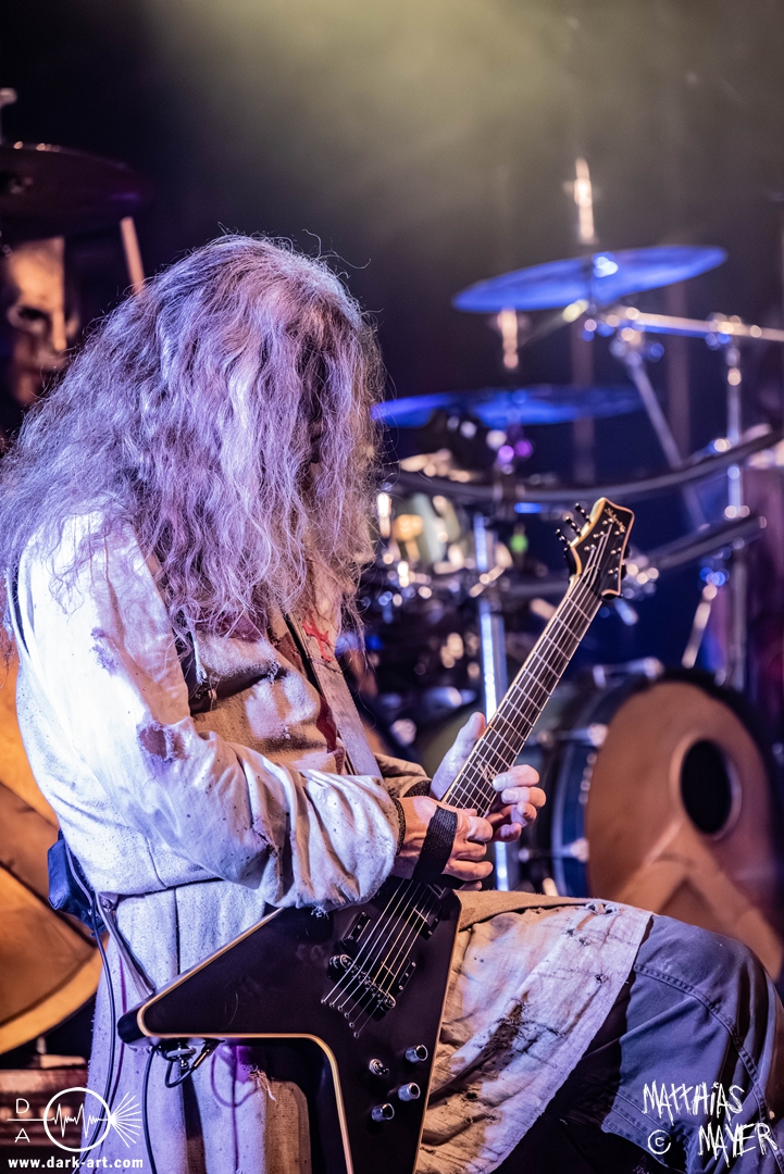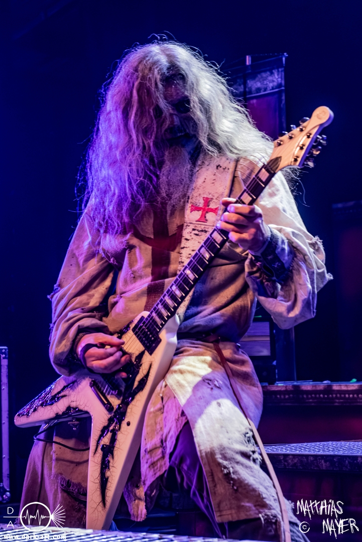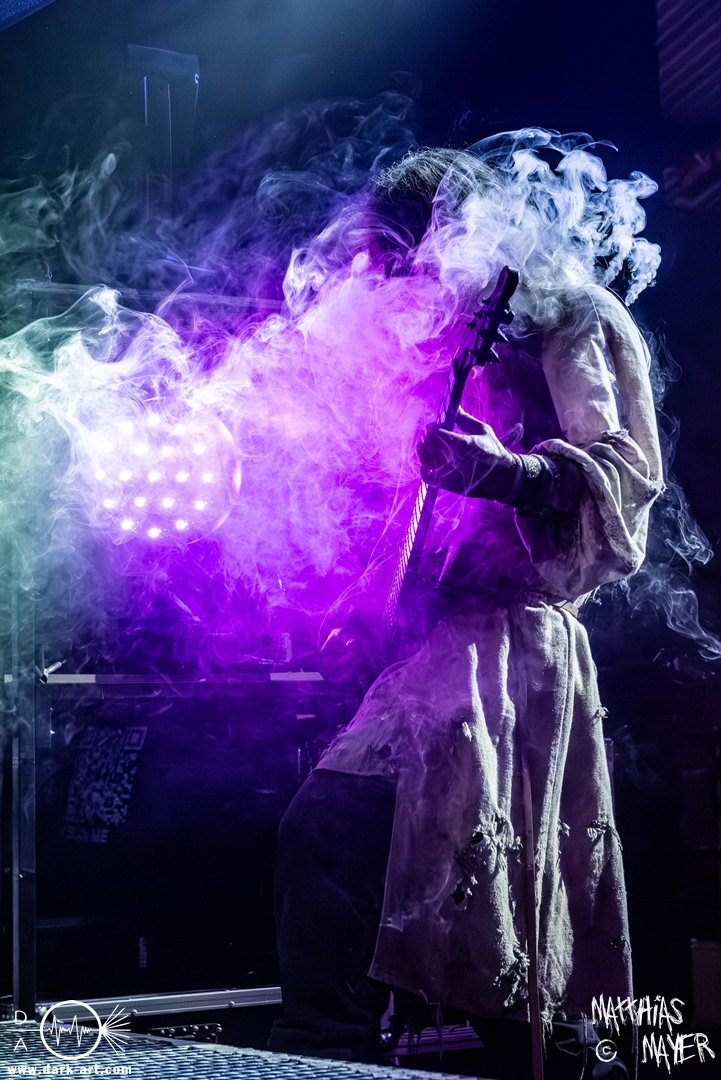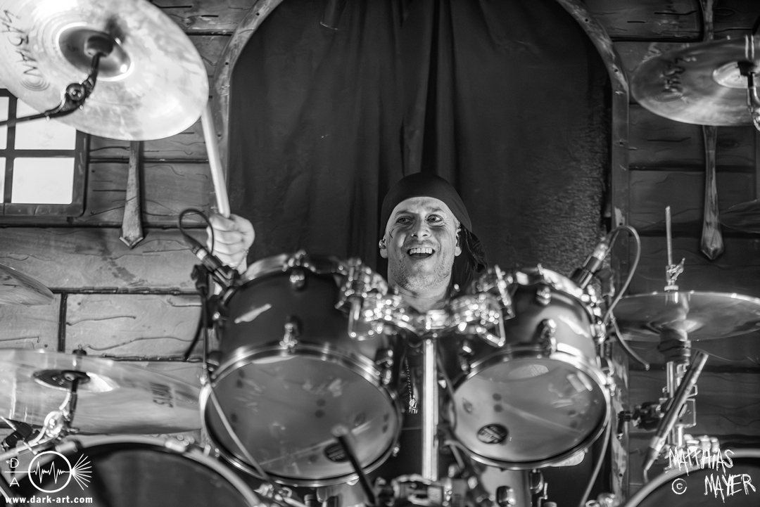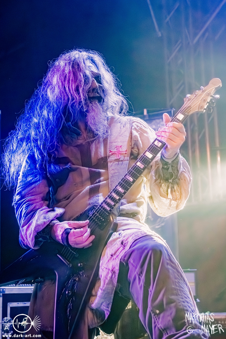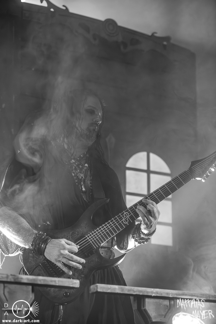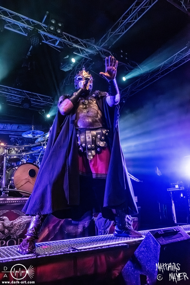 Das Publikum war von Anfang an dabei und feuerte die Band lautstark mit kämpferischen Ahu-Rufen an. Für die Hexe Morgana war es nun an der Zeit, ihre vier königlichen Krieger gesanglich auf der Bühne zu unterstützen und mit Tribune ein spannungsvolles Duett zu bilden. So hatte sie bei Odin’s Sons ihren ersten Einsatz, um danach beim kraftvollen Armageddon die Fäuste in die Luft zu recken und das Publikum weiter anzuheizen. Dabei verstand sie es, wie immer, ihre phantastische Gesangsstimme mit tiefen Growls abzuwechseln. So ist es eine logische Entwicklung, dass im Repertoire der Warkings mit Circle of Witches nun auch ein Lied als Live-Performance ihr ganz allein gewidmet ist.