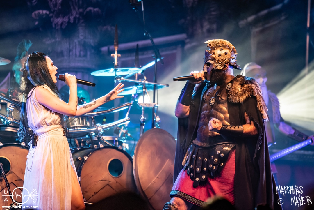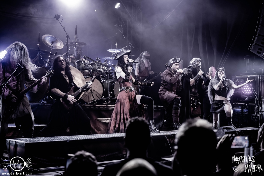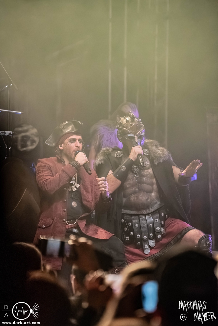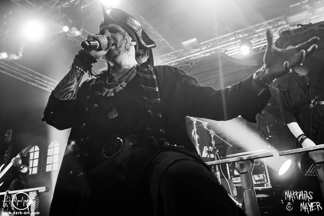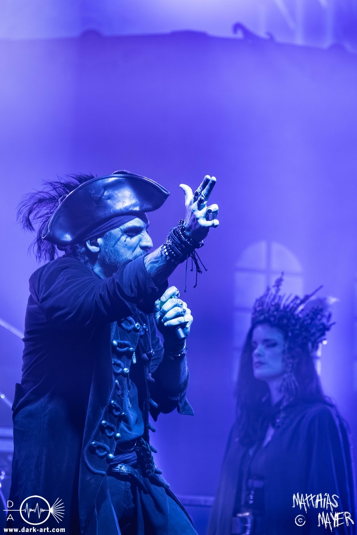 Schließlich wurde es Zeit, dem Tourmotto vollends gerecht zu werden, die Ahu- und Ahoi-Rufe zu vereinen und gemeinsam mit der Piratenschar auf der Bühne zu stehen. Tribune begrüßte Clémentine charmant mit „my Queen of the sea“ um anschließend auch den „King of the pirates“ auf die Bühne zu holen. Pirates and Kings, das gemeinsame Stück der beiden Co-Headliner, war ein Genuss für Auge und Ohren, denn sowohl die aufwendig gestalteten Kostüme als auch die vier Singstimmen verschmolzen zu einer fantastischen Symbiose aus Symphonic- und Power-Metal, die neben den Gitarren der Warkings zusätzlich von der E-Gitarre von Christian Douscha (VOA) unterstützt wurde.