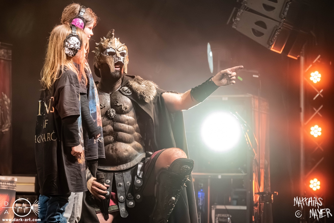 Es folgte der bereits erwähnte Soloauftritt von Morgana und anschließend ein obligatorisches Warkings-Ritual. Vor Fight durften zwei Nachwuchs-Metaller auf die Bühne, um das Publikum anzufeuern, und dann ging es wieder in die Schlacht mit Fight und dem unverzichtbaren „fight, fight, fight“ Kampfgebrüll.