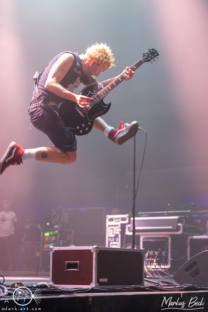 Der Auftritt von ZSK hatte wirklich alles, was es für die ganz große Bühne in der Festhalle brauchte. Schon beim ersten Titel rockte Sänger Joshi so richtig das Publikum. Er erzählte, dass er wahnsinnig happy sei, mit Rise Against auf Tour gehen zu können. Er teilte dem Publikum mit, dass er daran niemals im Traum hätte denken können, dass er die Band jetzt jeden Abend live erleben darf und er so richtig Bock auf diese Tour und dieses Konzert hat. Joshi wirbelte über die Bühne, sprang dabei hoch in die Luft und legte akrobatische Übungen der Extraklasse hin. Gitarrist Arne, welcher im Jahre 2022 neu zu der Band dazugekommen ist, rockte eifrig mit und zeigte seine Skills auf der Gitarre. Bassist Eike sprang ebenfalls hoch in die Luft, riss dabei sein Bein rauf und runter und brachte mit seiner Performance das Publikum zum Jubeln. Wir haben selten so eine energiegeladene Vorband wie ZSK gesehen. Schon bei den ersten Songs hatte die Band das Publikum fest im Griff: alle fingen an zu pogen und moshen.