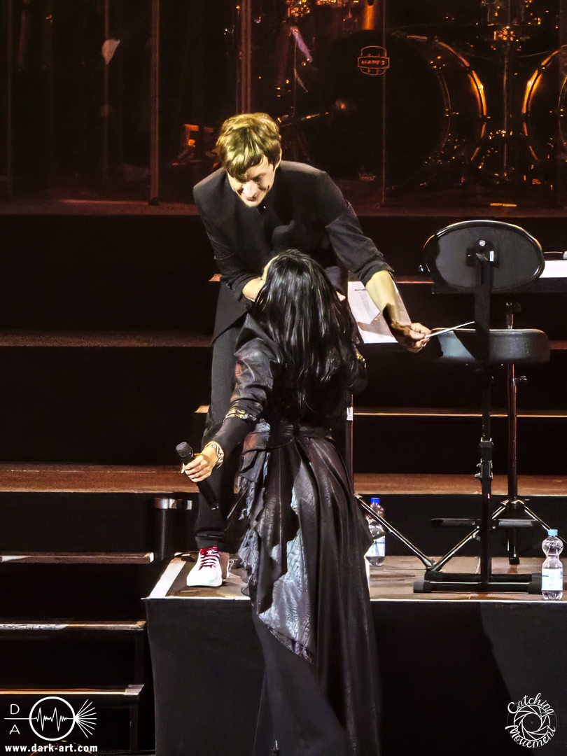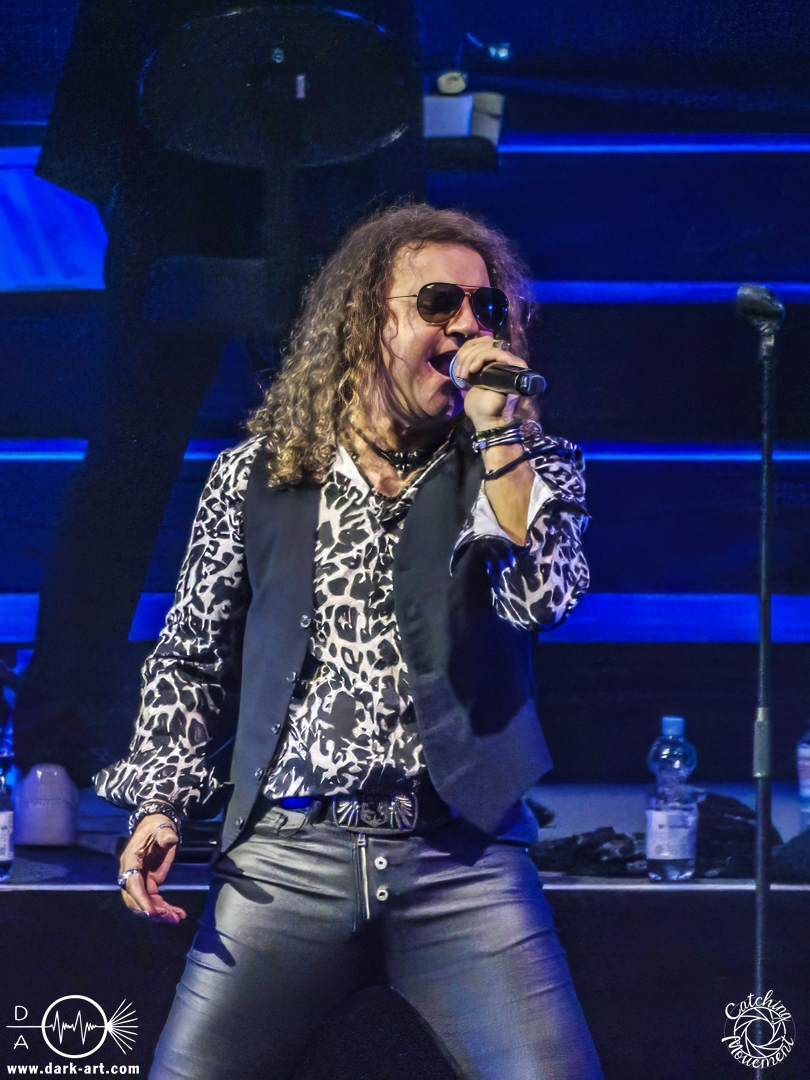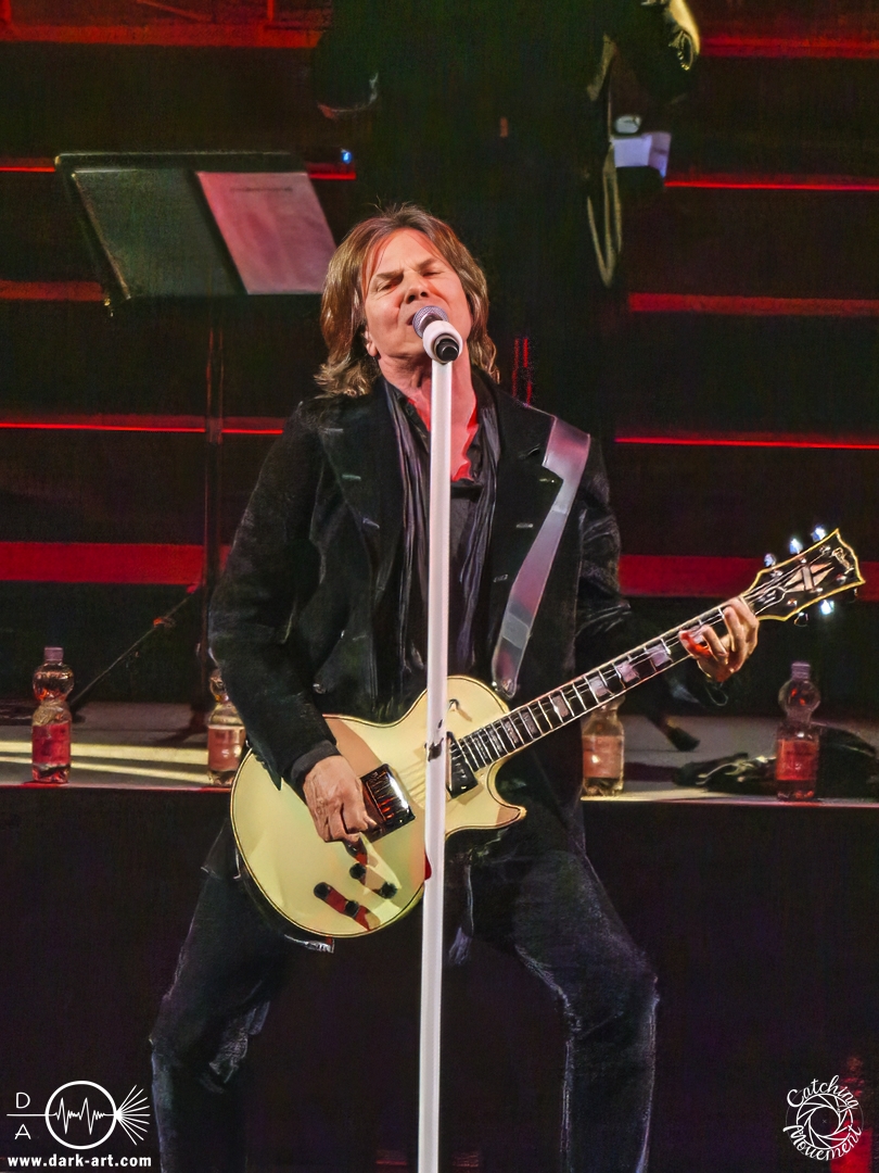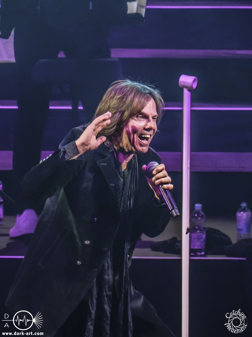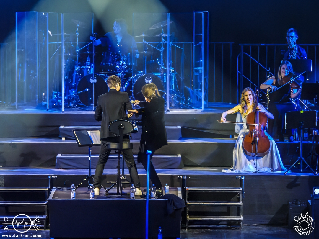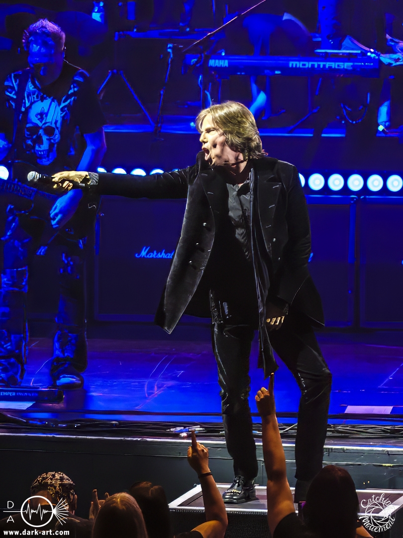 Mit Joey Tempest kam dann der wohl weltweit bekannteste der Stars auf die Bühne – an den Welthits von Europe kommt wahrscheinlich niemand vorbei. Joey betrat mit seiner Gitarre um den Hals die Bühne, mischte den Laden mit Ready Or Not auf und schaffte es, dass alle Zuschauer auf die Füße kamen und mit tanzten. Danach wurden aber ruhigere Töne mit Carrie angeschlagen. Die Zuschauer blieben dennoch stehen, Joey hatte sie voll im Griff und brachte sie dann auch wieder mit Rock the Night zum Tanzen. Er selbst konnte auch nicht still stehen bleiben und lief von links nach rechts, interagierte mit den Fans, gab einigen auch kurz die Hand, ging die Treppe hoch zum Schlagzeuger und sekundierte auch den Dirigenten, was der ersten Cellistin auch ein breites Grinsen entlockte. Ein großes Feuerwerk wurde dann bei dem Europe-Lied abgebrannt: The Final Countdown durfte natürlich nicht fehlen. Die Zuschauer sprangen mit Joey, der seinen Mikrofonständer durch die Luft wirbelte und keine Müdigkeit zeigte. Der Applaus nach seinem Auftritt war besonders groß.