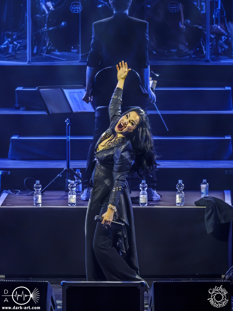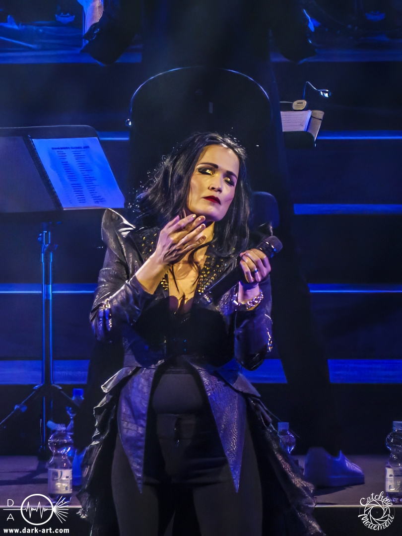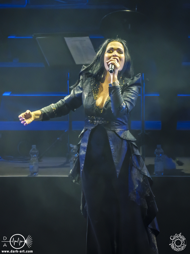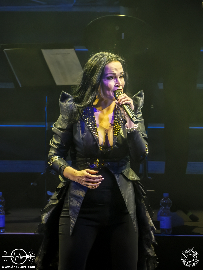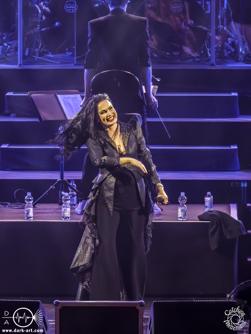 Bevor Tarja Turunen auf die Bühne kam, durfte zunächst das Orchester sein Können präsentierten, in dem sie das Main-Theme von Star Wars, untermalt mit Sternenflimmern auf der LED-Leinwand, zum Besten gaben. Nach großem Applaus erklangen dann die ersten Töne von Nemo und Tarja betrat die Bühne, um mit ihrer Stimme zu begeistern. Als ausgebildete klassische Sängerin dürfte sie sich an diesem Abend am wohlsten gefühlt haben; sie hatte auch sichtlich Freude daran, auf der Bühne zu stehen. Nach einem Nightwish-Song folgten mit I Walk Alone und Until My Last Breath zwei Lieder aus Tarjas Solokarriere, bevor dann mit Sleeping Sun wieder ein Lied von Nightwish gespielt wurde, welches in dieser Interpretation mindestens mir eine Gänsehaut bescherte. Im Anschluss lenkte sie den Applaus von sich auf das Orchester und bedankte sich durch Verbeugung in Richtung der Musiker für den Auftritt.