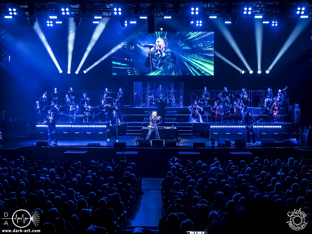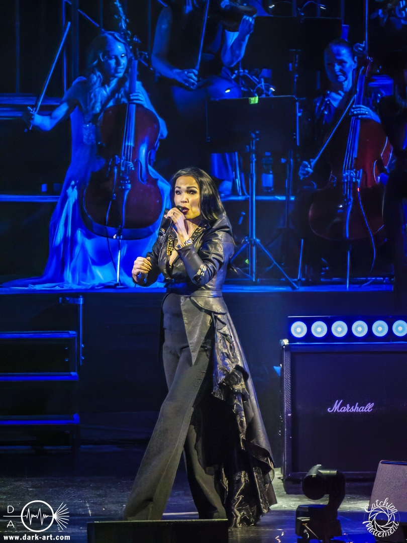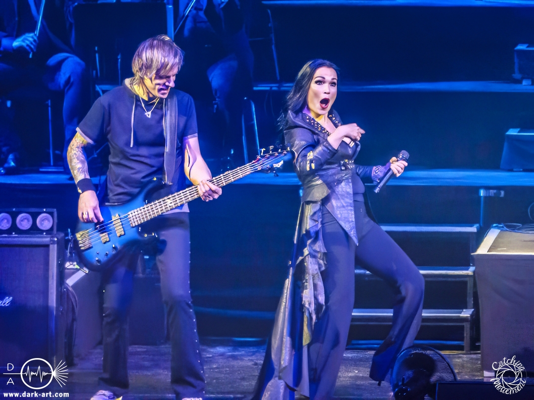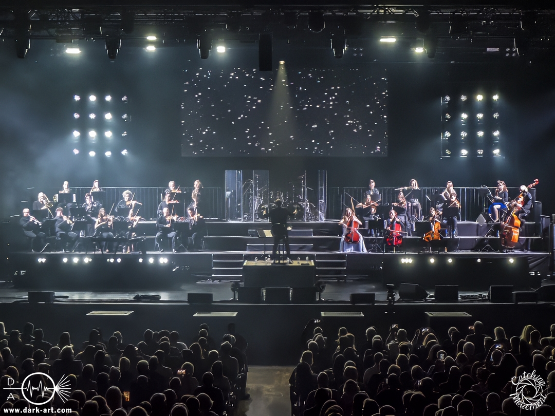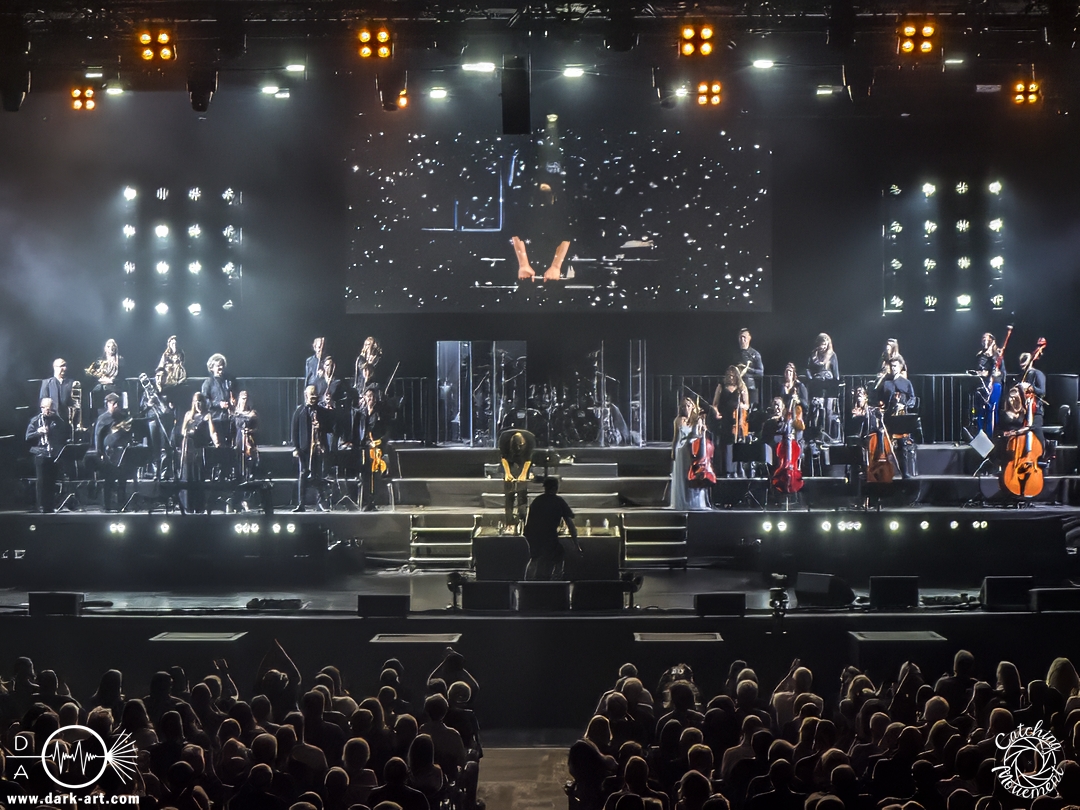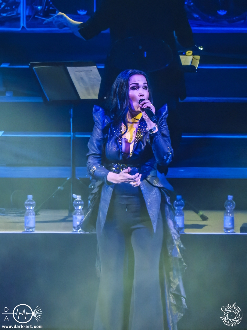 Bevor Tarja Turunen auf die Bühne kam, durfte zunächst das Orchester sein Können präsentierten, in dem sie das Main-Theme von Star Wars, untermalt mit Sternenflimmern auf der LED-Leinwand, zum Besten gaben. Nach großem Applaus erklangen dann die ersten Töne von Nemo und Tarja betrat die Bühne, um mit ihrer Stimme zu begeistern. Als ausgebildete klassische Sängerin dürfte sie sich an diesem Abend am wohlsten gefühlt haben; sie hatte auch sichtlich Freude daran, auf der Bühne zu stehen. Nach einem Nightwish-Song folgten mit I Walk Alone und Until My Last Breath zwei Lieder aus Tarjas Solokarriere, bevor dann mit Sleeping Sun wieder ein Lied von Nightwish gespielt wurde, welches in dieser Interpretation mindestens mir eine Gänsehaut bescherte. Im Anschluss lenkte sie den Applaus von sich auf das Orchester und bedankte sich durch Verbeugung in Richtung der Musiker für den Auftritt.