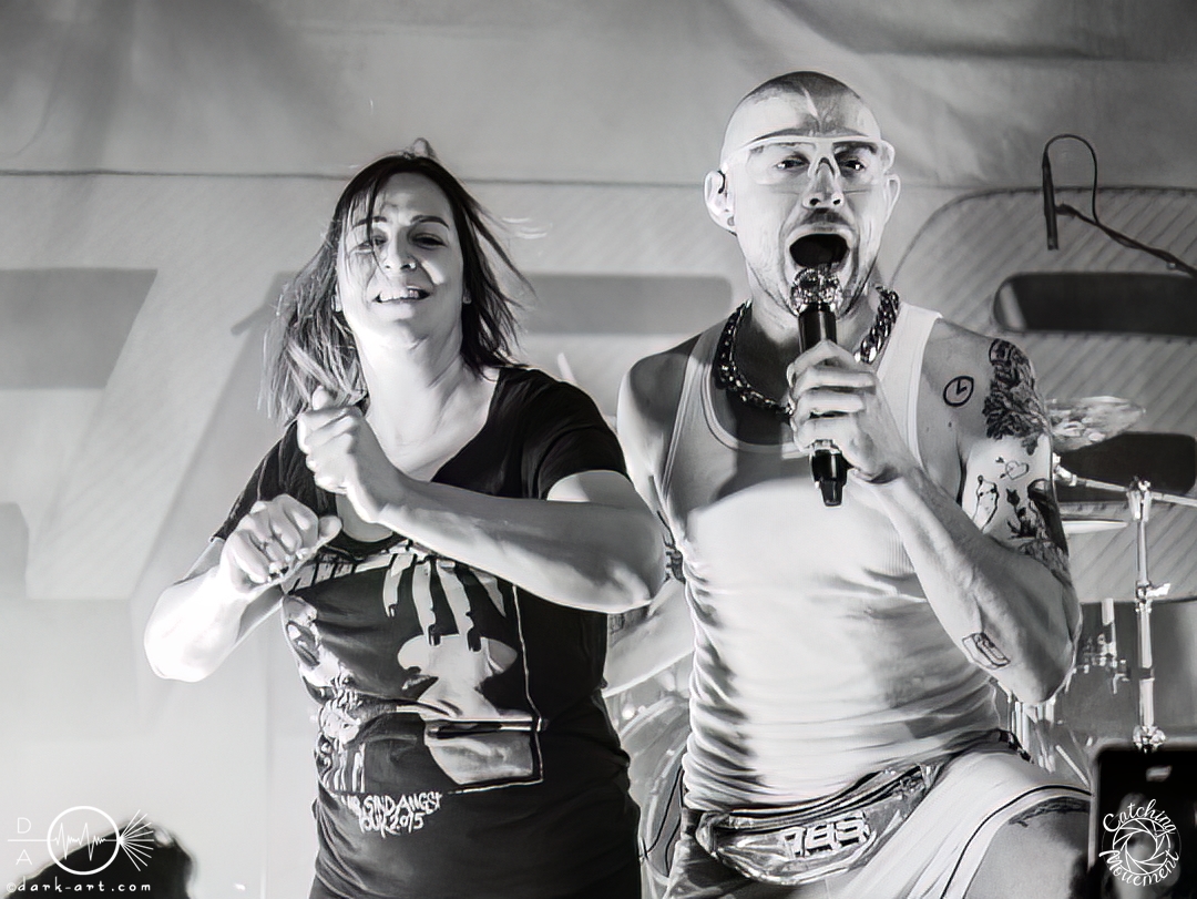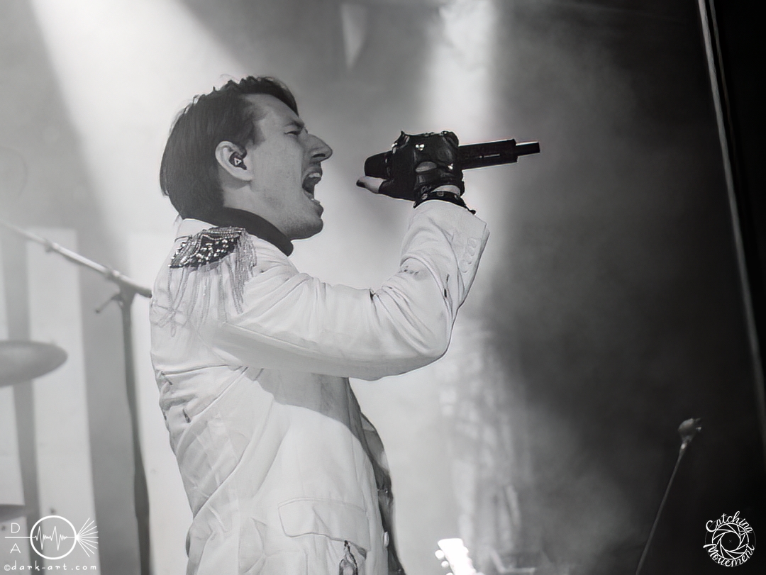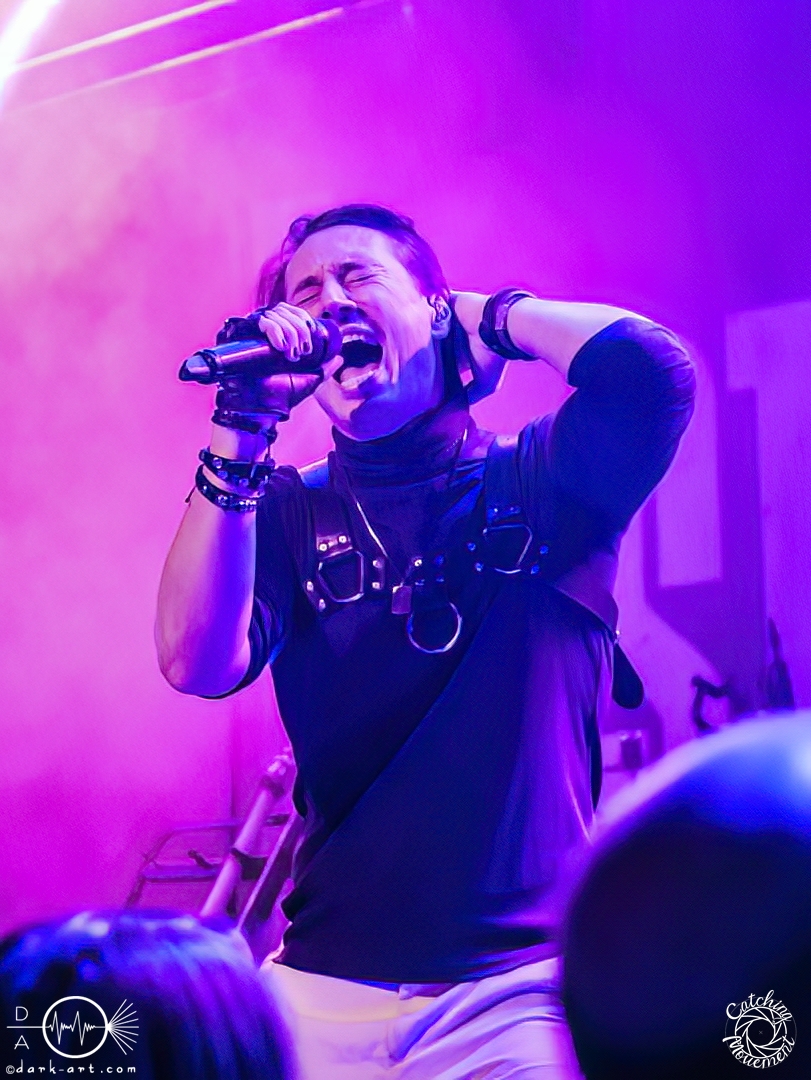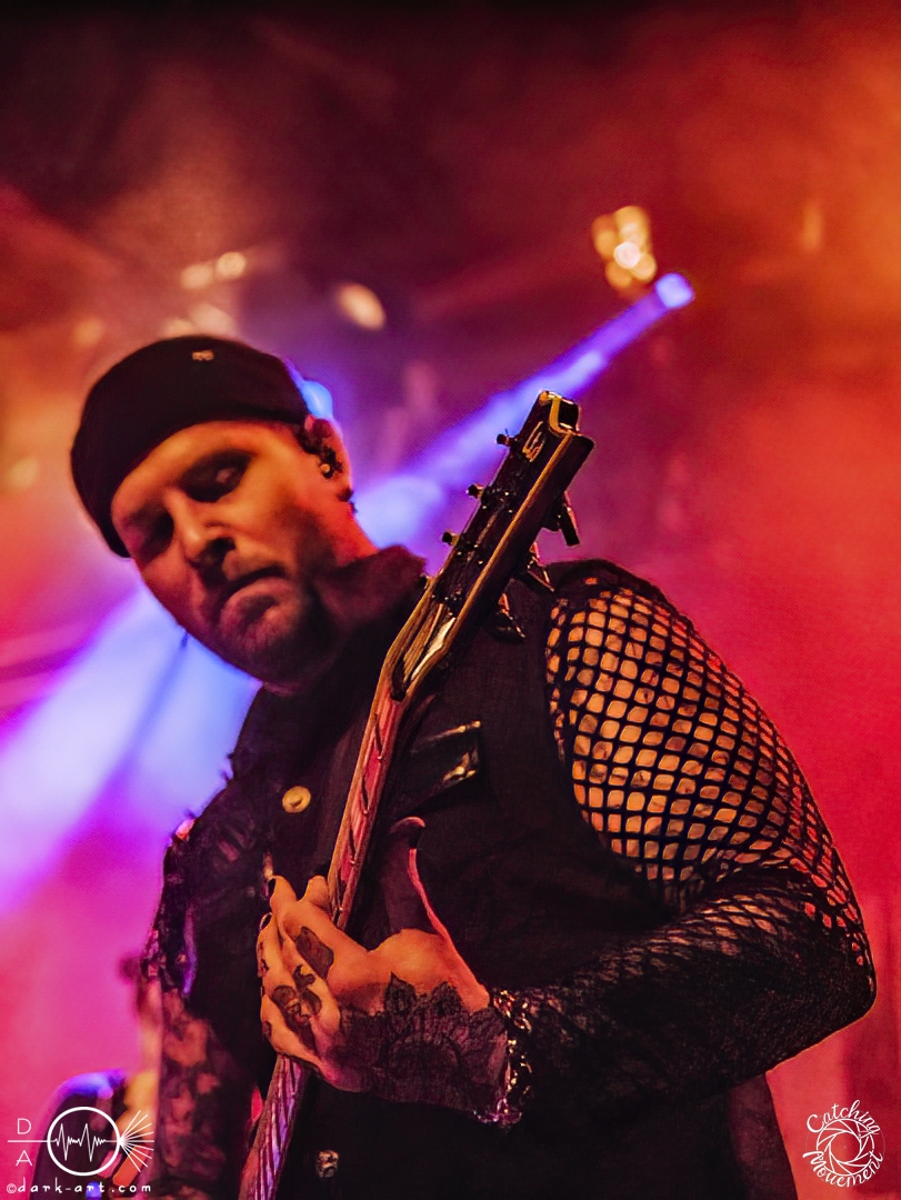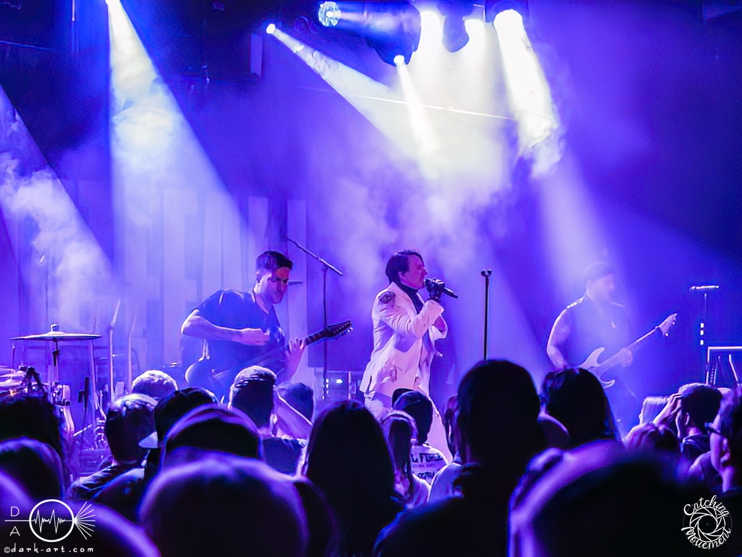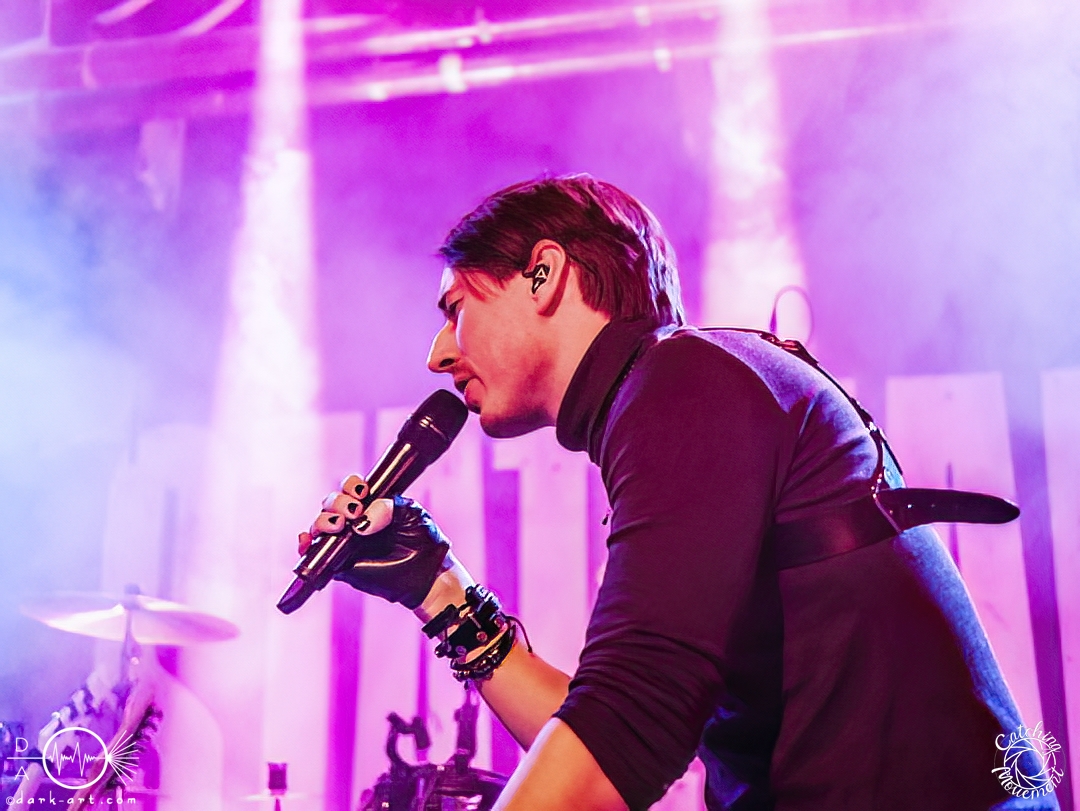 In der Umbauphase wurde die Band in Form von Puppen auf die Bühne gebracht und die Luft spannte sich wie ein Flitzebogen. Die Show von Samurai Pizza Cats begann mit der Titelmelodie der gleichnamigen Comicserie und die Bühne wurde dunkel. Als Erstes hörte man die Stimme des Sängers und seine Aufforderung „Frankfurt, Bewegung!“. Er selbst war bewaffnet mit Hasenmaske, mit creepigen leuchtenden Augen und mit Gitarrenriffs und mit dem ersten Scream startete das Event mit dem Song Outcast. Die Menge hat gekocht, gepogt, sang mit. Erst fiel die Maske, dann wurde beim zweiten Refrain des ersten Songs gleich mal angeleitet, in die Hocke zu gehen, um im nächsten Moment zu springen. Herzlich willkommen zur rhythmischen Sportgymnastik im Bett. Ich muss gestehen: Ich weiß nicht mehr, wer mehr on fire war: Sänger Sebastian oder die Fans. Auf jeden Fall sollte bei Falling Down das Bett brennen, und der Boden vibrierte von vielen tanzenden, pogenden und ekstatischen, klatschenden Fans. Die Band war überwältigt und wer behauptete: „Das war es jetzt“, der täuschte sich. The Wolf in me wurde mit „Ich will euch in Bewegung sehen“ angekündigt und neben einer wogenden Menge kamen die ersten Stagediver des Abends. Im Lauf der ersten Lieder fiel die Collegejacke des Sängers. Was nicht hieß, es würde ruhiger. Freakshow kündigte er mit „Es herrscht Tanzgebot“ an und bat die Zuschauer darum, dass die Menge sich in der Mitte teilte, während er sich umdrehte und mit den ersten Tönen eine Wall of Death sehen wollte. Was soll man groß sagen, nach der Ansage machte das Bett bis zum Lichtpult mit. Fake wird als „ryhthmische Sportgymnastik“ angekündigt und die Menge tobte einfach weiter. Nur um danach kurz durchatmen zu können, da die Bühne dunkel wurde. Nach dem Intro von Der Weiße Hai kam Sebastian im Haikostüm wieder auf die Bühne und trällerte Have a G.O.O.D. Day!, um im Anschluss ein Liebeslied anzukündigen Welcome to the Fightclub, welches mit zwei Circle Pits anstelle von Handylichtern gefeiert wurde. In Alpha überraschte er uns, denn neben Klargesang, Growl und Shouten legte er einen sehr passablen deutschen Rap hin. Hier bekam die Band auch Unterstützung vom Moshpitminister (einem Zuschauer mit Warnweste auf dieser Moshpitminister stand) und seiner Begleiterin, welche beide einen Pit anführten. Langsam neigte sich die Show dem Ende und als Stärkung gab es vor dem letzten Lied noch von der Band spendierte Pizza Hawaii, eine Kuscheltierananas, welche vom Lichtmischpult geworfen wurde und Sebastian verkleidet als Pizzastück. Mit Pizza Homicide endete das schweißtreibende und energiegeladene Workout. Also wem dann noch kalt war, der ist eindeutig unrockbar. Es war wieder mal Metalcore vom Feinsten.