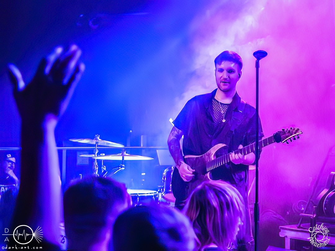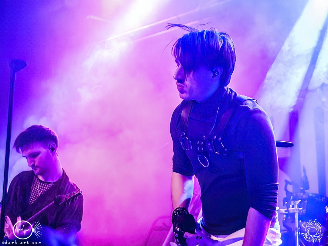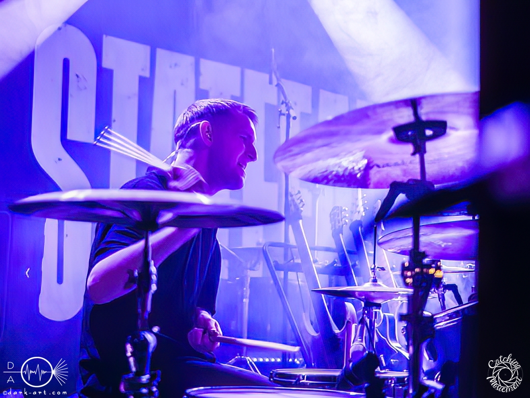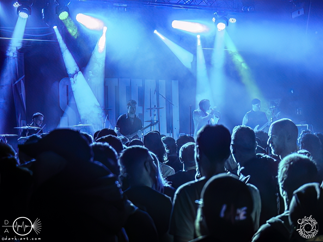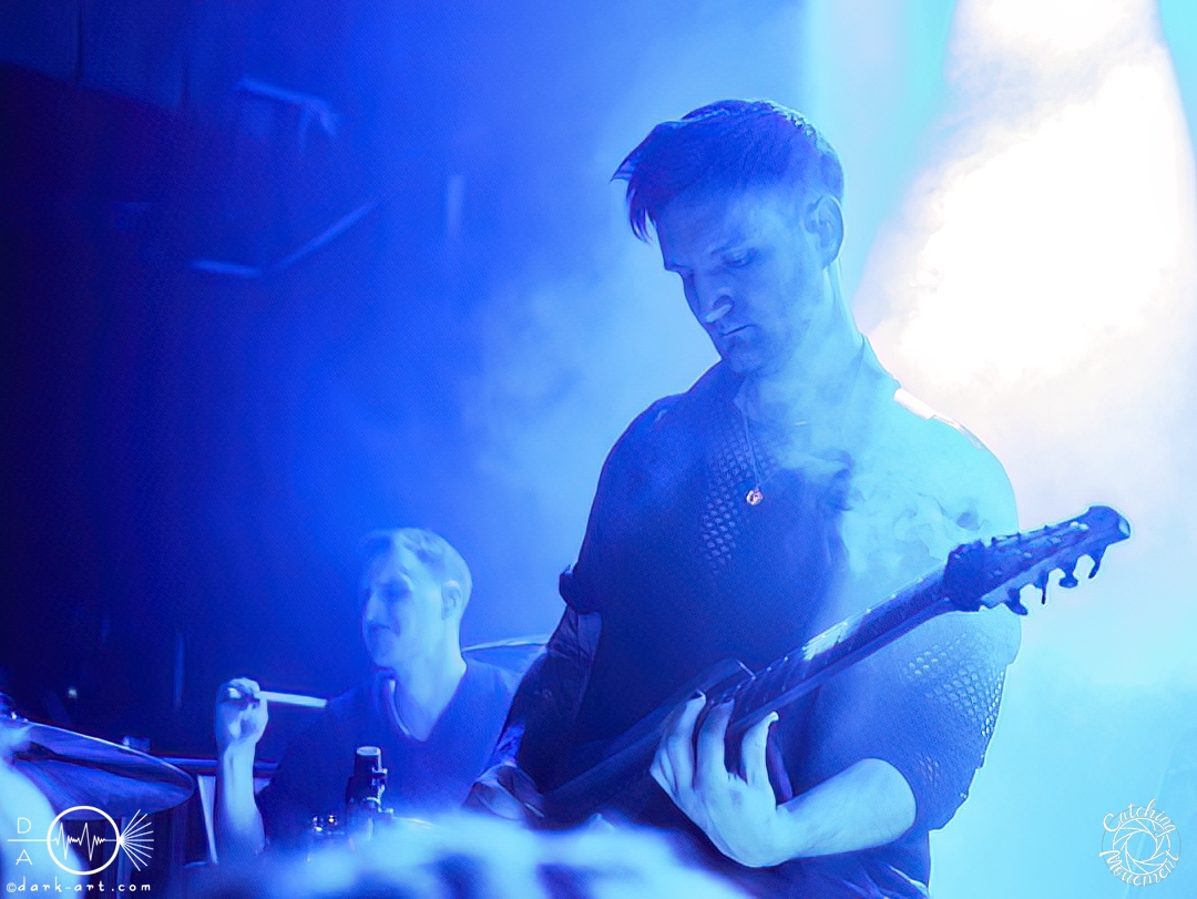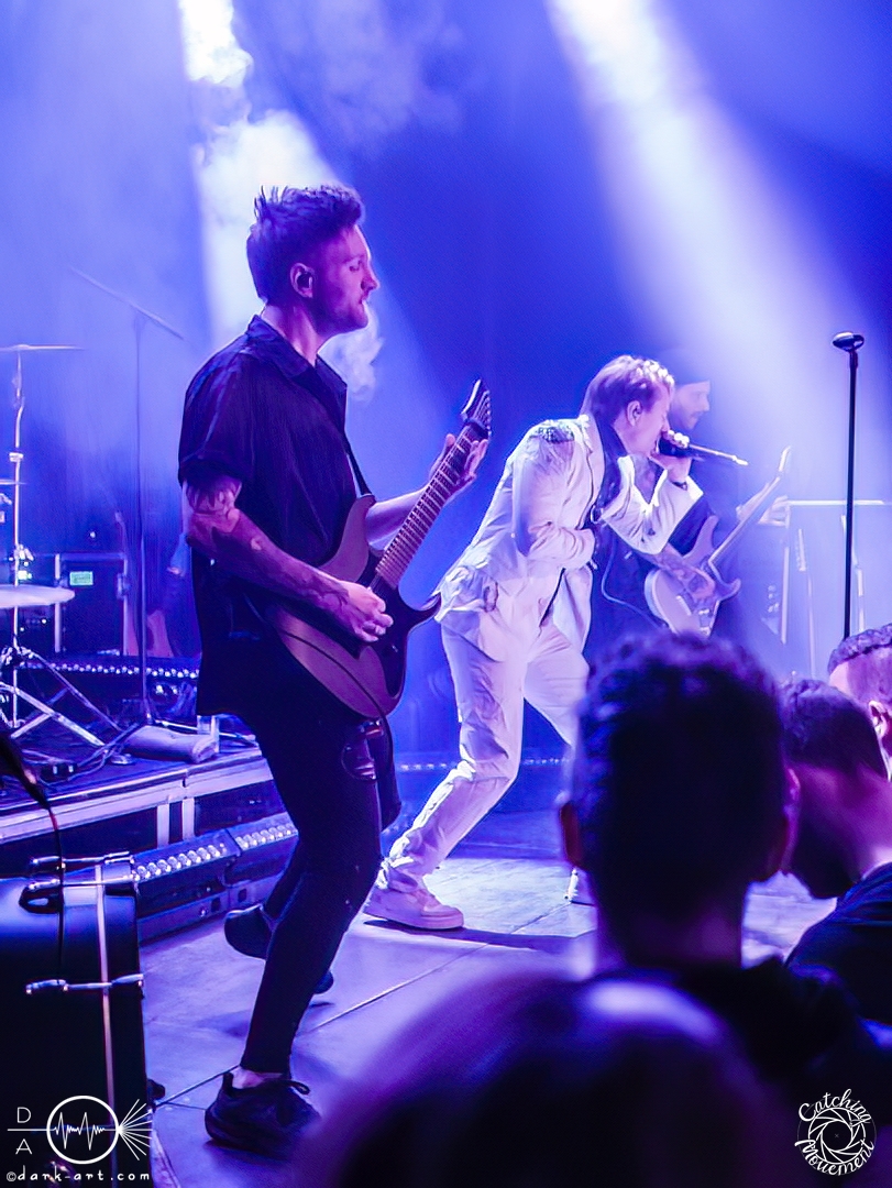 Statefall, die holländische Band aus Amsterdam, begann ihre Show mit einem Eyecatcher. Denn die ersten Gitarrentöne wurden auf komplett dunkler Bühne gespielt, Bassdrums mit Lichtimpulsen, und mit einem Scream startete die Show richtig. Bei den ersten Liedern war der Sänger in einen weißen Anzug gekleidet, das war aber auch schon das einzige Unschuldige an diesem Abend. Das mit dem Chillen, das konnte man von der ersten Minute an vergessen. Treibende Drums, schmetternde Gitarre und ein Gesang, der stark an Annisokay erinnerte, waren die Grundlage. Von Klargesang über bis in die Knie gehende, gesungene Growls des Sängers bis zu sphärischem Sprechgesang des Gitarristen war alles dabei. Das Publikum dankte es der Band aus Amsterdam mit Headbangen, mit Klatschen, der ersten verhaltenen Wall of Death und beim letzten Song sogar mit einem Circle Pit. Statefall bedankte sich bei TBS und Samurai Pizza Cats und suchte den Kontakt zu den Fans. So nutzte der Gitarrist z. B. das Filmen eines Fans, um zu posen oder suchte Blickkontakt zu einem mitgroovenden Fan, oder er tanzte einfach vor sich hin. Die Combo macht alles richtig und mit der richtigen Mischung startet der Abend gemütlich mit gutem Post-Hardcore.