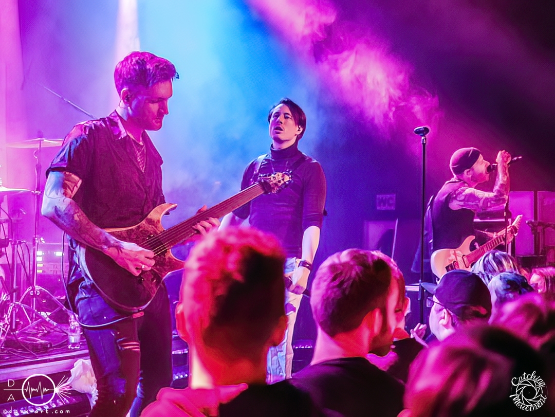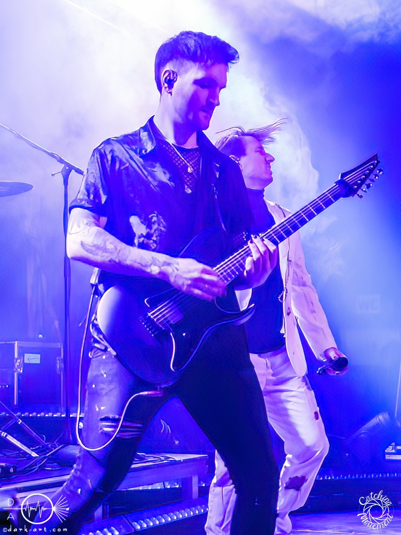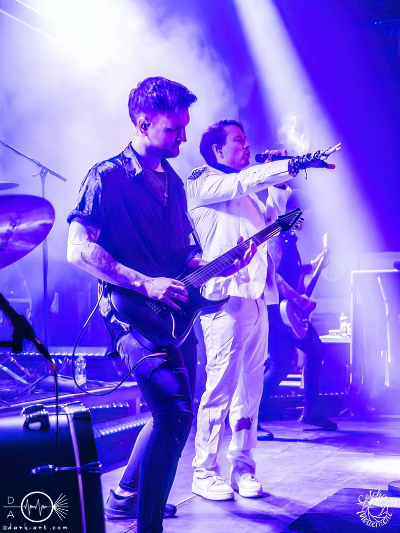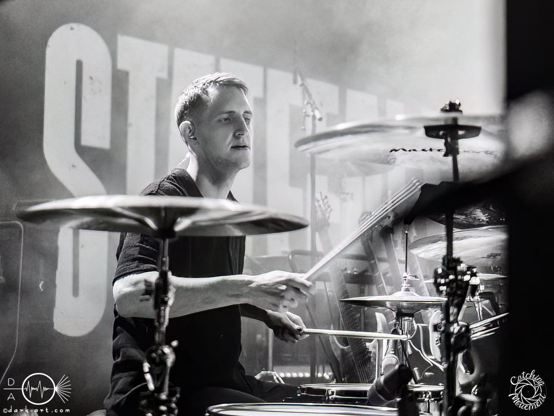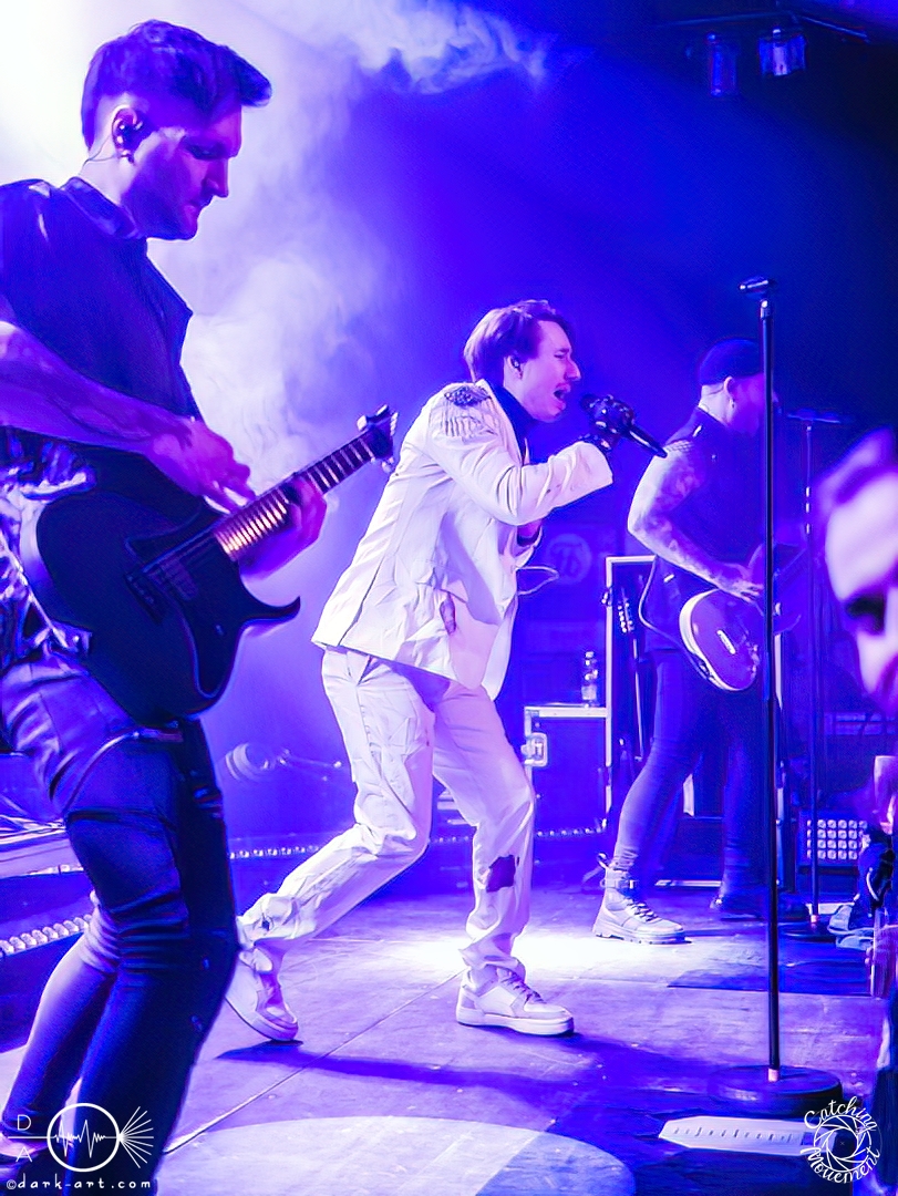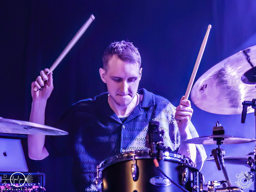 Statefall, die holländische Band aus Amsterdam, begann ihre Show mit einem Eyecatcher. Denn die ersten Gitarrentöne wurden auf komplett dunkler Bühne gespielt, Bassdrums mit Lichtimpulsen, und mit einem Scream startete die Show richtig. Bei den ersten Liedern war der Sänger in einen weißen Anzug gekleidet, das war aber auch schon das einzige Unschuldige an diesem Abend. Das mit dem Chillen, das konnte man von der ersten Minute an vergessen. Treibende Drums, schmetternde Gitarre und ein Gesang, der stark an Annisokay erinnerte, waren die Grundlage. Von Klargesang über bis in die Knie gehende, gesungene Growls des Sängers bis zu sphärischem Sprechgesang des Gitarristen war alles dabei. Das Publikum dankte es der Band aus Amsterdam mit Headbangen, mit Klatschen, der ersten verhaltenen Wall of Death und beim letzten Song sogar mit einem Circle Pit. Statefall bedankte sich bei TBS und Samurai Pizza Cats und suchte den Kontakt zu den Fans. So nutzte der Gitarrist z. B. das Filmen eines Fans, um zu posen oder suchte Blickkontakt zu einem mitgroovenden Fan, oder er tanzte einfach vor sich hin. Die Combo macht alles richtig und mit der richtigen Mischung startet der Abend gemütlich mit gutem Post-Hardcore.