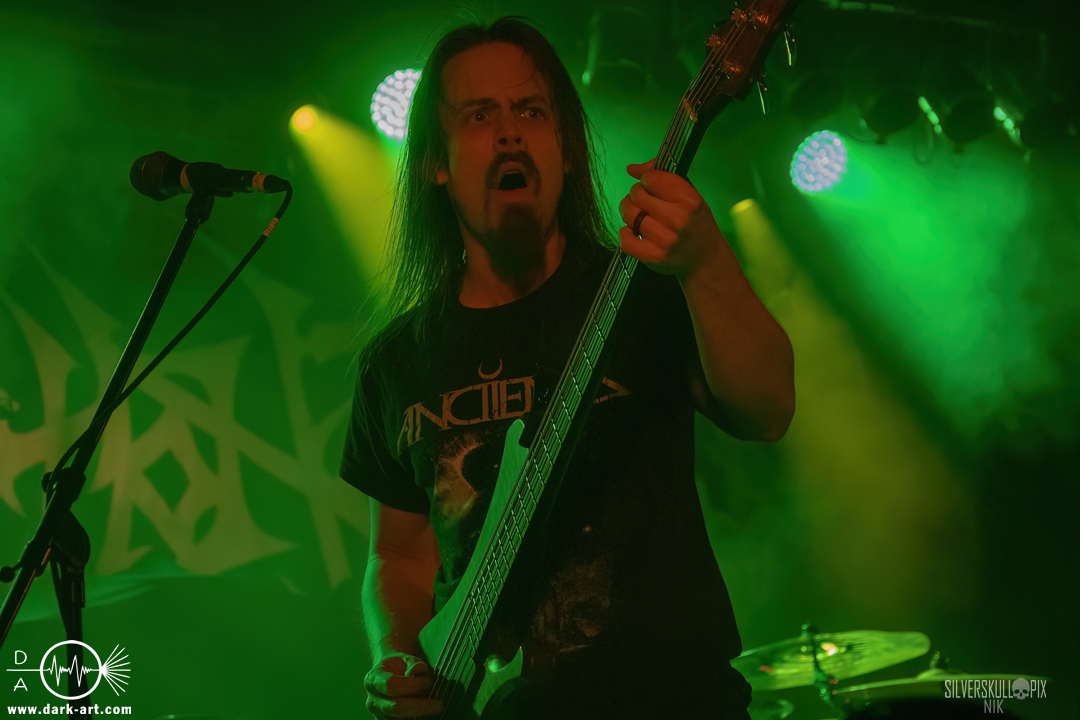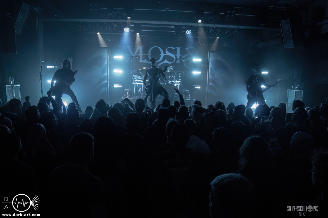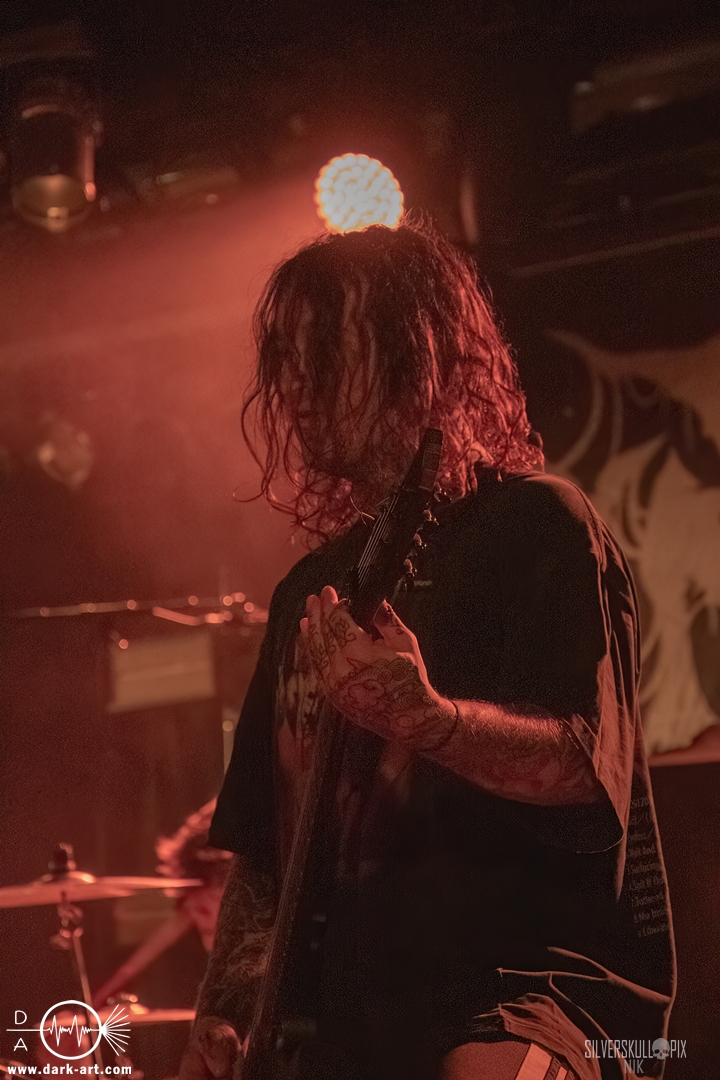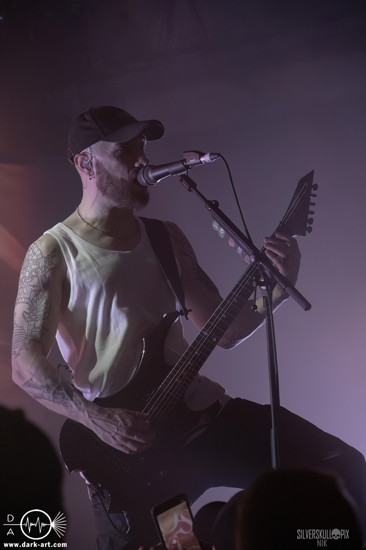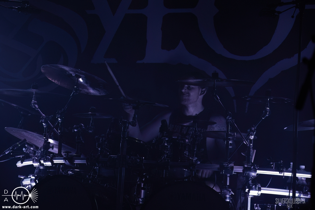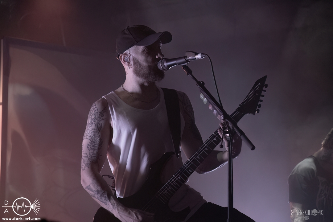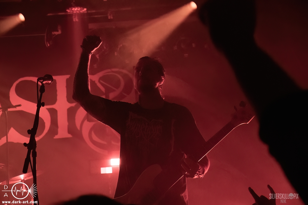 Nachdem nun I was Made for Loving You von Kiss aus den Boxen drang, war es an der Zeit für Sylosis, das Ruder zu übernehmen. Die Band um Sänger und Gitarrist Josh Middleton setzte im Bühnenbild auf einige Strahler, die mit Strobo-Effekten für eine spannende Atmosphäre sorgten. Musikalisch bewegten sie sich mehrheitlich im Melodic Death Metal, streuten allerdings auch eine Menge Groove mit ein. Natürlich hatten sie auch Erased und The New Flesh von ihrem bald erscheinenden neuen Album The New Flesh mit dabei. Da die beiden Songs das Set jeweils eröffneten, bzw. abschlossen, nahmen uns Sylosis mit auf eine Zeitreise durch ihre Diskografie. Dabei gingen sie sogar bis zu ihrem Debütalbum Conclusion of an Age zurück. Songs wie Heavy is the Crown boten jede Menge Chancen zum Mitsingen. Die Band aus Reading in UK bot insgesamt eine sehr souveräne Show, alle Beteiligten hatten jede Menge Spaß an dieser Performance.