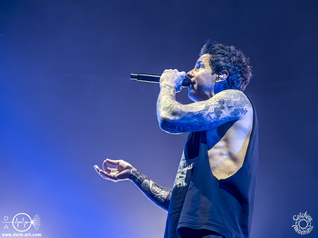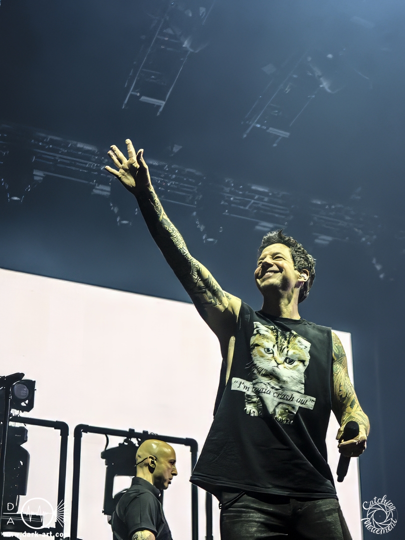 Den Auftakt gestaltete die kanadische Band Simple Plan mit einem cineastischen Einstieg: Das ikonische Star Wars-Theme ertönte, gefolgt von einem enthusiastischen „Guten Abend, Frankfurt“. Viele Besucherinnen und Besucher dürften überrascht gewesen sein, wie vertraut ihnen die Songs der Band klangen – zahlreiche Klassiker und Post-Punk-Hymnen der frühen 2000er Jahre, die einst regelmäßig im Radio liefen, fanden sich in der Setlist wieder. Diese wirkte wie ein kompaktes Hitfeuerwerk. Bereits beim ersten Song sorgten Nebelfontänen und dynamische Bühnenbewegungen für visuelle Impulse. Die Reaktion des Publikums ließ nicht lange auf sich warten: Klatschen, Mitsingen und eine spürbare Begeisterung bestimmten das Geschehen.