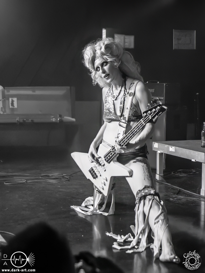 Ungefähr zur Hälfte des Konzertes zeigte dann Noemie, was sie genau mit Freiheit meinte, und auch mit Gleichberechtigung, in dem sie die Frage stellte, wieso es ok sei, dass Männer oben ohne rumlaufen dürften, sich oben ohne in sozialen Medien zeigen dürften, Frauen aber nicht. Daher forderte sie die Zuschauer auf, ihr Oberteil auszuziehen. Aber es sollten auch nur diejenigen machen, die sich damit wohl fühlten. Um zu zeigen, dass sie sich damit wohl fühlte, zog sie dann kurzerhand ihr Oberteil aus und spielte das restliche Konzert so weiter. Zu dem Lied legte Camille dann auch ihren Bass ab und ging ins Publikum, um von dort zu singen und zu zeigen, dass sie keine Berührungsängste hatte. Ein bisschen erzählten beide dann auch noch davon, wie schlimm ihre Magen/Darm Erkrankung sei und das die Verspätung daher rührte, dass sie einfach nicht von der Toilette runter gekommen sind. Genauere Details, welche sie erzählten, erspare ich euch aber. Eigentlich war auch keine Zugabe geplant, aber die anwesenden Fans forderten es so laut, dass sie spontan noch drei Lieder nachlegten, bevor dann nach 1 1/2 Stunden die Show zu Ende war. Kurz frisch gemacht, kamen dann auch beide noch mal nach vorne, um mit den Fans zu reden.