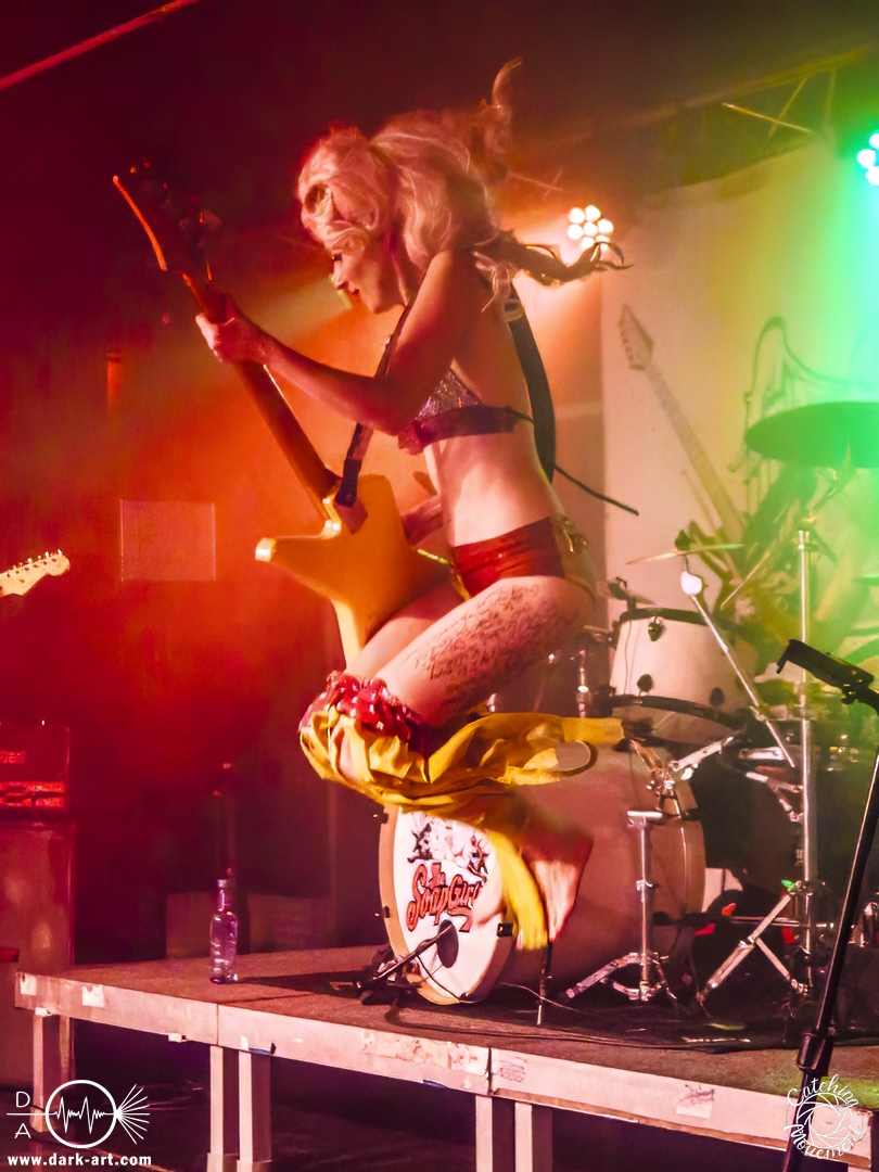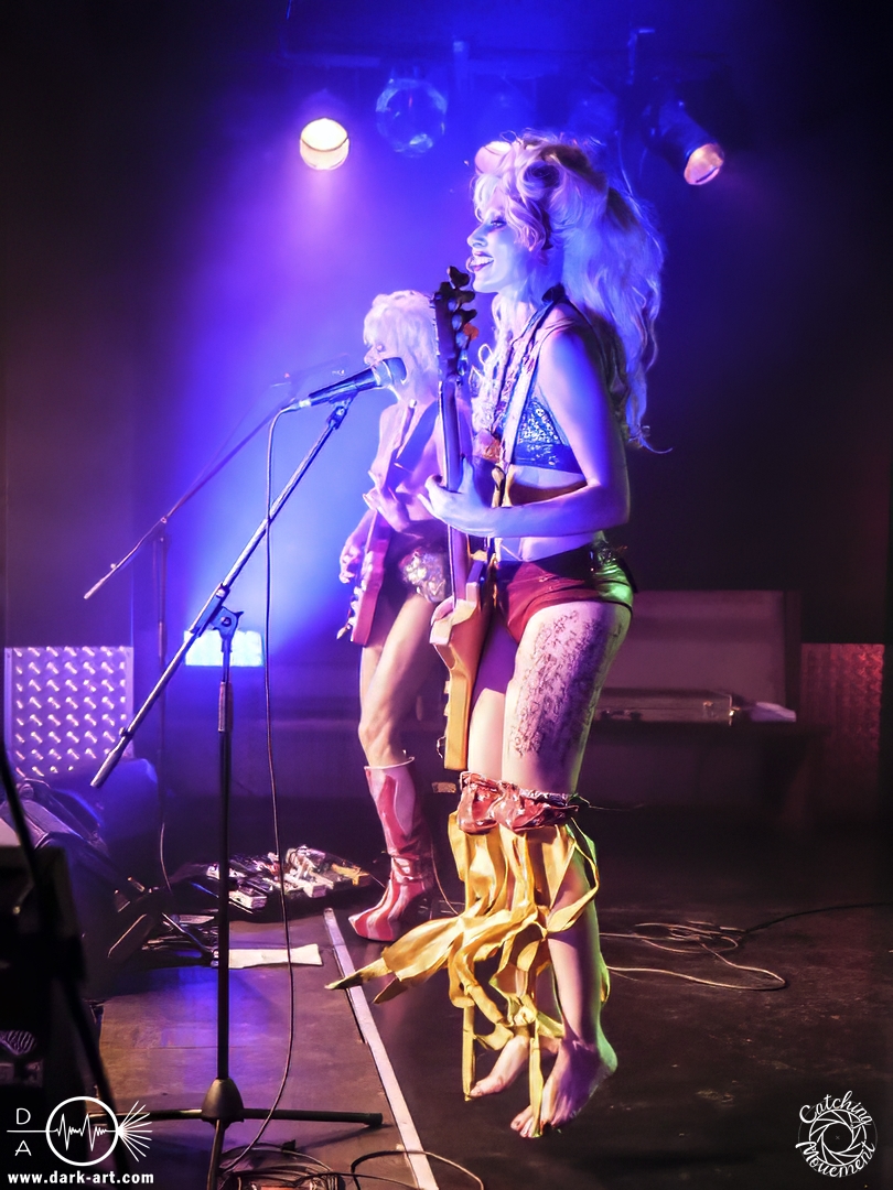 Und es hat sich gelohnt, zu warten, denn die zwei lieferten eine Show ab, die sich sehen lassen konnte. Rau, spaßig und energetisch wurde der Auftritt. Und das, obwohl sie krank waren. Wie sie selbst sagten, hatten sie den „Shit/Vomitbug“. Spaßeshalber bedankten sie sich auch, dass ihnen ein Kotzeimer auf die Bühne gestellt wurde, falls sie ihn brauchen sollten. Vorab sei gesagt, er blieb den Abend dort stehen, wo er hingestellt worden war.