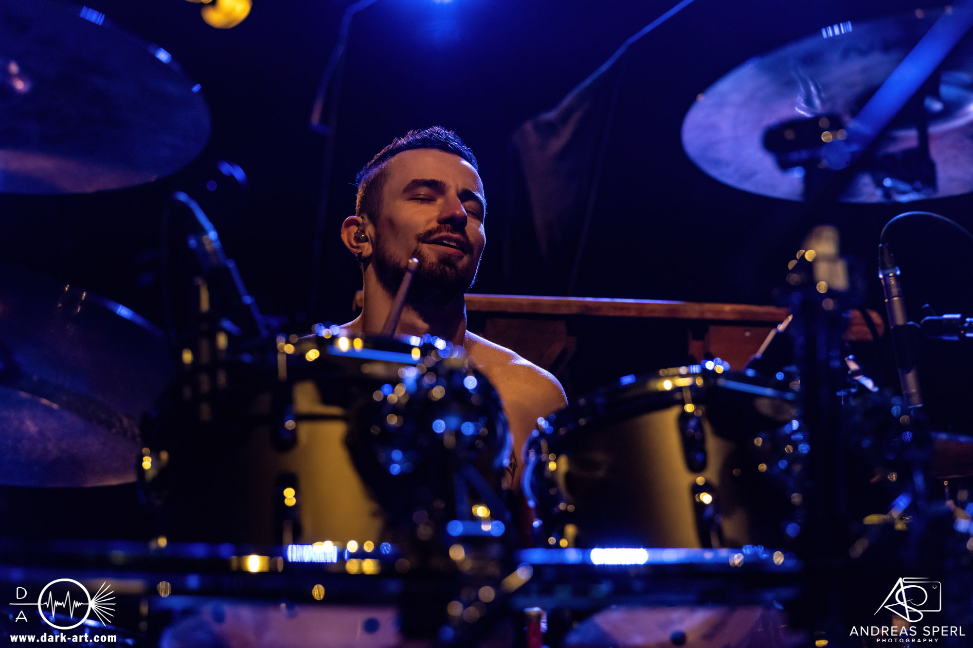 Der Auftritt hatte mit einem vor Pathos überquellenden Intro begonnen. Der Schlagzeuger Markus Felber hatte das Publikum zunächst allein mit der Bassdrum zum Mitklatschen animiert. Und dieses Klatschen, die emporgestreckten Fäuste und die geschwungenen Arme ebbten bis zum Ende des Sets auch nicht mehr ab. Als die übrigen Musiker die Bühne betreten hatten, entwickelte sich eine mitreißende Heavy-Metal-Performance. Besonders die Musiker Justus Sahlmann, Dominik Gusch und Tim Hansen, die beiden Gitarrist und der Bassist, überzeugten mit präzise einstudierten Choreografien an ihren Instrumenten, die mich bis zum Schluss begeisterten.