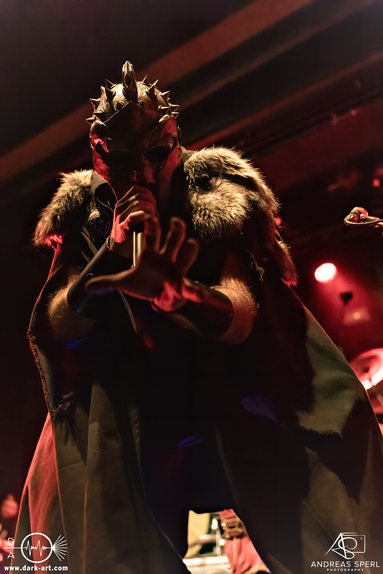 Nach diesem Spektakel durfte eine Zuschauerin beim Song Warriors eine besondere Reise antreten. Hephaistos betrat die Bühne mit einem aufgepumpten Truckerreifen samt Griffen, in den eine freiwillige Besucherin gesetzt wurde. Sie wurde bis zur Bar getragen, sollte dort ein Getränk erhalten und anschließend weiter zum Tontechniker gebracht werden. Das war eine herzerwärmende Geste gegenüber der eigenen Crew. Für diesen Song hatte Sängerin Morgana ihre Lederfetzen gegen ein schwarzes Kleid getauscht und machte damit der Frontfrau von Visions of Atlantis in Sachen Outfitwechsel beinahe Konkurrenz. Für Kings of Ragnarök erschien sie schließlich noch einmal in einem weißen Kleid.