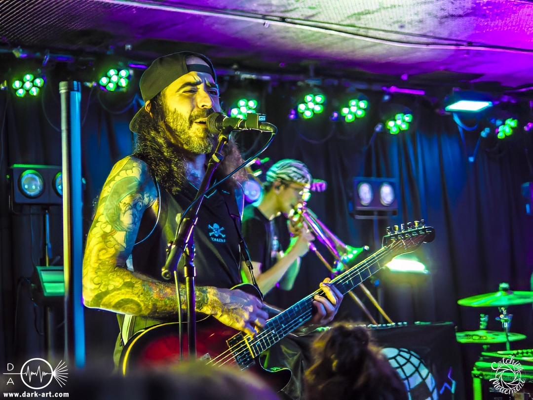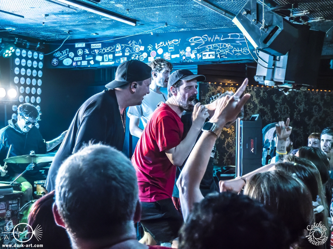 Le Fly, eigentlich keine Band, die man hier erwarten würde, machen sie doch einen perfekten Mix aus Rock, Rap, Ska und Reggae. Aber, sie machen unheimlich viel Party und Stimmung, welcher man sich nicht entziehen kann. Außerdem hatten sie in Frankfurt eine feministische Punk-Band im Vorprogram, die ich unbedingt sehen wollte, mit dem Namen MandelKokainSchnaps kurz MKS.