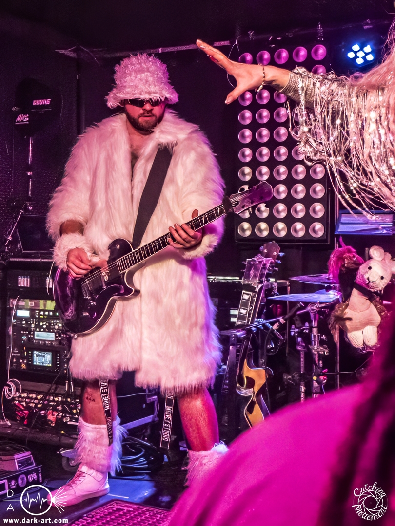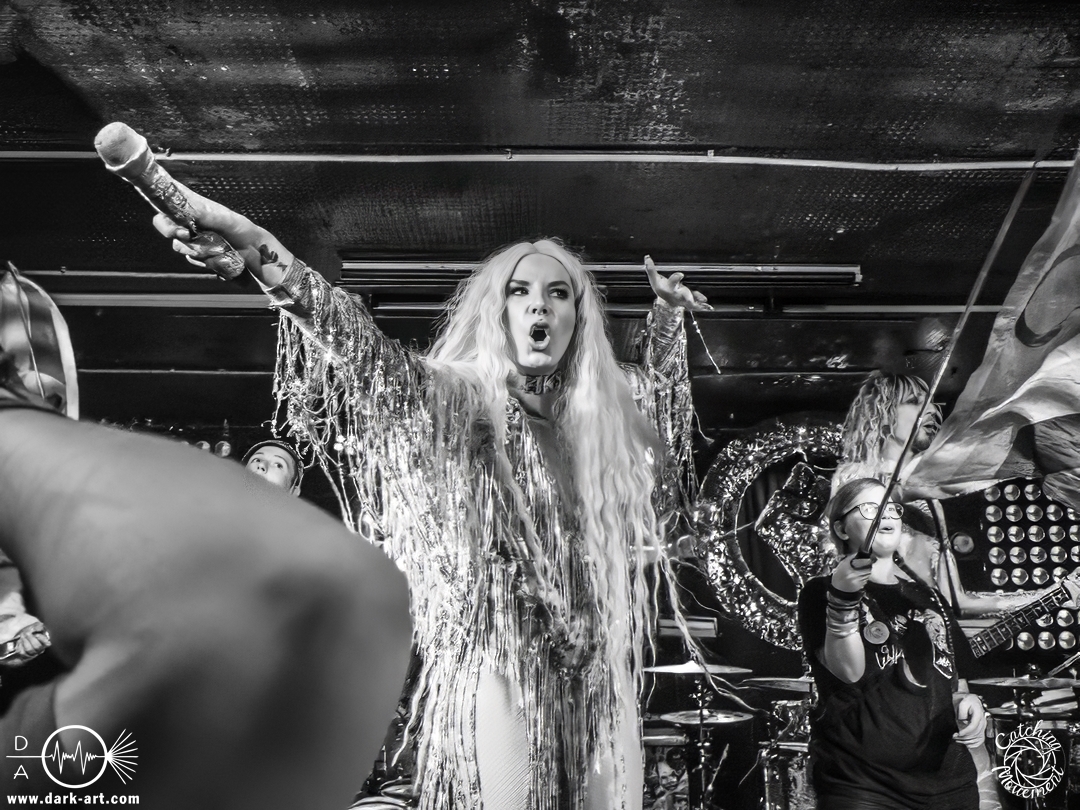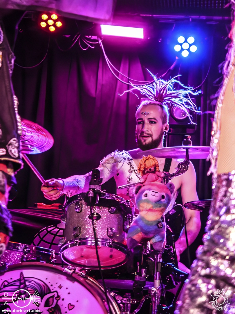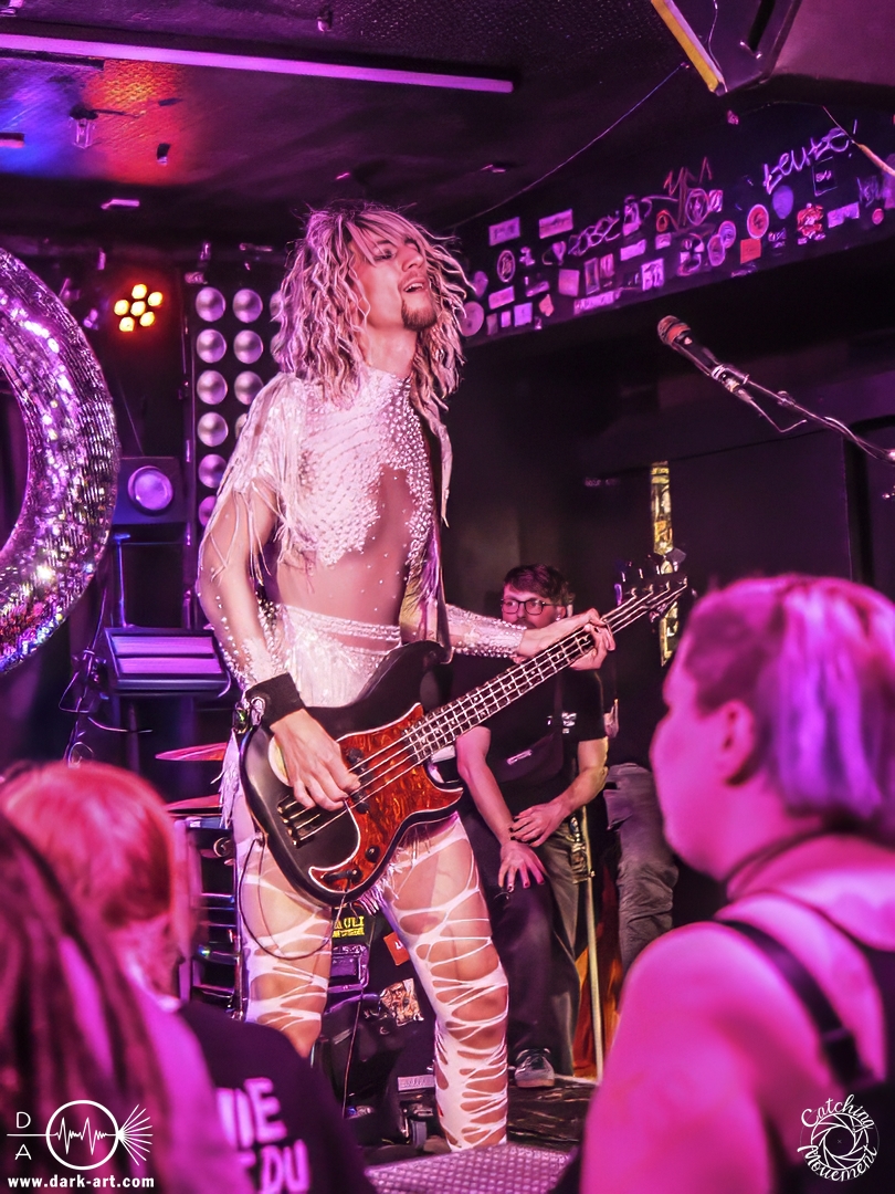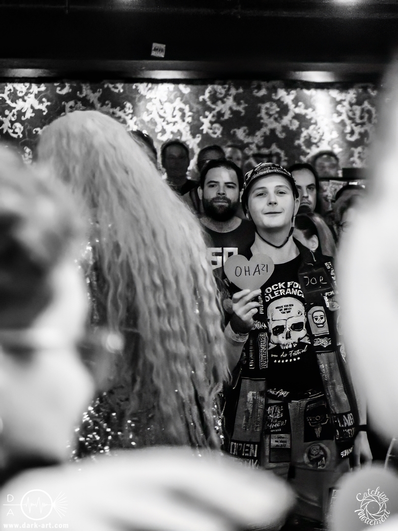 Leider gab es, dank eines erneuten Eintracht Champions League Heimspiels, mehr Verkehr als erwartet, so dass ich ungefähr die Hälfte des Auftrittes von MKS nicht gesehen habe. Aber das wenige, was ich dann begutachten konnte, hat Lust auf mehr gemacht. Schrill, bunt, witzig, aber auch mit viel Emotionen gespickt waren die paar Lieder, welche ich sehen konnte. Der bestimmt emotionalste Moment des Abends war das Lied Mama. Ein Lied, welches Wenke, die Sängerin, über ihre Mutter geschrieben hat. Dabei erzählt sie den Zuschauern sehr emotional, dass sie seit ein paar Jahren keinen Kontakt mehr zu ihrer Mutter habe, aus verschiedenen Gründen, unter anderem weil sie nie an Wenke geglaubt habe, dass sie in der Lage sein würde, das einzige, was sie je machen wollte auch wirklich zu machen. Auf der Bühne zu stehen, Musik machen zu können und damit ihren Lebensunterhalt zu verdienen. Und sie rief alle Eltern im Publikum dazu auf, doch immer an ihre Kinder zu glauben und sie immer zu unterstützen, denn das ist das wichtigste, was es gibt. Dem kann ich als Elternteil nur zustimmen. Mit Tränen in den Augen sang sie dann das Lied und steckte dabei sehr viele Emotionen rein, dass es ein wunderschöner Moment wurde. Wer dachte damit sei Schluss mit Tränen, sah sich aber getäuscht, weil für Oha – wie toll bist du denn? kamen sie und Gitarrist Max von der Bühne ins Publikum. Ein Lied, was erst Anfang Oktober veröffentlicht wurde. Und der anwesende Fanclub war vorbereitet, hatte kleine Herzen dabei, auf denen Oha stand, welche verteilt wurden, damit sie ein jeder hochhalten kann. Während dem Lied ging Wenke im Kreis und umarmte immer wieder einen der anwesenden Fans herzlich, so er oder sie es denn wünschte. Das letzte Lied Bunt wurde dann noch mal besonders bunt, mit zwei Regenbogen Fahnen auf der Bühne, welche von Mitgliedern des Fanclubs geschwenkt wurden. Ein Lied, in dem es darum geht, dass die Welt bunt ist, dass das so gut ist und wir das nie vergessen sollen. So endete der Auftritt, wie er eigentlich die ganze Zeit war, wild, bunt, schrill, aber einfach nur genial und unter großem Applaus der schon zahlreich anwesenden Zuschauer im ausverkauften Nachtleben.