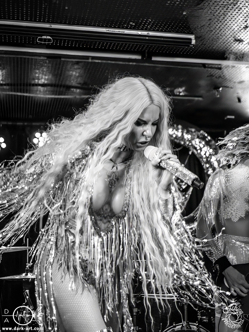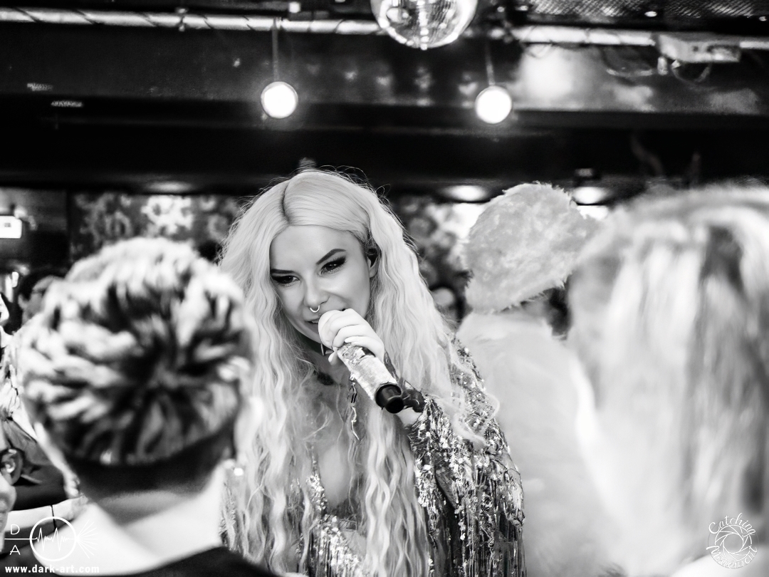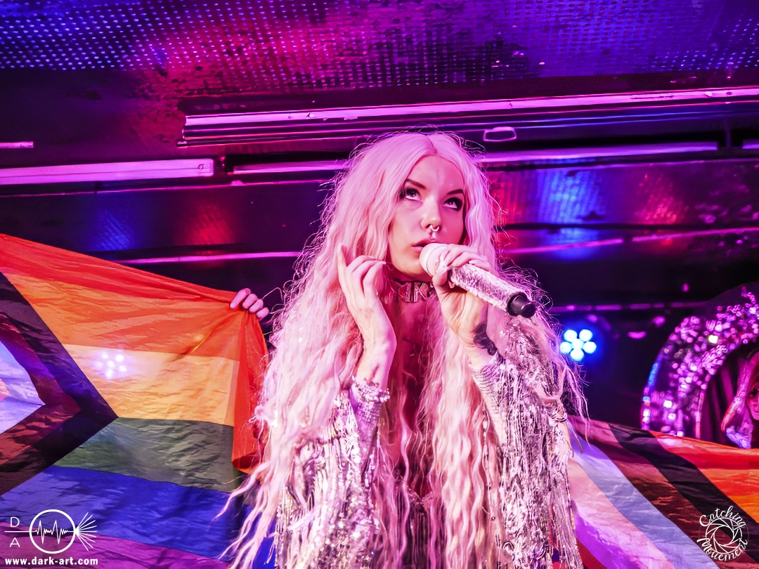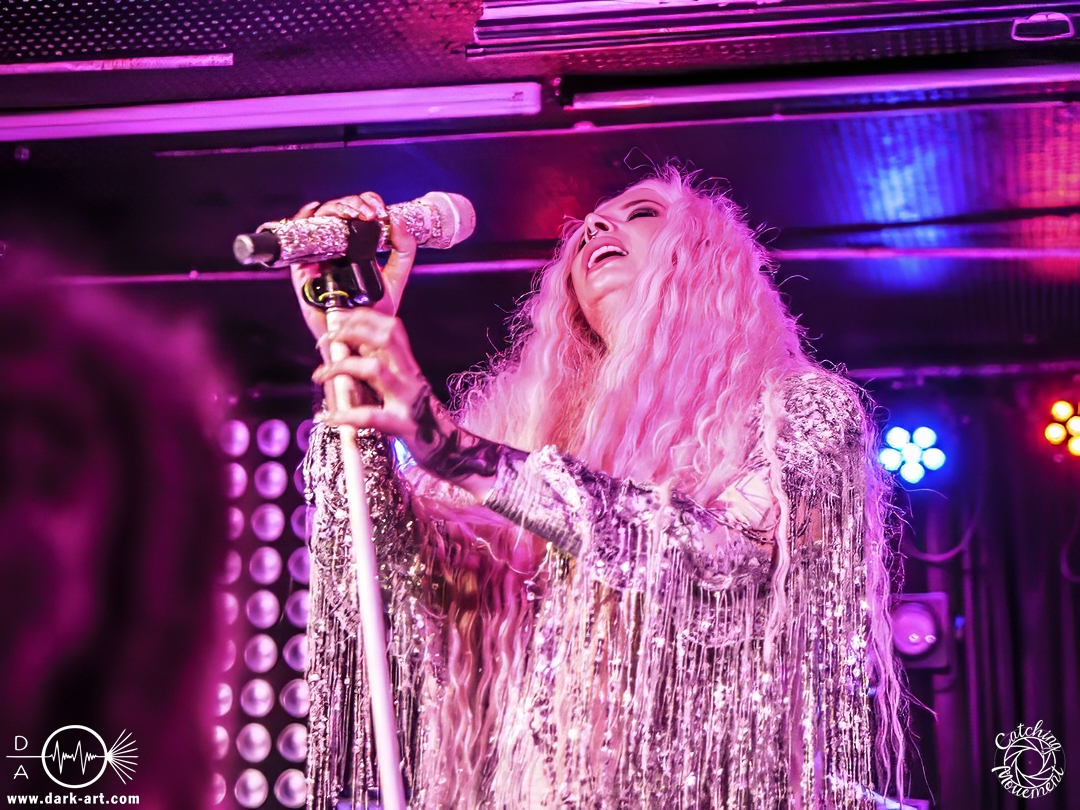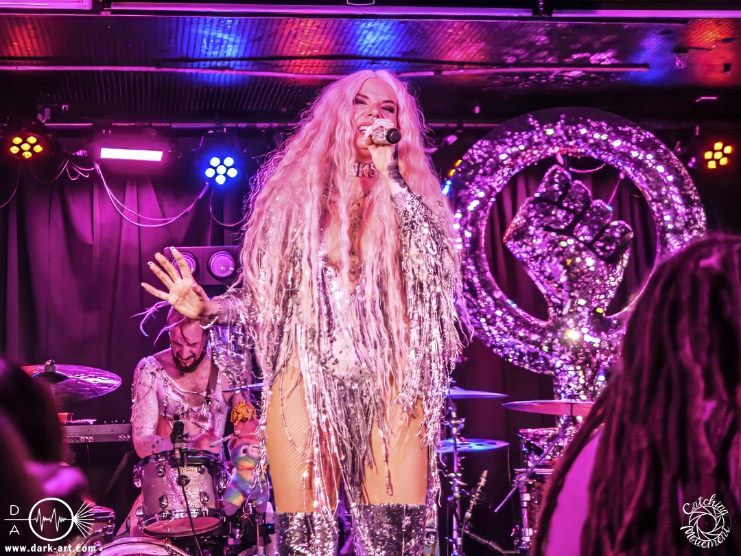 Leider gab es, dank eines erneuten Eintracht Champions League Heimspiels, mehr Verkehr als erwartet, so dass ich ungefähr die Hälfte des Auftrittes von MKS nicht gesehen habe. Aber das wenige, was ich dann begutachten konnte, hat Lust auf mehr gemacht. Schrill, bunt, witzig, aber auch mit viel Emotionen gespickt waren die paar Lieder, welche ich sehen konnte. Der bestimmt emotionalste Moment des Abends war das Lied Mama. Ein Lied, welches Wenke, die Sängerin, über ihre Mutter geschrieben hat. Dabei erzählt sie den Zuschauern sehr emotional, dass sie seit ein paar Jahren keinen Kontakt mehr zu ihrer Mutter habe, aus verschiedenen Gründen, unter anderem weil sie nie an Wenke geglaubt habe, dass sie in der Lage sein würde, das einzige, was sie je machen wollte auch wirklich zu machen. Auf der Bühne zu stehen, Musik machen zu können und damit ihren Lebensunterhalt zu verdienen. Und sie rief alle Eltern im Publikum dazu auf, doch immer an ihre Kinder zu glauben und sie immer zu unterstützen, denn das ist das wichtigste, was es gibt. Dem kann ich als Elternteil nur zustimmen. Mit Tränen in den Augen sang sie dann das Lied und steckte dabei sehr viele Emotionen rein, dass es ein wunderschöner Moment wurde. Wer dachte damit sei Schluss mit Tränen, sah sich aber getäuscht, weil für Oha – wie toll bist du denn? kamen sie und Gitarrist Max von der Bühne ins Publikum. Ein Lied, was erst Anfang Oktober veröffentlicht wurde. Und der anwesende Fanclub war vorbereitet, hatte kleine Herzen dabei, auf denen Oha stand, welche verteilt wurden, damit sie ein jeder hochhalten kann. Während dem Lied ging Wenke im Kreis und umarmte immer wieder einen der anwesenden Fans herzlich, so er oder sie es denn wünschte. Das letzte Lied Bunt wurde dann noch mal besonders bunt, mit zwei Regenbogen Fahnen auf der Bühne, welche von Mitgliedern des Fanclubs geschwenkt wurden. Ein Lied, in dem es darum geht, dass die Welt bunt ist, dass das so gut ist und wir das nie vergessen sollen. So endete der Auftritt, wie er eigentlich die ganze Zeit war, wild, bunt, schrill, aber einfach nur genial und unter großem Applaus der schon zahlreich anwesenden Zuschauer im ausverkauften Nachtleben.