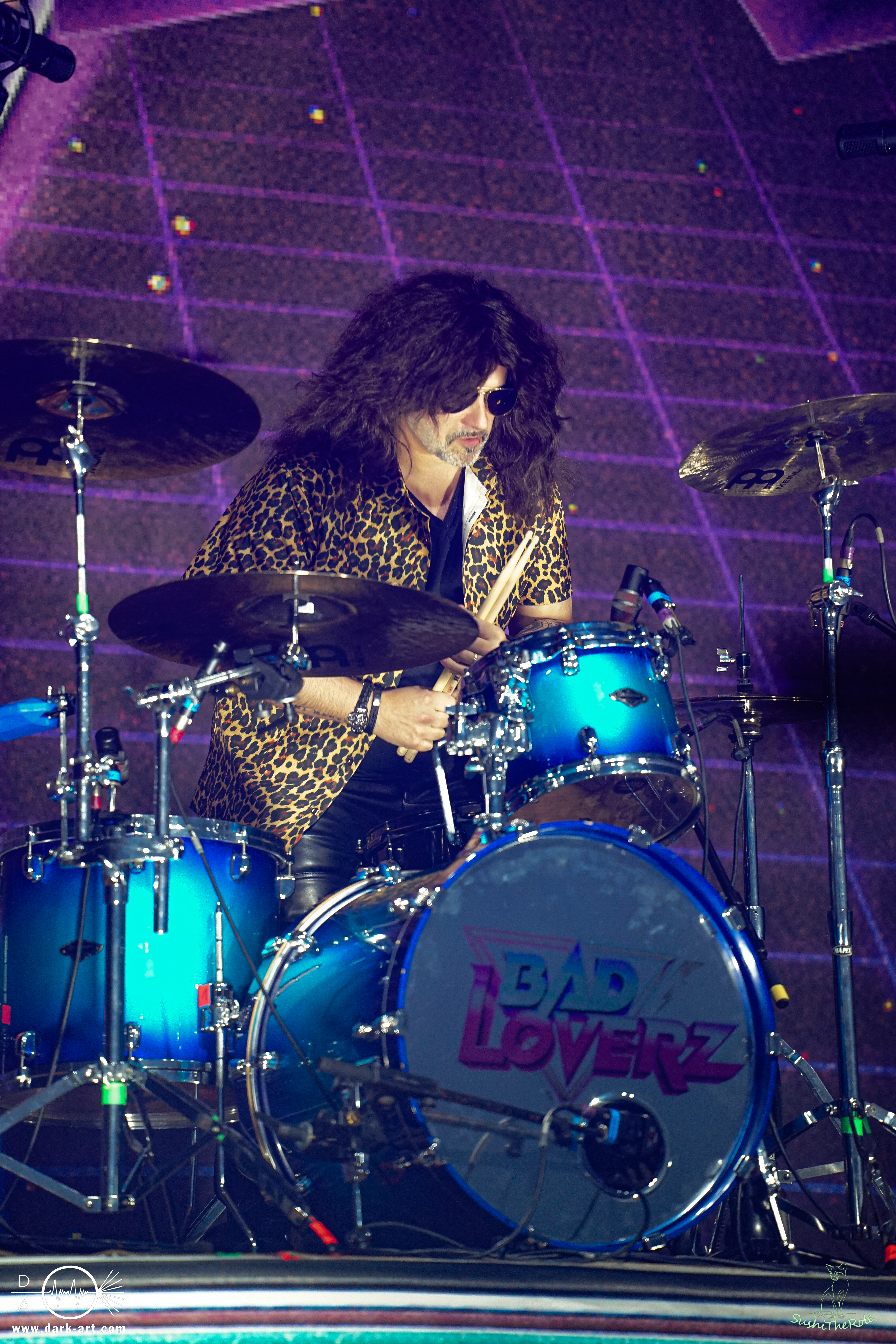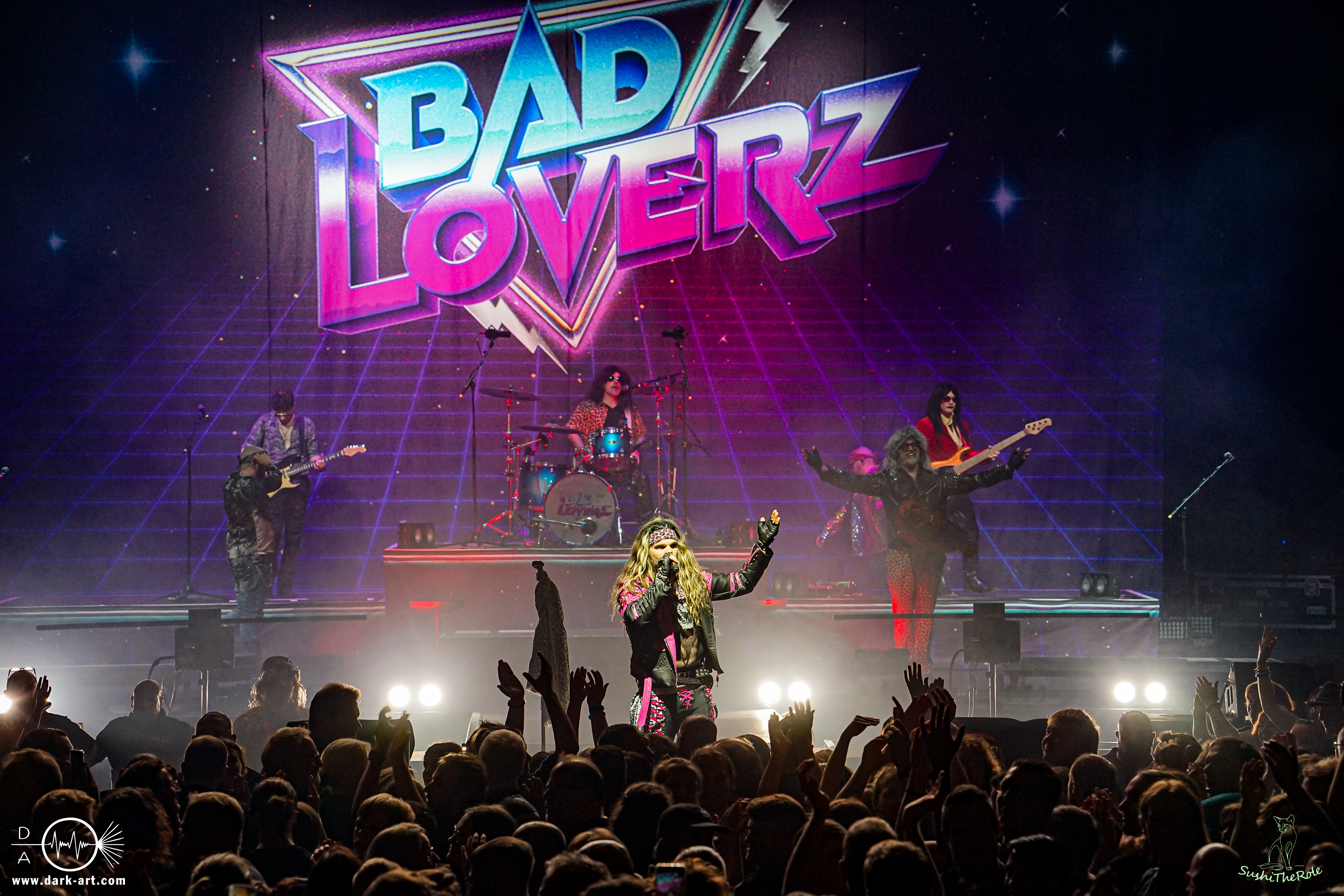 Natürlich wussten viele im Publikum, was hinter der Fassade steckt: Bad Loverz sind die Mitglieder von Saltatio Mortis, die für dieses Projekt komplett in neue Rollen schlüpfen. Mit Kunstnamen, überzeichneten Glam-Rock-Persönlichkeiten und einer gehörigen Portion Selbstironie lassen sie ihre bekannten Mittelalter-Rock-Charaktere für einen Abend hinter sich. Genau diese Mischung aus Wiedererkennungswert und Übertreibung macht den Reiz aus – sichtbar wird, wie viel Spaß die Musiker daran haben, sich als glitzernde 80er-Rockstars auszuleben. So entsteht eine faszinierende Dynamik: vertraute Gesichter, aber eine völlig andere, bewusst überzeichnete Show.
