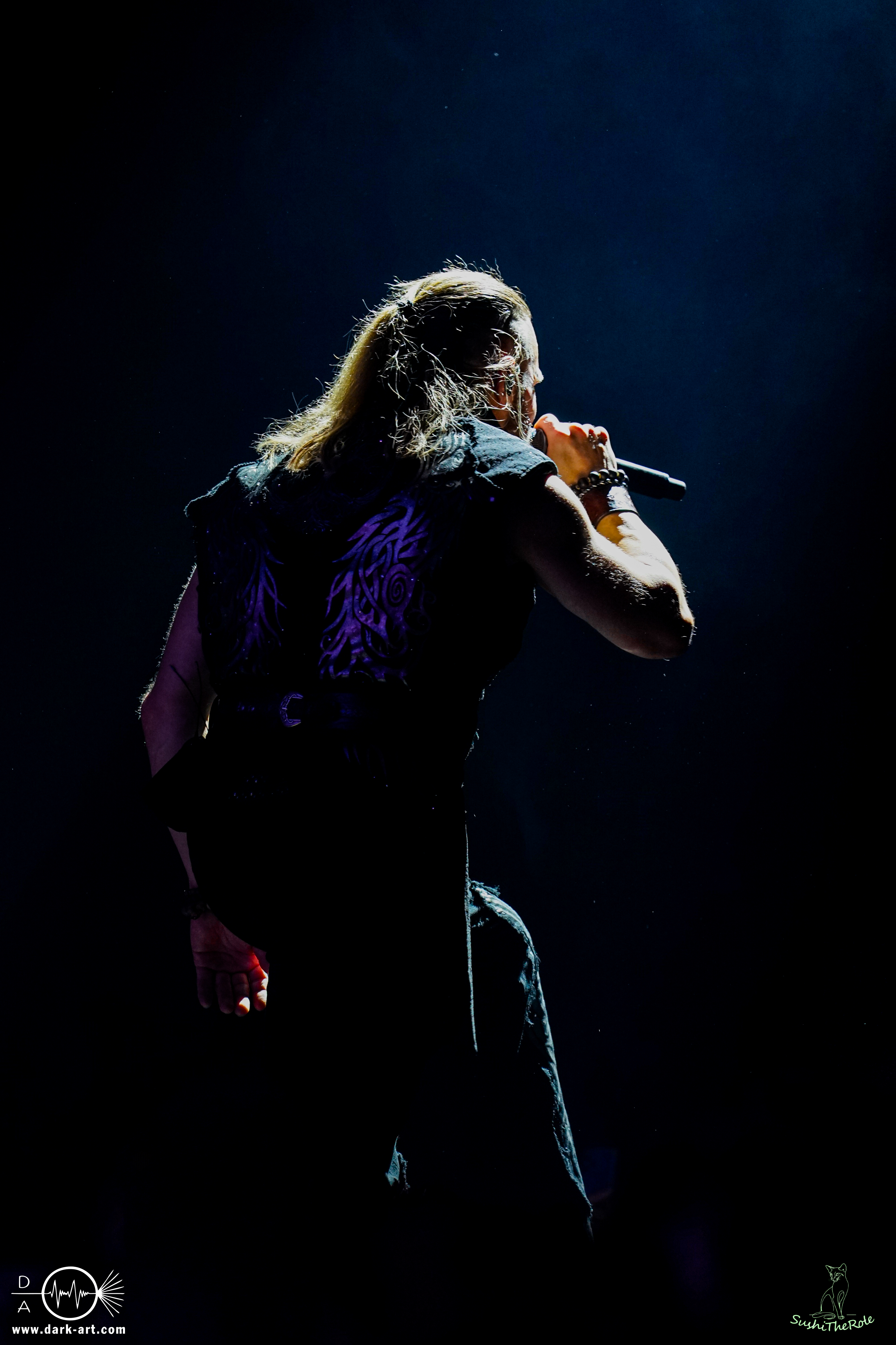 Die Pyrotechnik trug entscheidend zur epischen Stimmung bei: Flammenfontänen, Feuerbälle und gezielt eingesetzte Feuerstreifen setzten Höhepunkte bei den schnelleren Songs und unterstrichen die dramatischen Momente der Balladen. Besonders bei den Refrains großer Hymnen explodierten die Flammen synchron zur Musik und ließen die Halle buchstäblich in Brand geraten. Ein visuelles Spektakel, das die Energie der Band perfekt einfing und die Begeisterung des Publikums noch einmal steigerte. Zusammen mit Licht, Nebel und den mittelalterlichen Requisiten entstand so ein Gesamterlebnis, das alle Sinne ansprach.