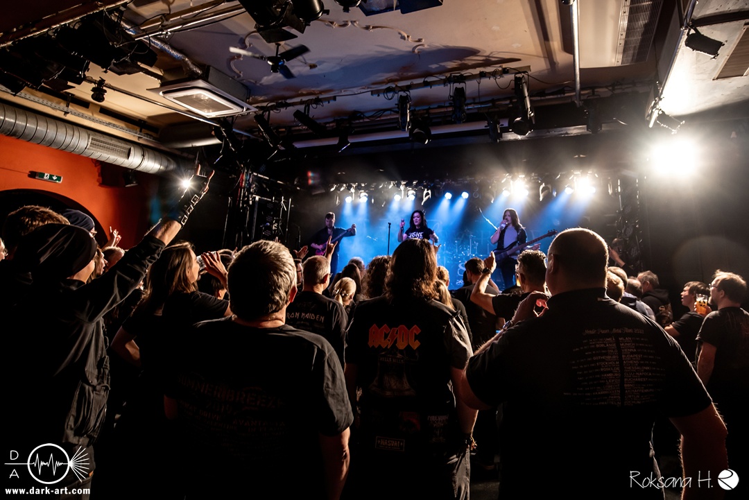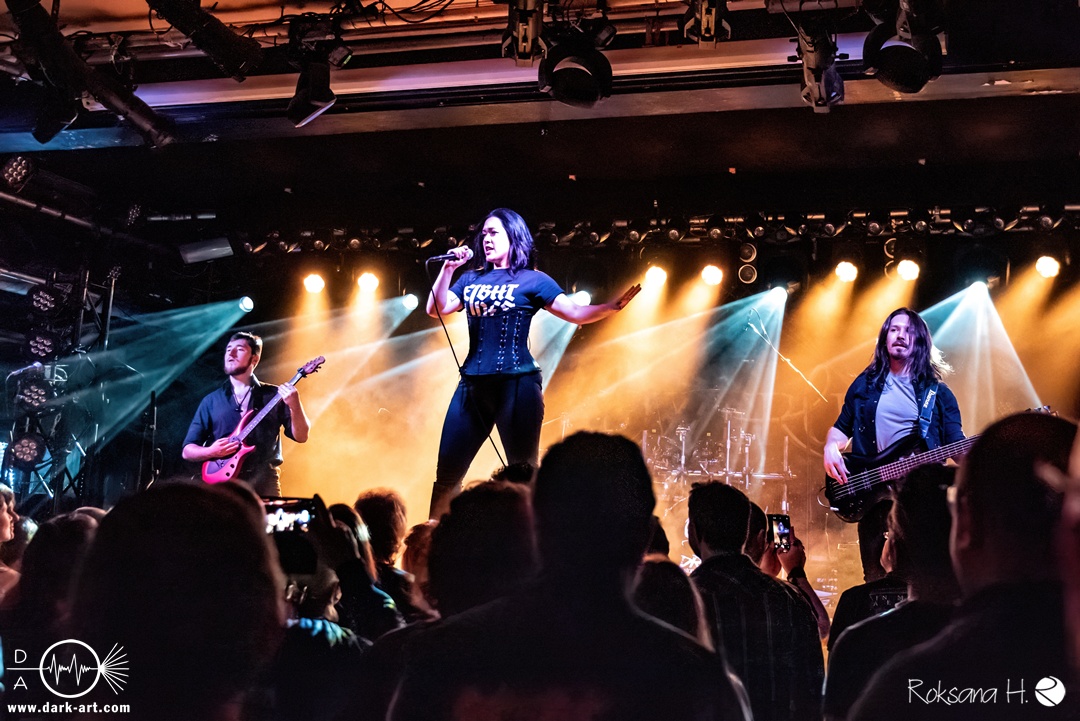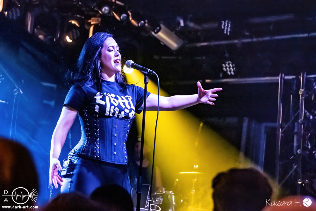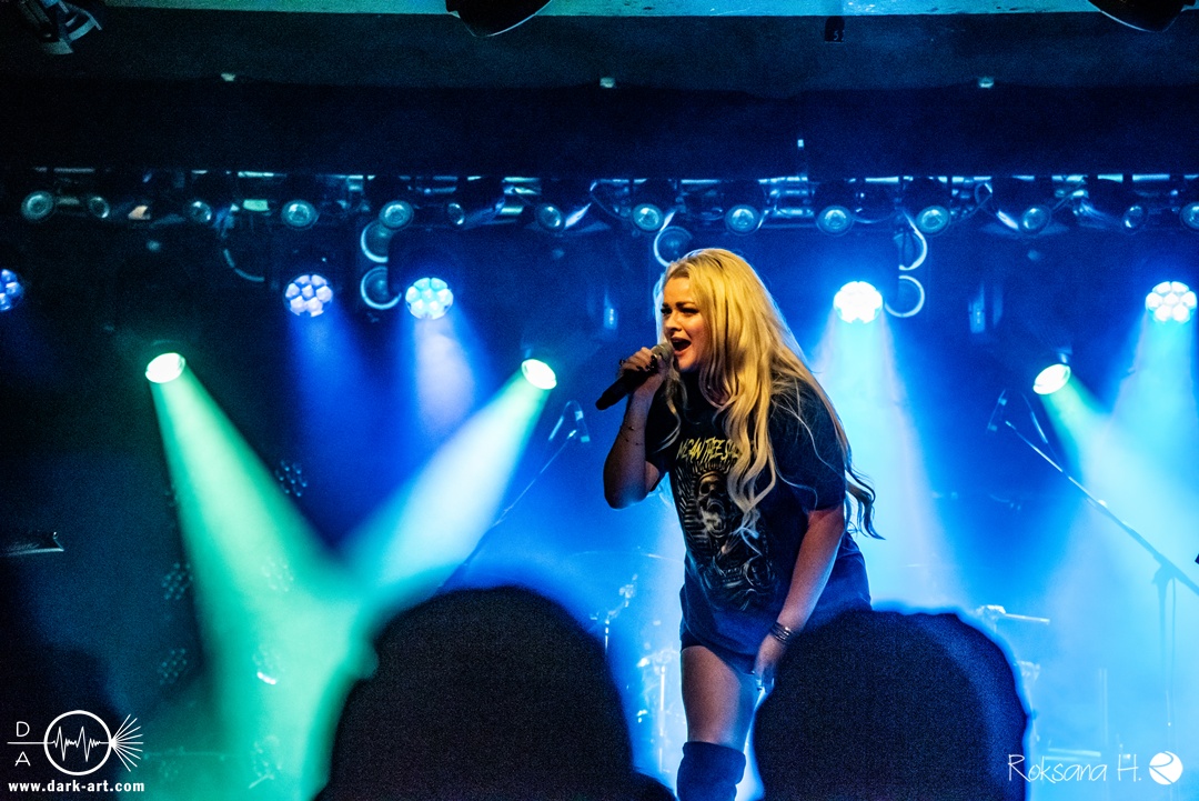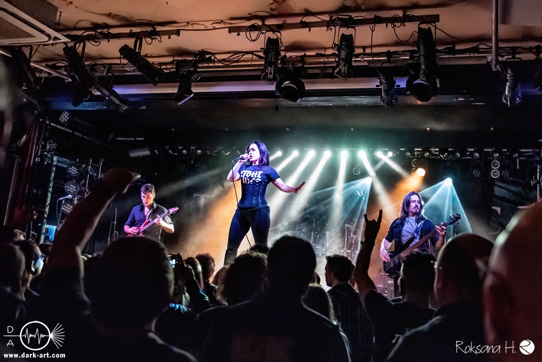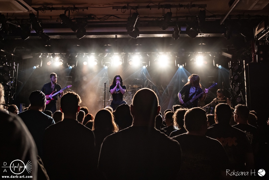 Nach einer halben Stunde ging es dann mit der Musik los. Die Band um Sängerin Vivs und Bassist Marcelo, beide aus Brasilien, ist seit einigen Jahren in Deutschland ansässig. Gleich zu Beginn gab es eine Überraschung, denn das Quartett legte direkt mit dem neuen Song Sandman los. Nicht nur Sängerin Vivs, sondern auch die Saitenfraktion war auf der Bühne sehr präsent. Untermalt wurde die Performance durch eine gute Lichtshow. Im Laufe der kurzen Spielzeit von 30 Minuten spielten sie insgesamt 5 Songs, davon neben dem schon erwähnten neuen Song je zwei Stücke von der EP Dreamerie und dem Debütalbum Stronger. Dabei wechselten sich ruhigere Passagen gekonnt mit brutaleren, gegrowlten Stellen ab. Und das Publikum nahm das alles wohlwollend an und machte durchaus begeistert mit.