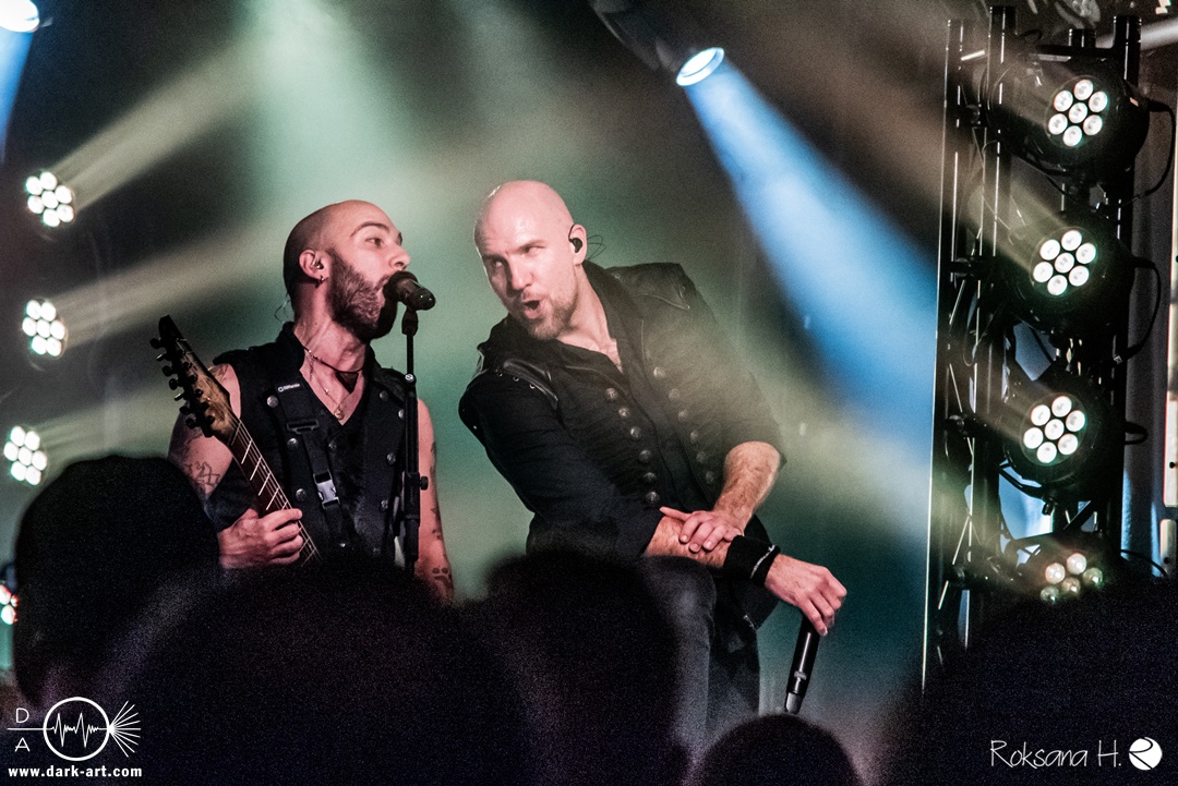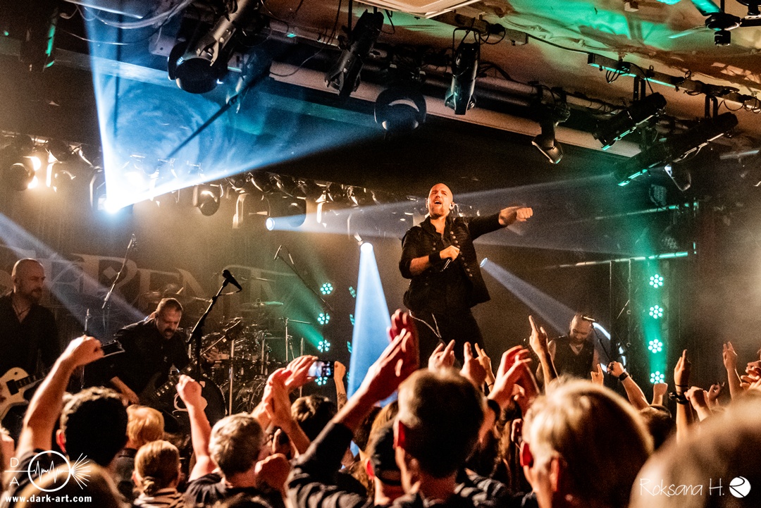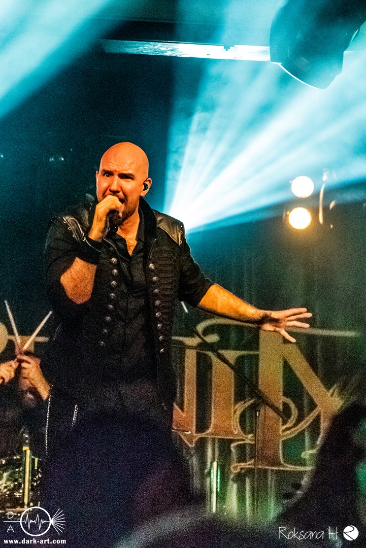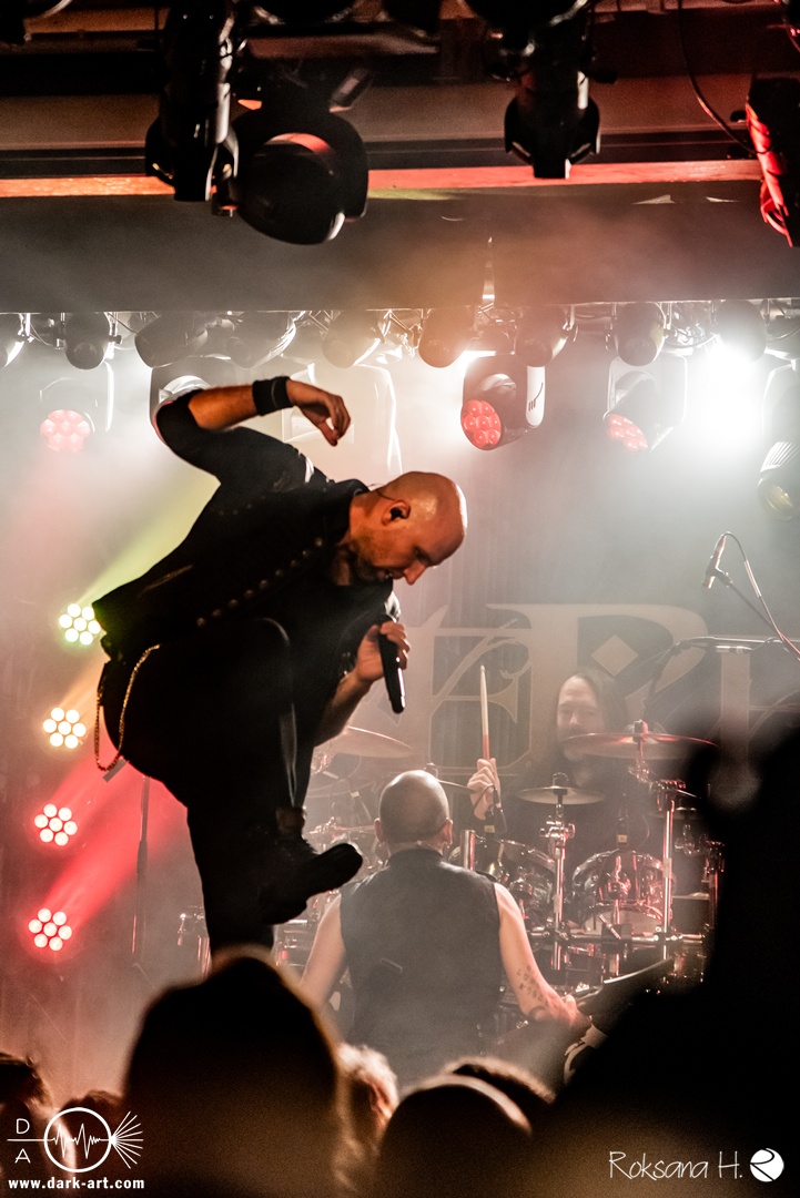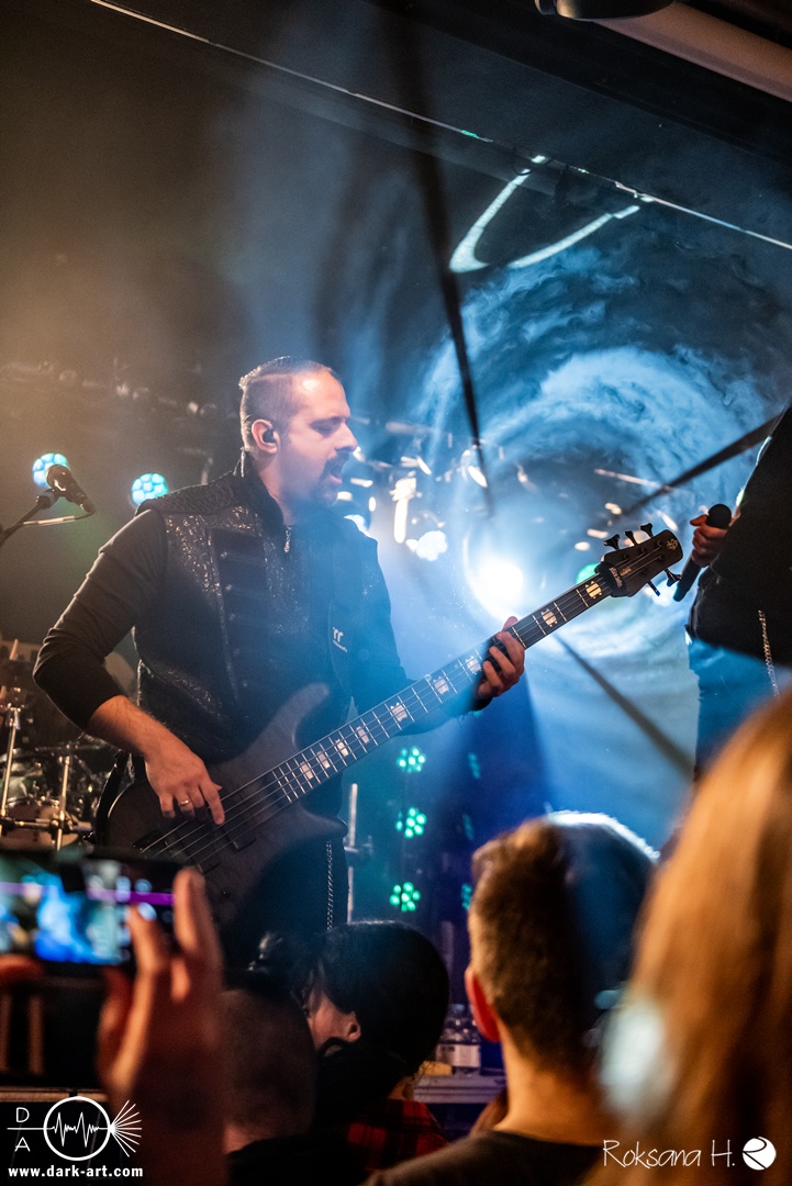 Weiter mit einer Band, die nicht ganz so weit herkommt: Temperance. Die italienische Band um Michele Guaitoli ist eine naheliegende Ergänzung der Tour, da Gitarrist Marco auch bei Serenity ist. Die Band hatte im Oktober 2023 ihr siebtes Album Heritage – Datuma’s Eyes Pt. 2 Veröffentlicht und auch gleich ein paar der Songs fit für die Bühne gemacht. Nach den ersten Stücken bedankte sich die Band bei der Crowd: Sie sei das beste Publikum auf der Tour – und das an einem Dienstagabend! Die Band gab Vollgas mit allen 3 Stimmen, Auch wenn Michele die Show stark trug, legte Sängerin Kristin ordentlich nach. Und das Publikum? Textsicher sang es die alten und neuen Stücke mit! Klare Highlights waren Diamanti, ein Song, bei dem die Band den Refrain in ihrer Muttersprache sang, sowie natürlich Pure Life unfolds, ein Lied, das an Kraft und Pathos lebt und großartig beim Publikum ankam.