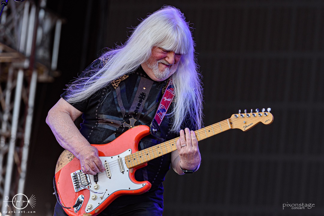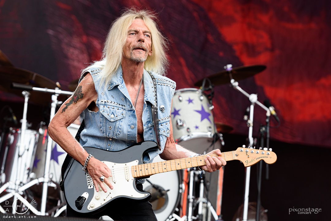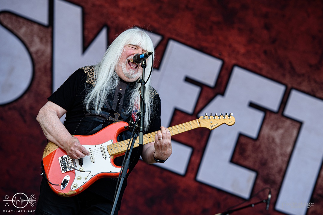 Eine besonders süße Portion Rock ’n‘ Roll lieferten The Sweet pünktlich zur Mittagszeit. Enthalten waren viele Klassiker der Band, welche dem Publikum sichtlich Spaß bereiteten. Es herrschte Tanzstimmung ab der ersten Minute. Sänger Paul Manzi konnte durch seine treffsichere Stimme, auch mit besonders hohen Tönen begeistern. Andy Scott trug, mit seiner typischen Pony-Frisur, an der E-Gitarre und am Gesang sein Übriges zur puren Nostalgie des Auftritts bei. Insgesamt schien die Band auf der Bühne sehr viel Spaß zu haben. Die Zuschauenden ließen sich von der guten Stimmung direkt anstecken und verfielen in freudiges Tanzen, Mitklatschen und Schunkeln. Bei Love Is Like Oxygen wurde selbstverständlich auch ordentlich mitgesungen. Die absolute Stimmungsexplosion gab es dann aber zu Ballroom Blitz, dem letzten Song des Auftritts. Durch die mehrfache Wiederholung der Textzeile:“It’s it’s a ballroom blitz“, heizte die Band das Publikum noch einmal so richtig an. Was war das bitte für ein fantastischer und nostalgisch aufgeladener Auftritt?