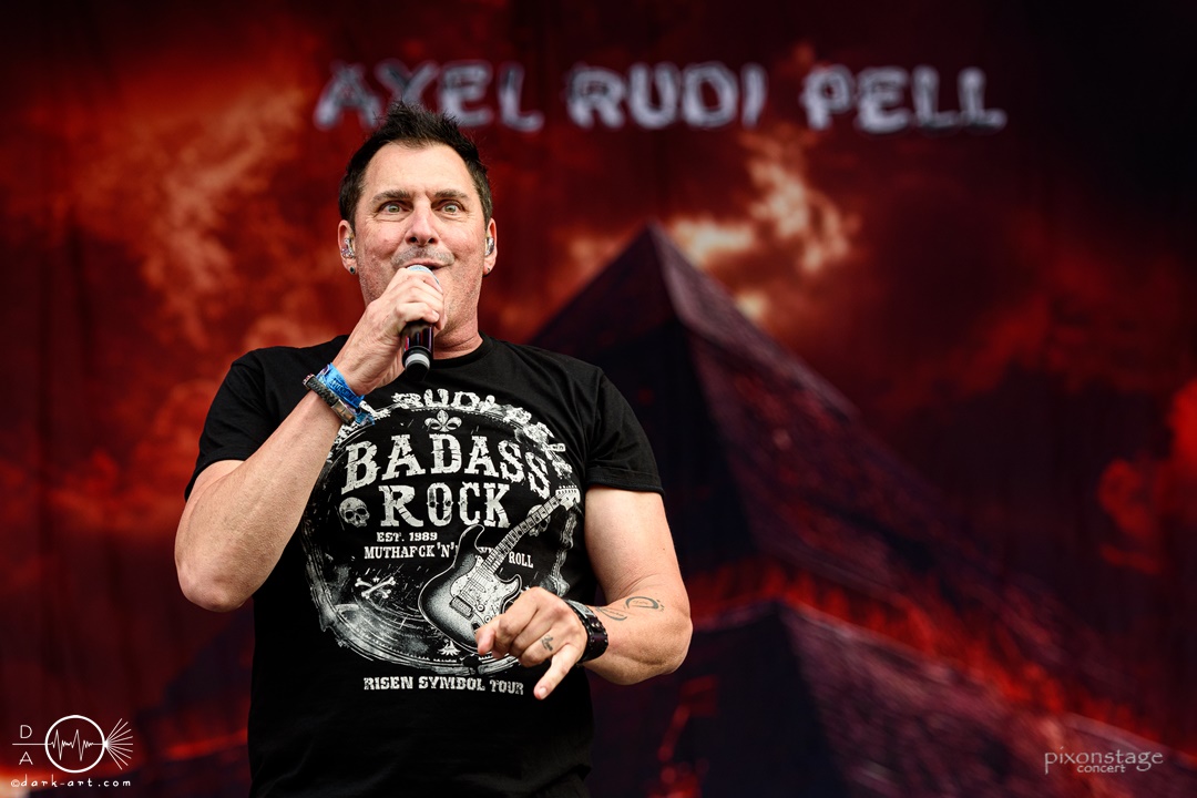 Es zog ein akustisches Gewitter auf der „Faster“-Stage auf und eine diabolische Stimme begann den Countdown herunterzuzählen, welcher den Auftritt von Axel Rudi Pell und seiner Band ankündigte. Nach diesem fesselnden Intro betraten die Musiker die Bühne und begannen eine Mischung aus feinstem Oldschool Heavy Metal und Hard Rock darzubieten. Die Performance war geprägt durch viele melodische Gitarrenriffs, mitreißende Drums und einem starken klaren Gesang. Frontmann Axel Rudi Pell setzte hier und da noch ein paar Showelemente, durch seine sehr ausgeprägte Mimik und Gestik, hinzu. Insgesamt schien die Band sehr glücklich darüber zu sein, seit 2016 wieder einmal auf dem Wacken Open Air auftreten zu dürfen. Das machte sich auch in der grundlegend positiven Stimmung auf der Bühne bemerkbar. Die Musiker hatten wirklich Bock und der Sänger schaffte es dem Publikum mit seiner Stimme zu imponieren.