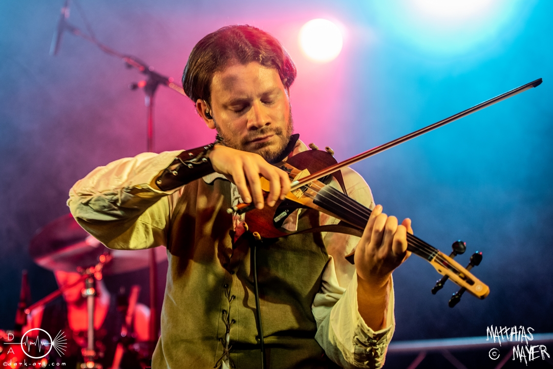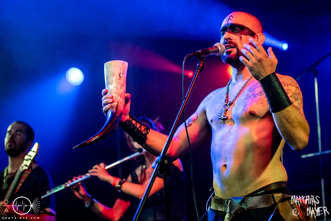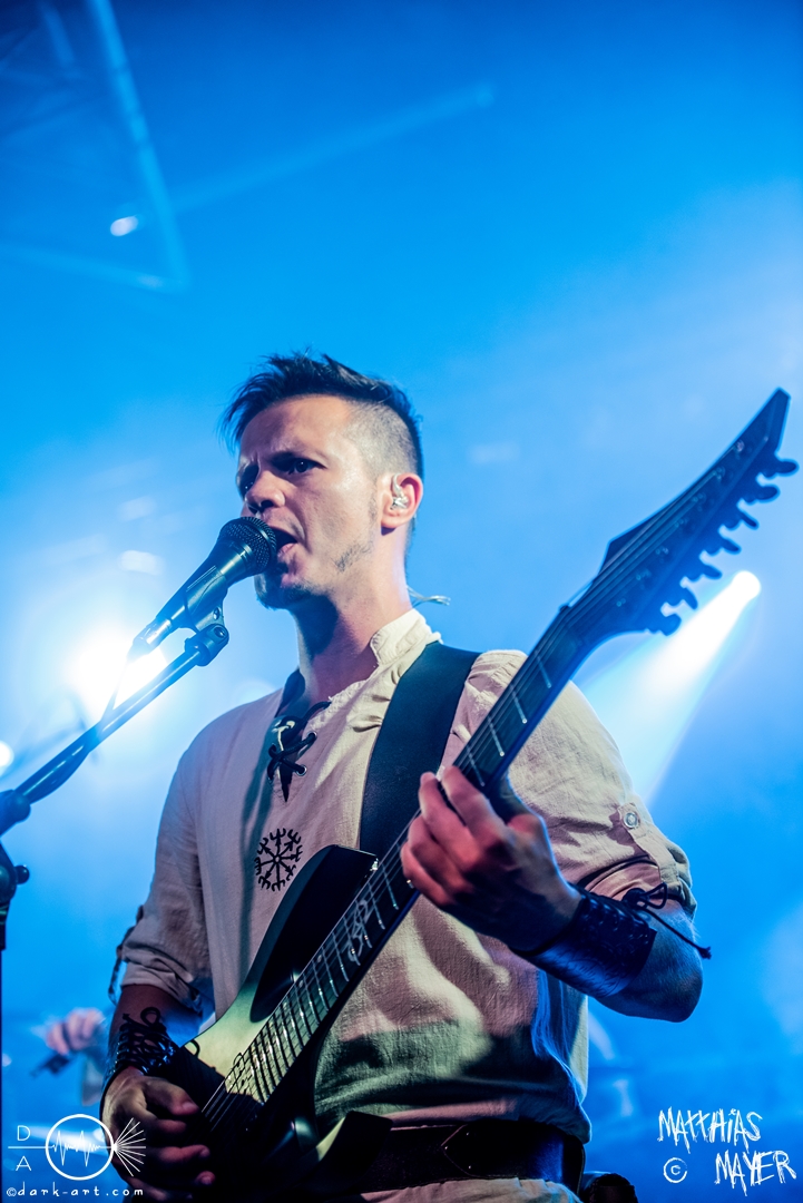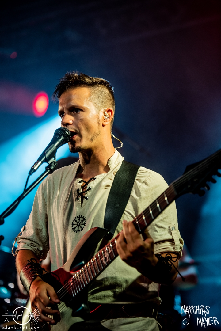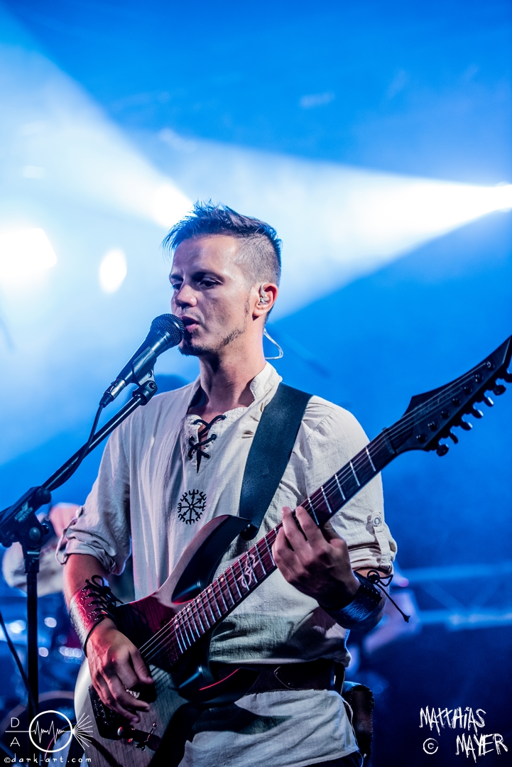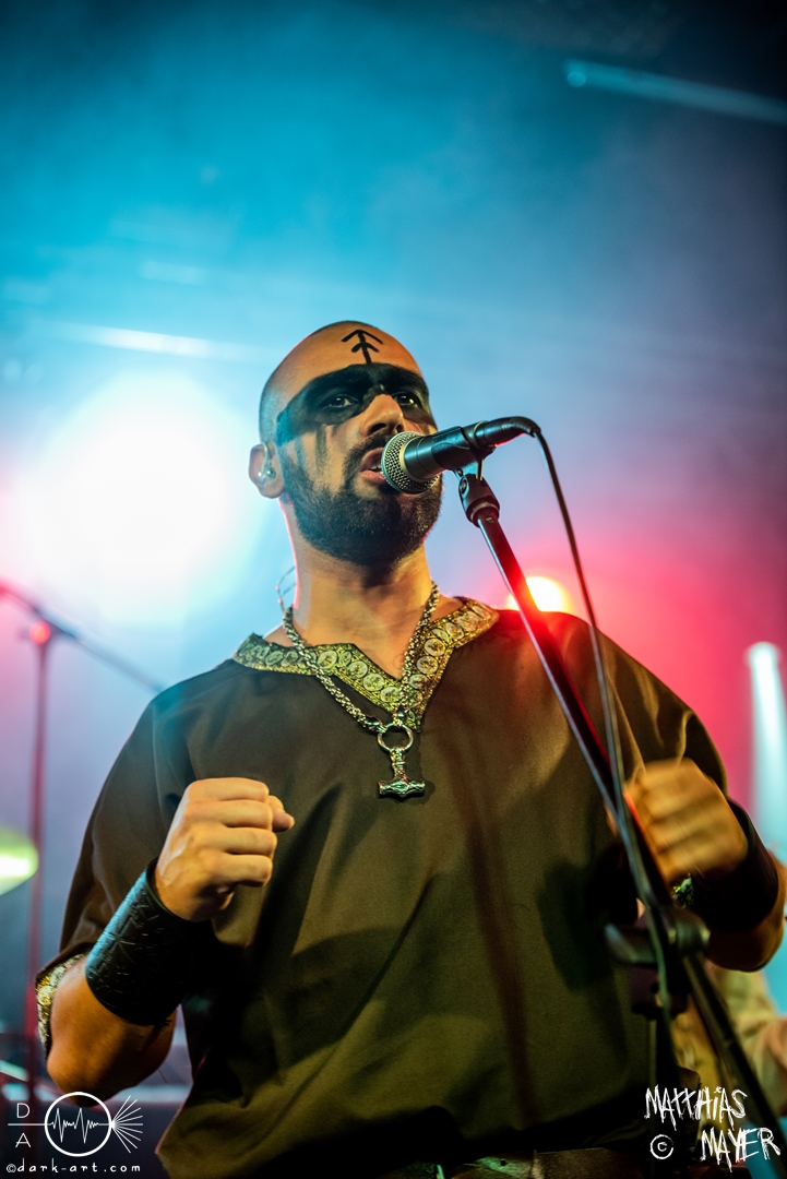 Dann betraten die acht Jungs und Mädels von Aexylium die Bühne. Musikalisch präsentieren sie sich sehr viel schneller als die vorherige Band und beweisen, dass sie in der Lage sind richtig Stimmung zu machen. Von Partynummern wie Skal, epischen Geschichten wie Into the Jaws of Fenrir sowie ruhgien instrumentalen Stücken ist alles dabei, was das Folk Metal Herz erfreut. Wer sich im Nachhinein die CDs angehört hat wird dabei gemerkt haben, dass die weiblichen Vocals weggefallen sind, eine Version der Songs, die ebenfalls sehr gut ankommt. Besonders Sänger Steven unterhielt das Publikum hervorragend.