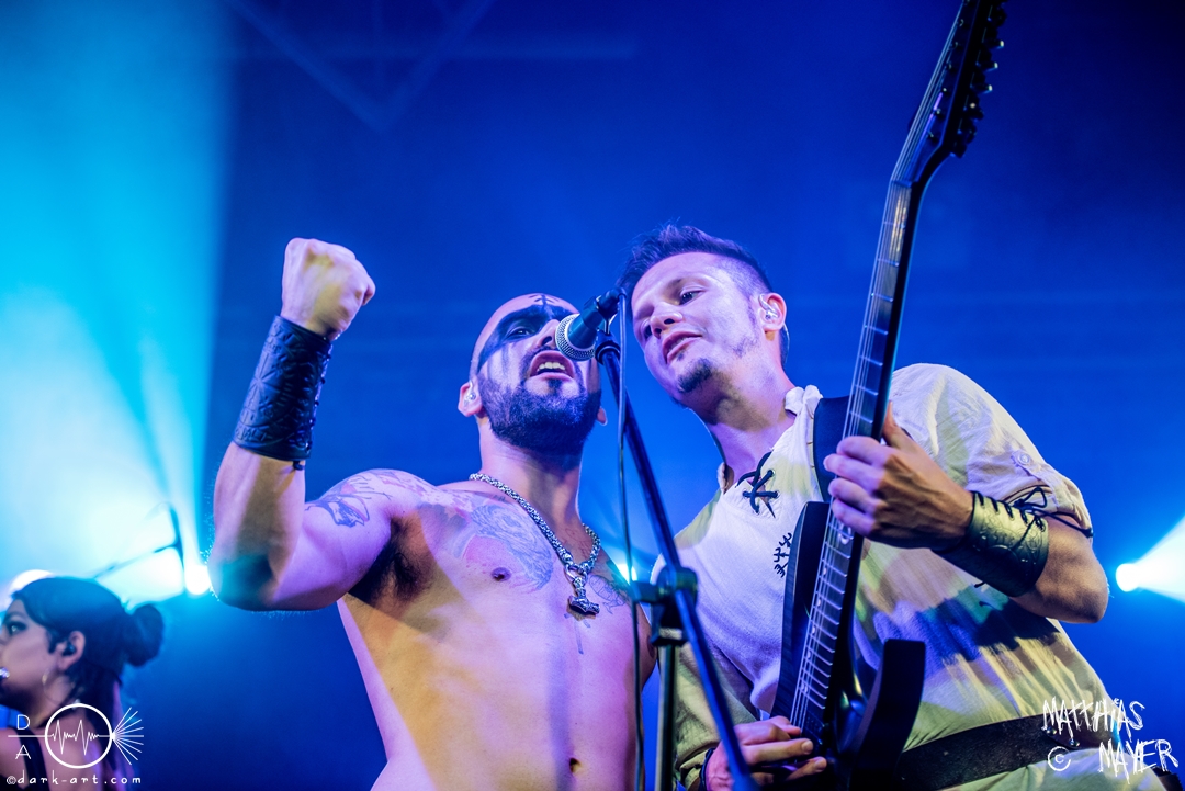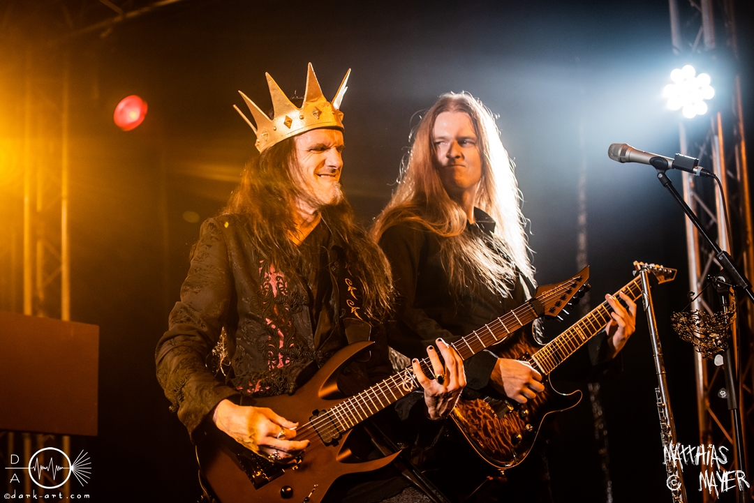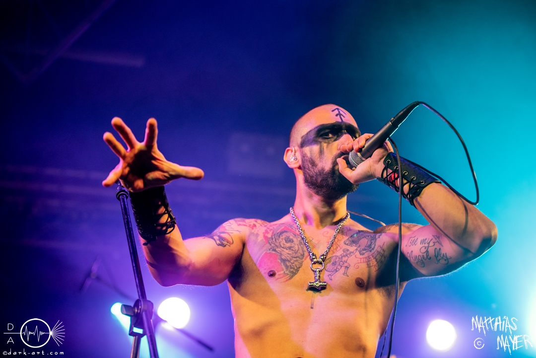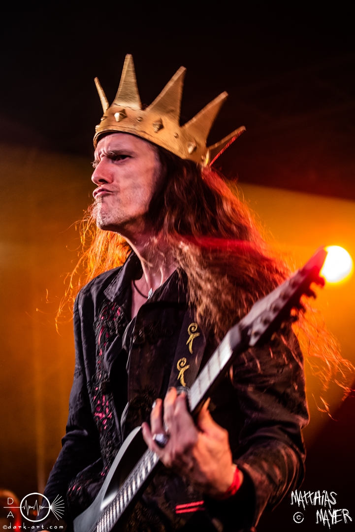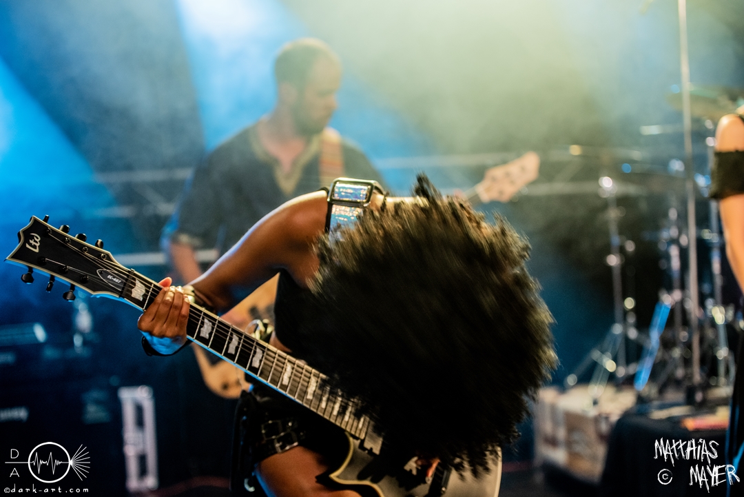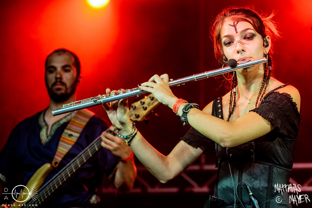 Dann betraten die acht Jungs und Mädels von Aexylium die Bühne. Musikalisch präsentieren sie sich sehr viel schneller als die vorherige Band und beweisen, dass sie in der Lage sind richtig Stimmung zu machen. Von Partynummern wie Skal, epischen Geschichten wie Into the Jaws of Fenrir sowie ruhgien instrumentalen Stücken ist alles dabei, was das Folk Metal Herz erfreut. Wer sich im Nachhinein die CDs angehört hat wird dabei gemerkt haben, dass die weiblichen Vocals weggefallen sind, eine Version der Songs, die ebenfalls sehr gut ankommt. Besonders Sänger Steven unterhielt das Publikum hervorragend.