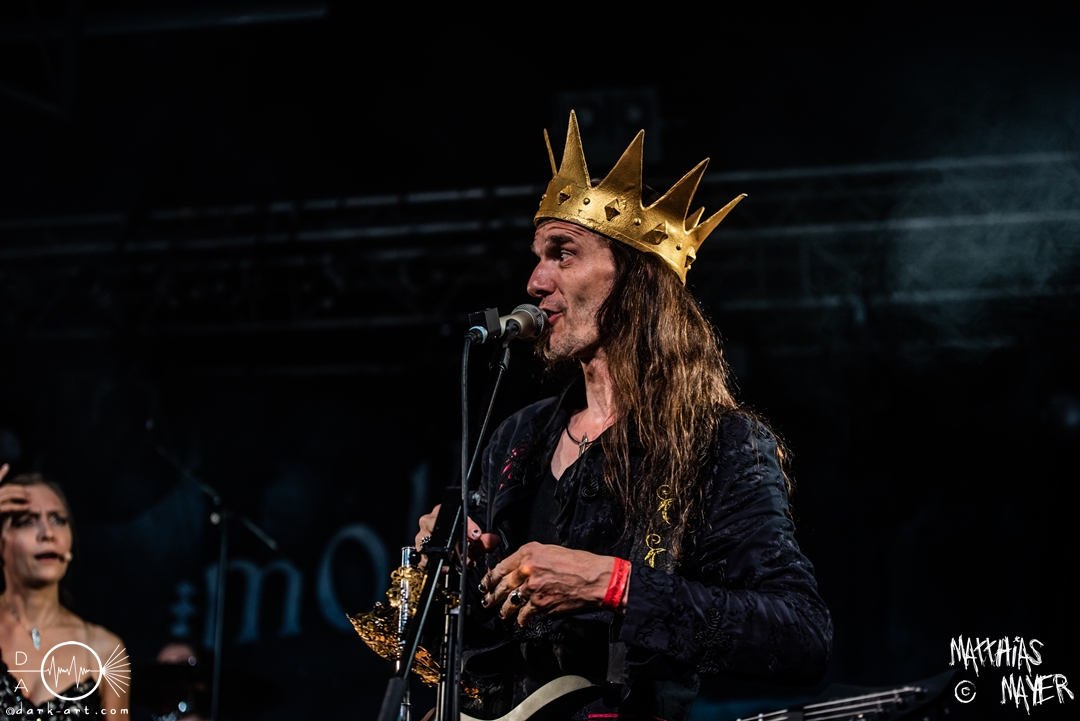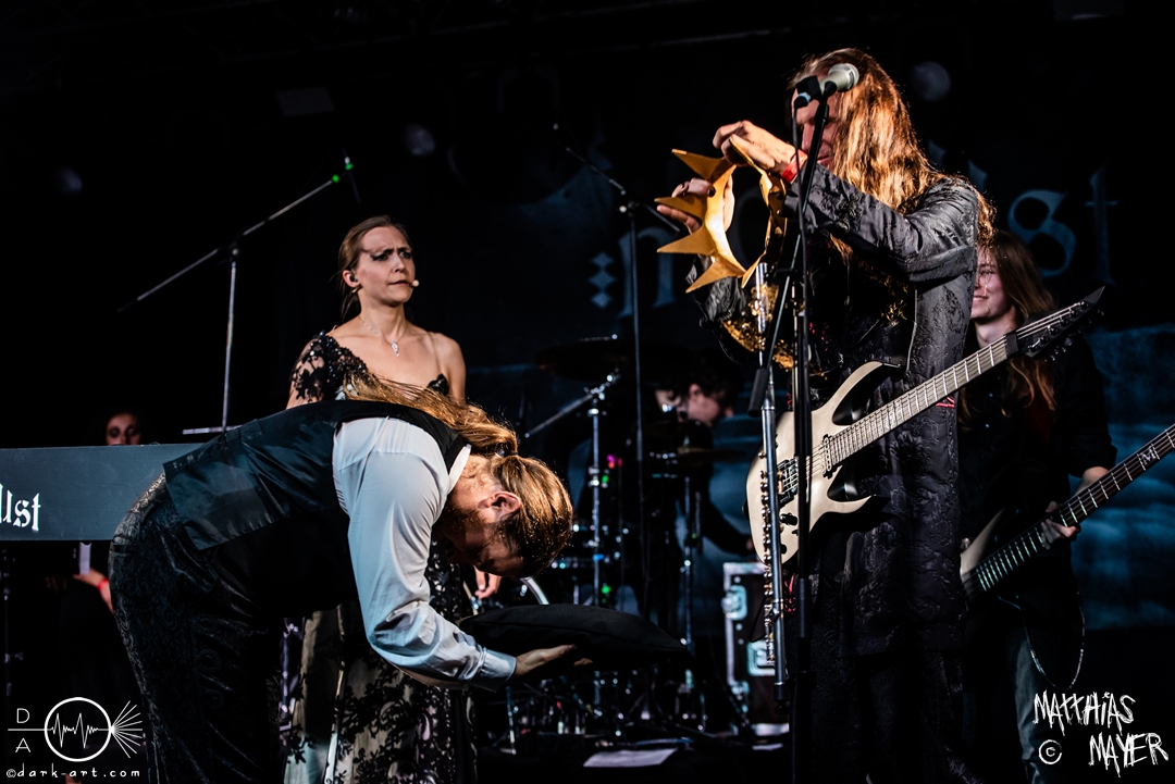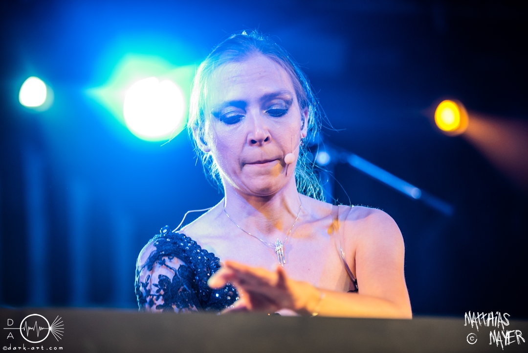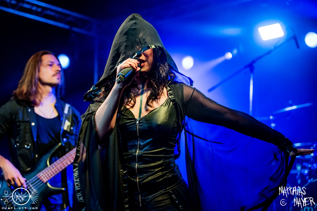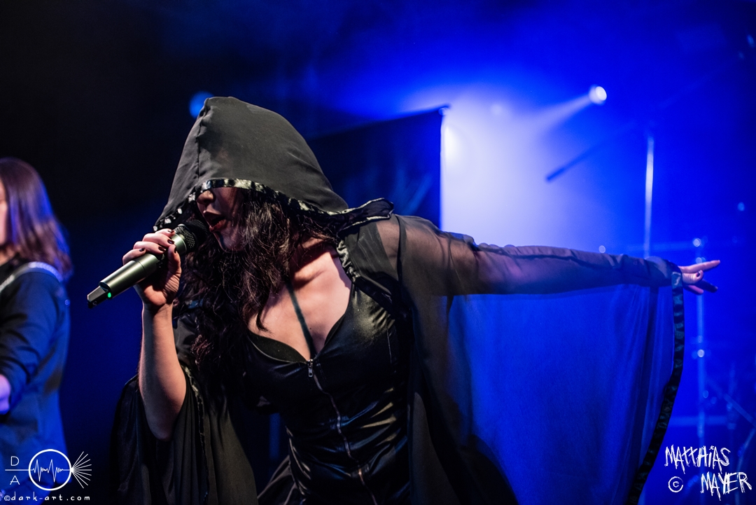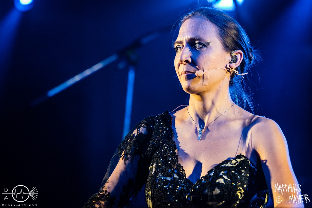 Den Abschluss bildeten traditionell die Gastgeber molllust, die in neuer Besetzung die Bühne betraten und ihren zweiten Bassisten Niklas erstmalig mit auf der Bühne hatten. Wer die Band kennt war zum Beginn auch nicht überrascht. Während der erste Teil des Auftritts dem entspricht was man schon von molllust kennt. In einer kurze Pause, in der Janika die Bühne verlässt, stellt Frank nun die Band vor, während nun Bassist Simon die Bühne betritt und Niklas ersetzt. Im wunderschönen schwarzen Kleid kommt nun auch Janika zurück und präsentiert das neue Kleid passend zum neuen Album. Denn nun werden auch die neuen Songs präsentiert. Mit den 4 Songs zu Venus, Saturn, Mars und Pluto präsentiert die Band einen großzügigen Ausblick auf’s neue Album, welches im Herbst erscheint. Bei Pluto erscheint