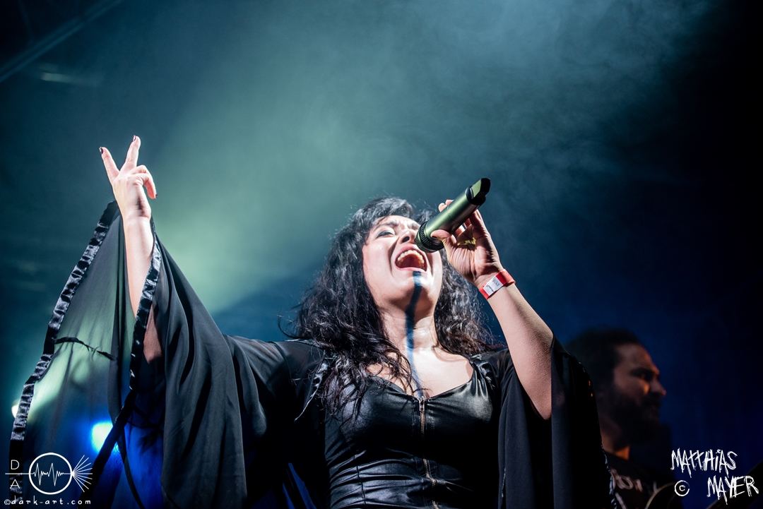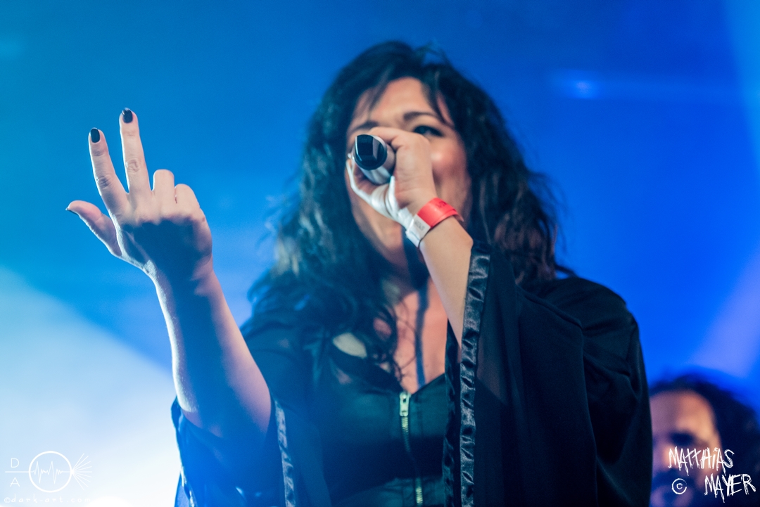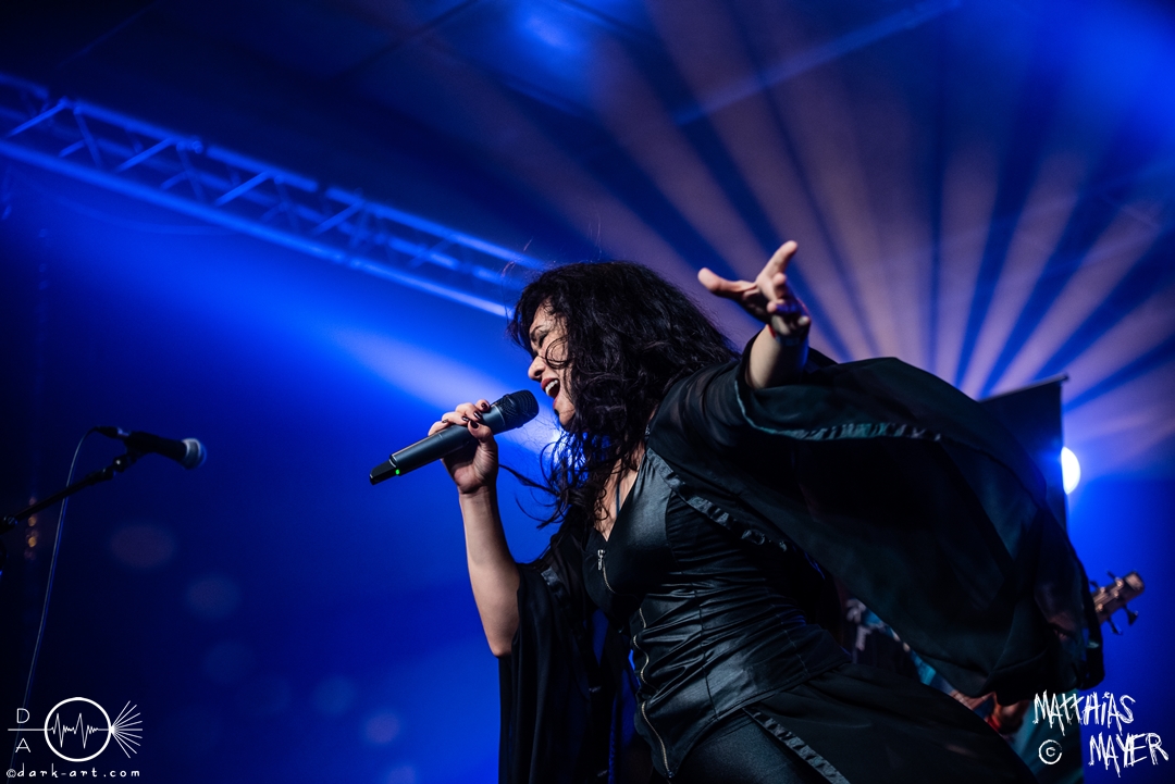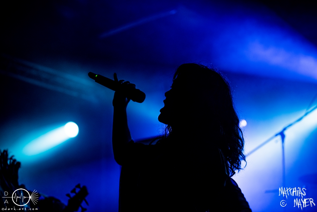 Anschließend beginnen FlowerLeaf das reguläre Programm und können sofort das Publikum überzeugen. Die Band um die brasilianische Sängerin Vivs Takahashi zeigt viel Begeisterung auf der Bühne und präsentiert sich sehr aktiv, obwohl sich an den Besucherzahlen leider im Vergleich zum Vortag kam was verändert hat. Anwesende Fans konnten auch sofort erkennen, dass sich an der Besetzung etwas getan hatte. Da leider beide Gitarristen verhindert waren, wurde nun ein Ersatz auf die Bühne geholt. Herausragend in Erinnerung bleibt unter anderem die sehr starke Nummer Grain of Sand. Aber auch ein neuer Song, Stargazers, wurde präsentiert, der zugehörige Mitmachteil ging leider etwas unter durch das geringe Publikum. Beim vorletzten Song des Sets überraschte Vivs dann auch noch mit ihrer Growlfähigkeit.