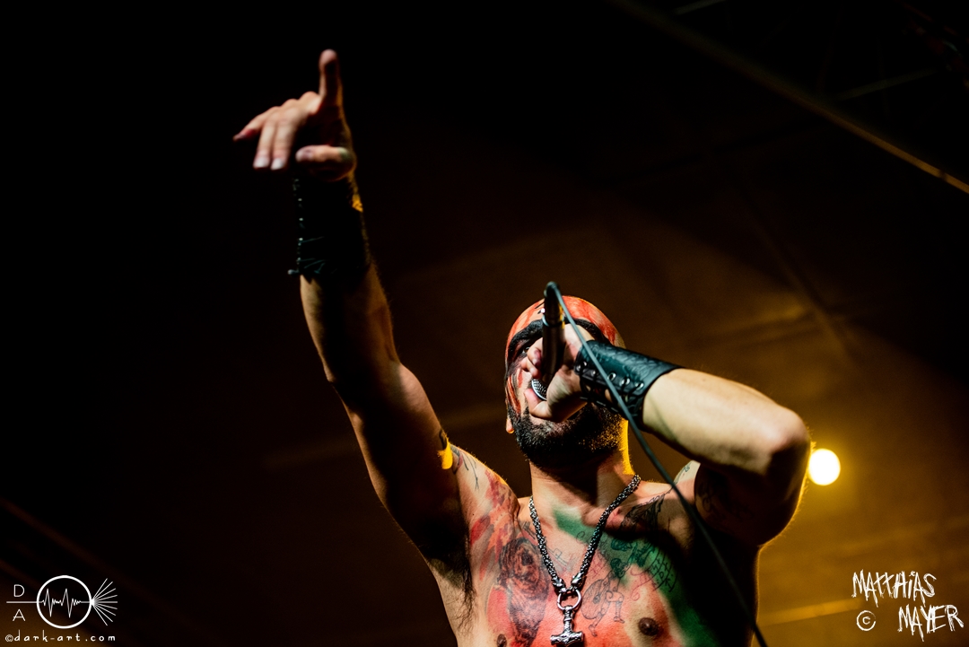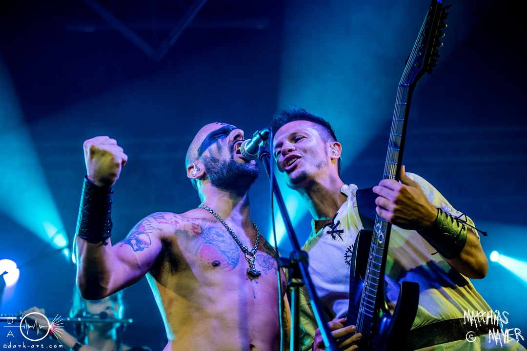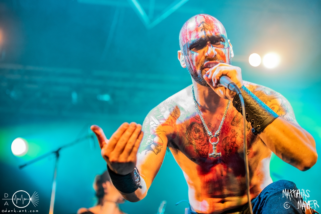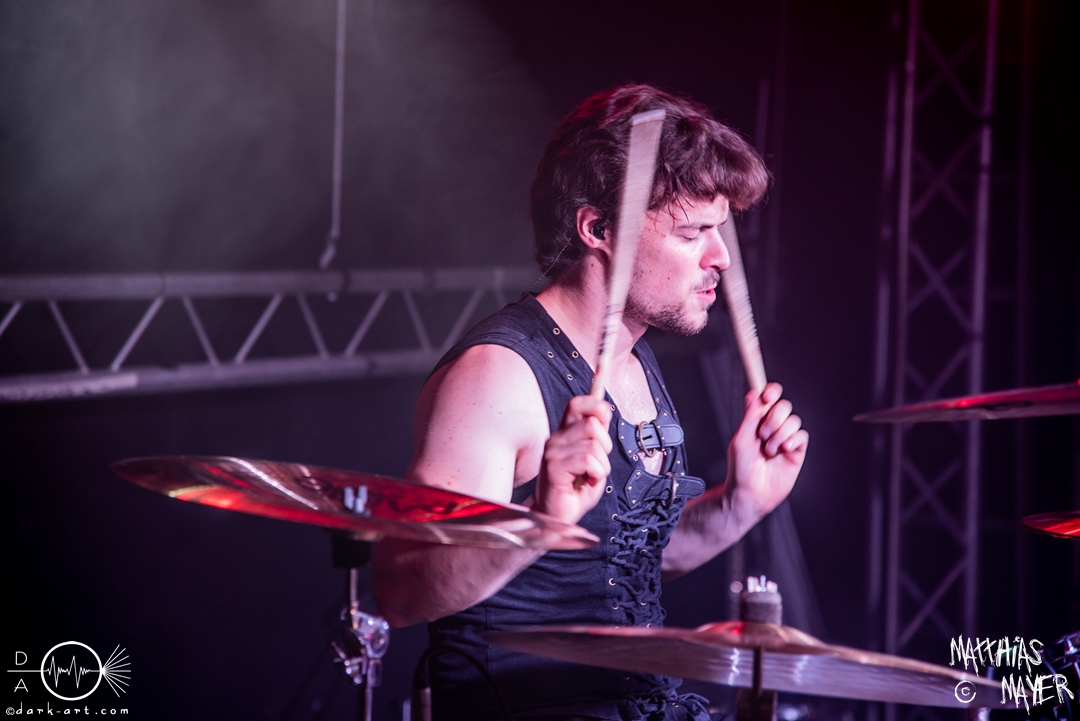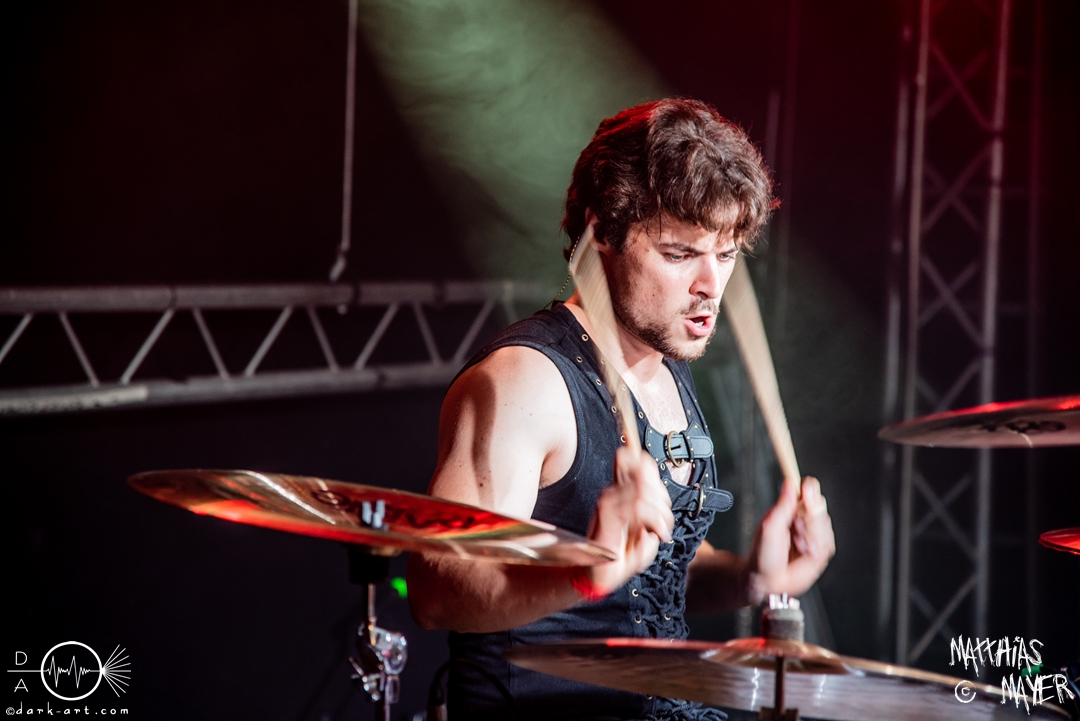 Dann betraten die acht Jungs und Mädels von Aexylium die Bühne. Musikalisch präsentieren sie sich sehr viel schneller als die vorherige Band und beweisen, dass sie in der Lage sind richtig Stimmung zu machen. Von Partynummern wie Skal, epischen Geschichten wie Into the Jaws of Fenrir sowie ruhgien instrumentalen Stücken ist alles dabei, was das Folk Metal Herz erfreut. Wer sich im Nachhinein die CDs angehört hat wird dabei gemerkt haben, dass die weiblichen Vocals weggefallen sind, eine Version der Songs, die ebenfalls sehr gut ankommt. Besonders Sänger Steven unterhielt das Publikum hervorragend.